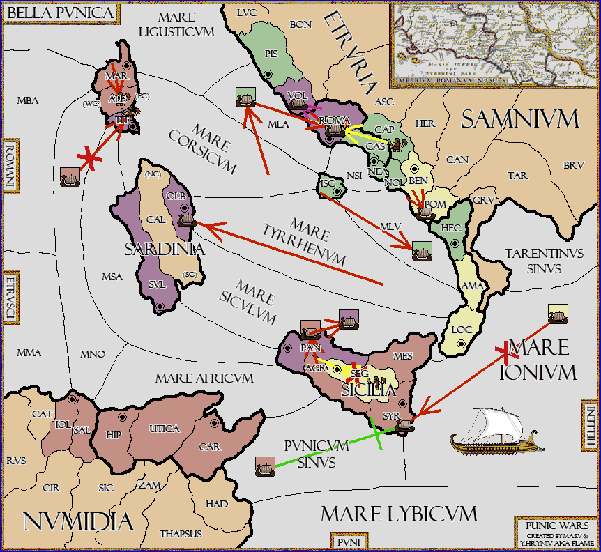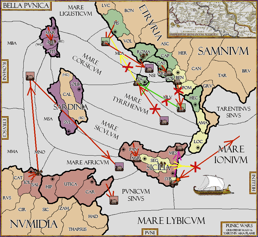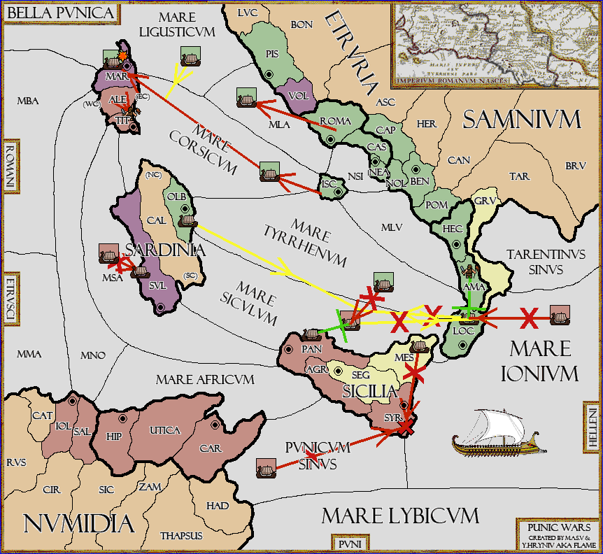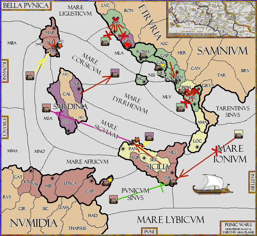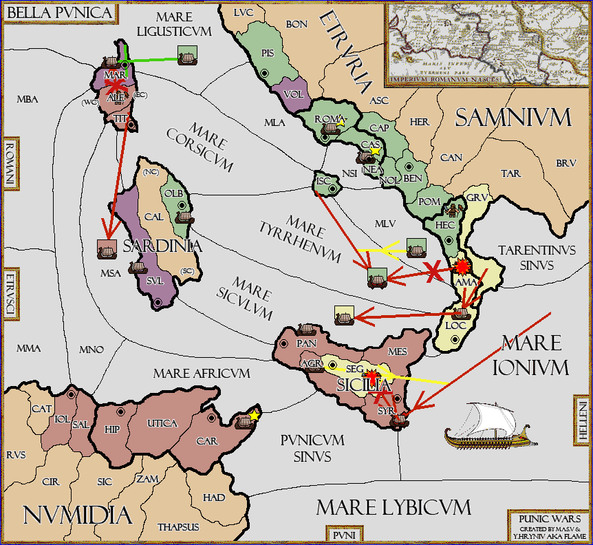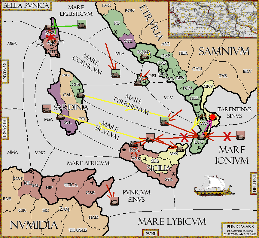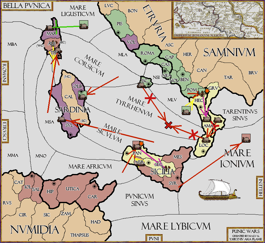 The fleet at Mare Tyrrhenum move to Mare Siculum.