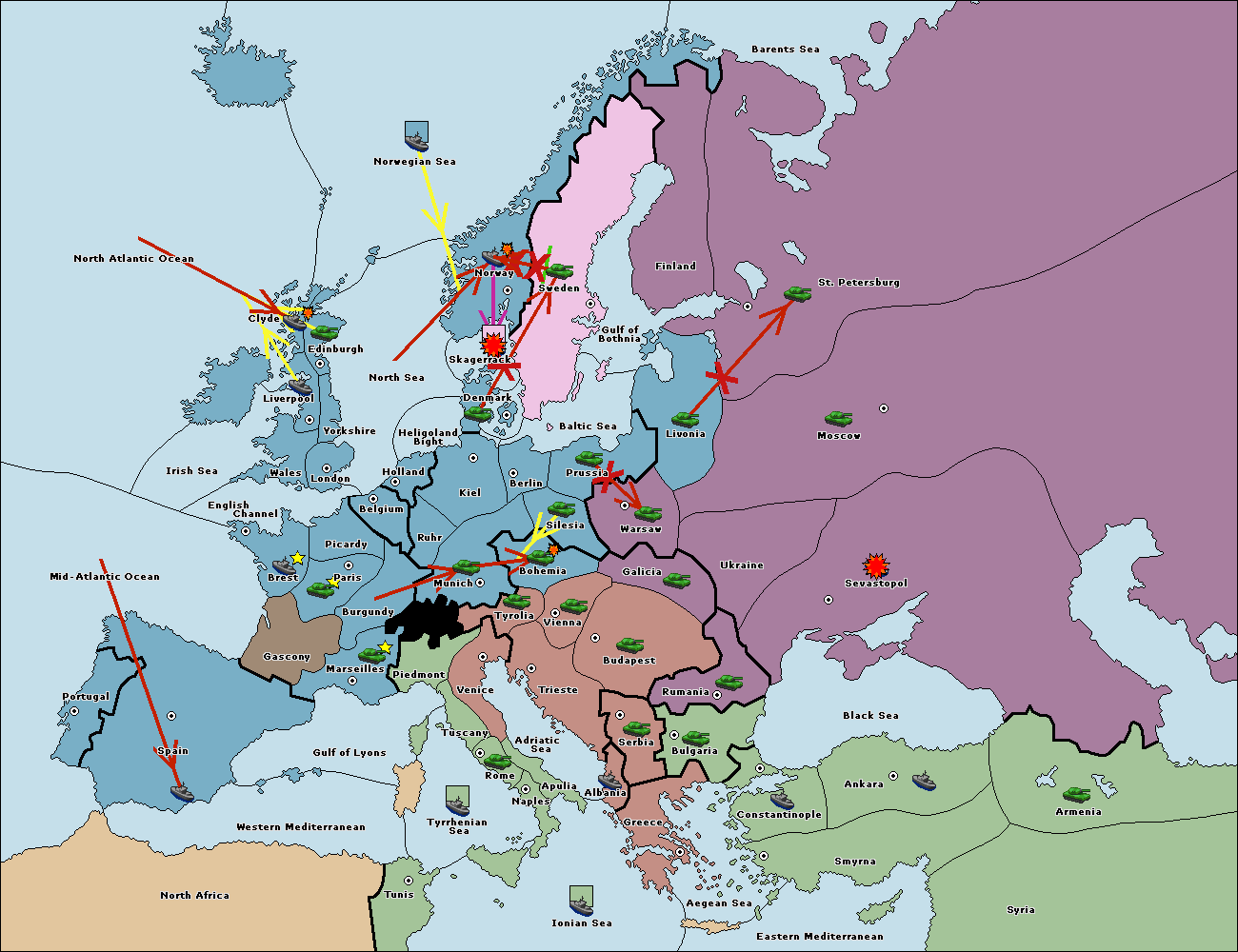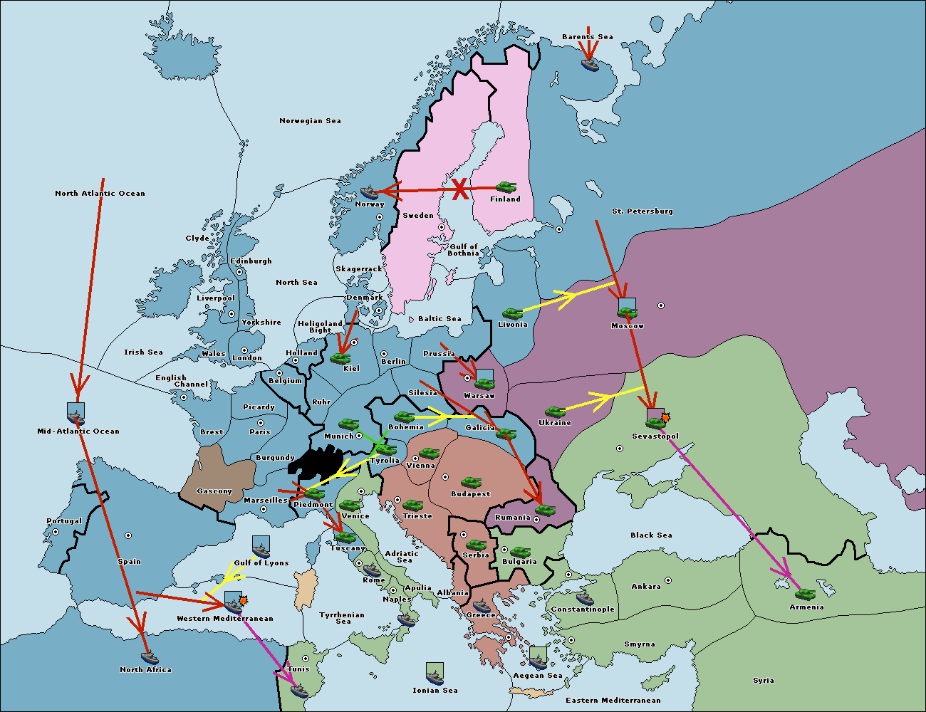 The fleet at Mid-Atlantic Ocean move to North Africa.