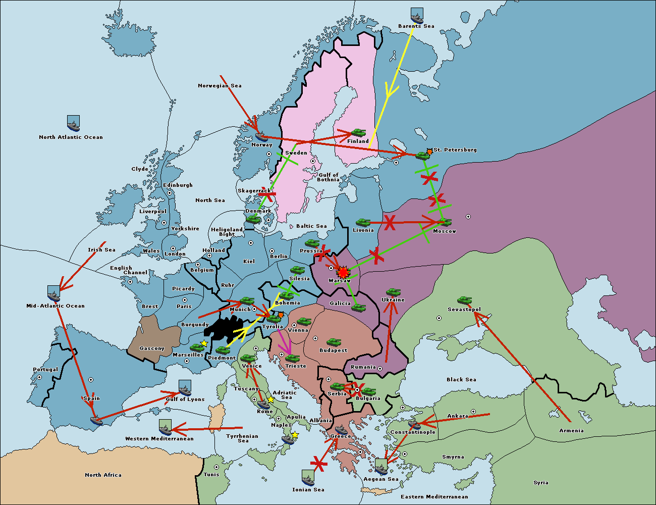 The fleet at Gulf of Lyons move to Tyrrhenian Sea.