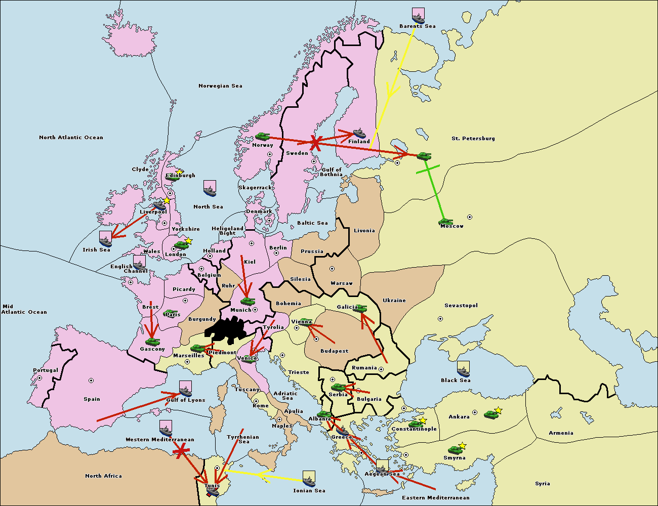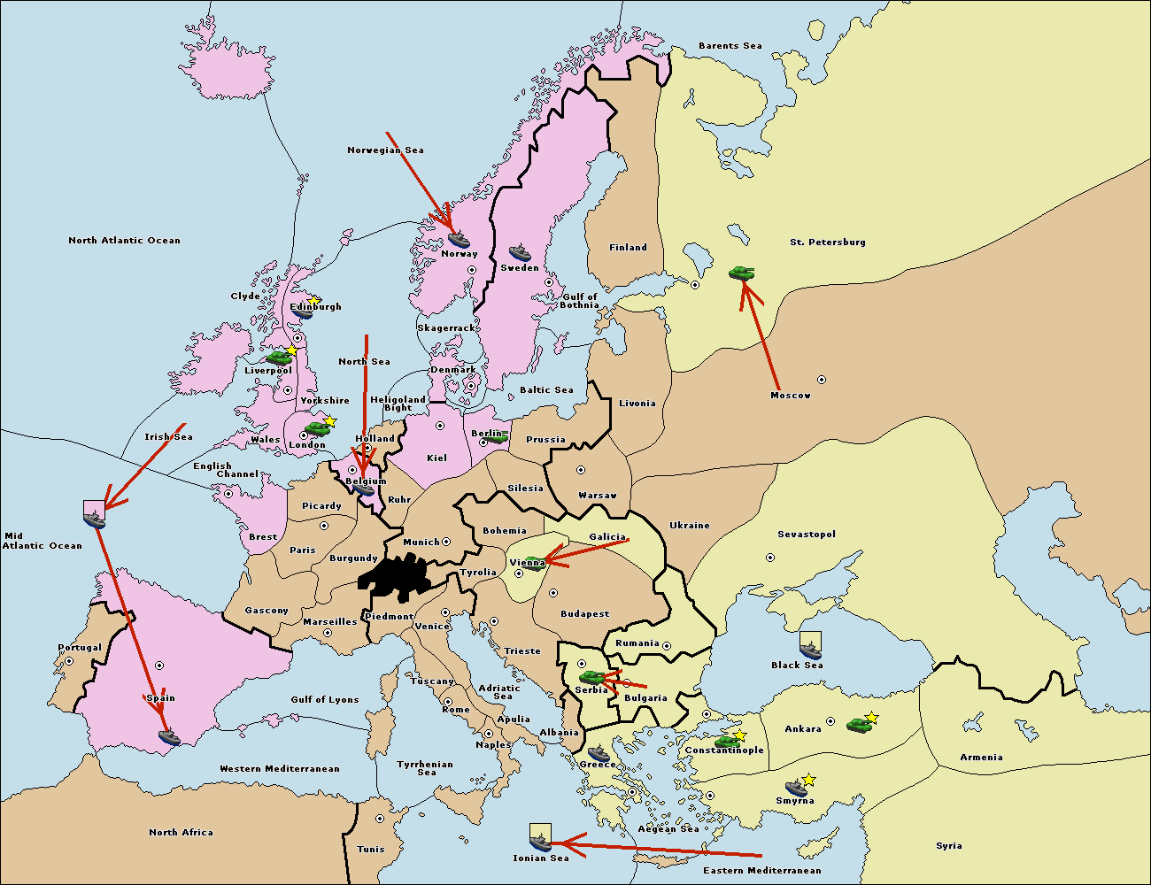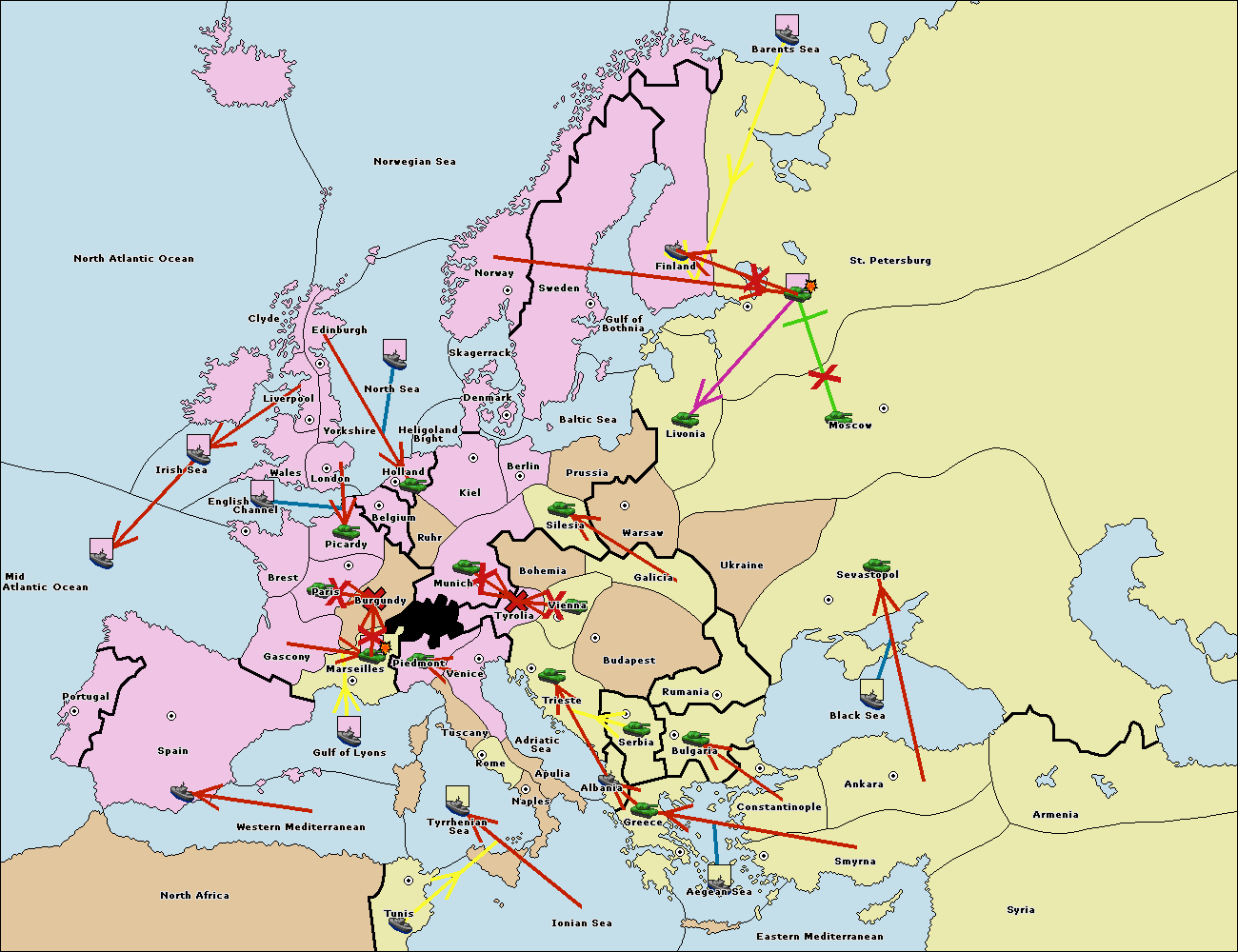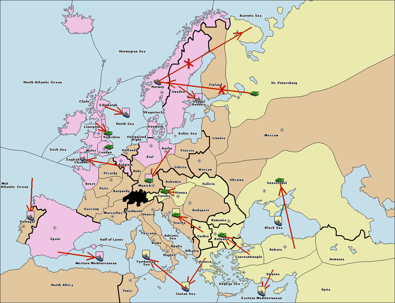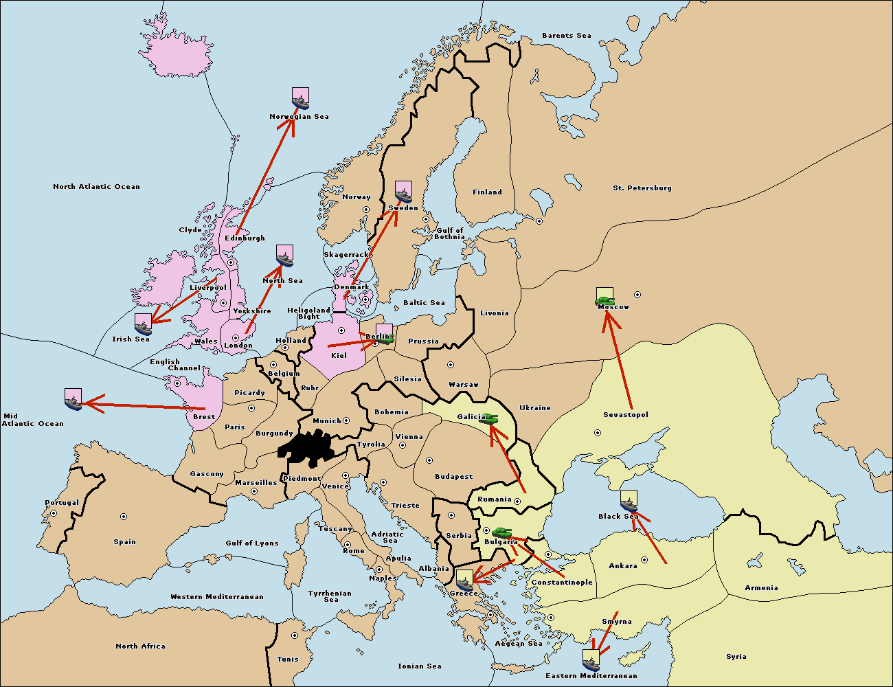 The fleet at Bulgaria (South Coast) move to Greece.