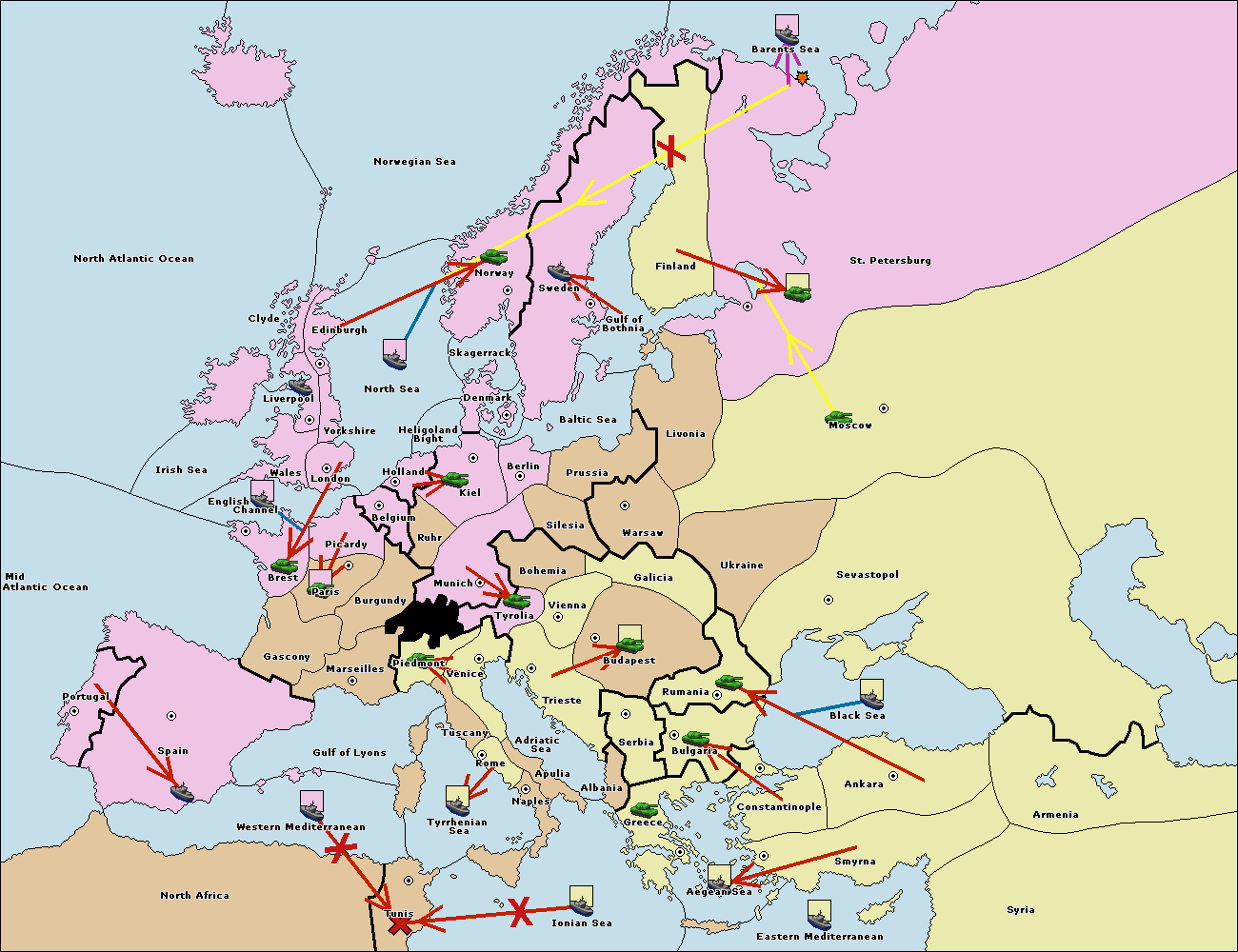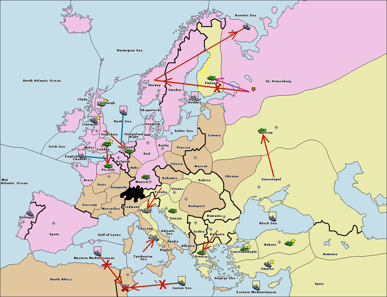 The fleet at Ionian Sea support move to Tunis from Tyrrhenian Sea.