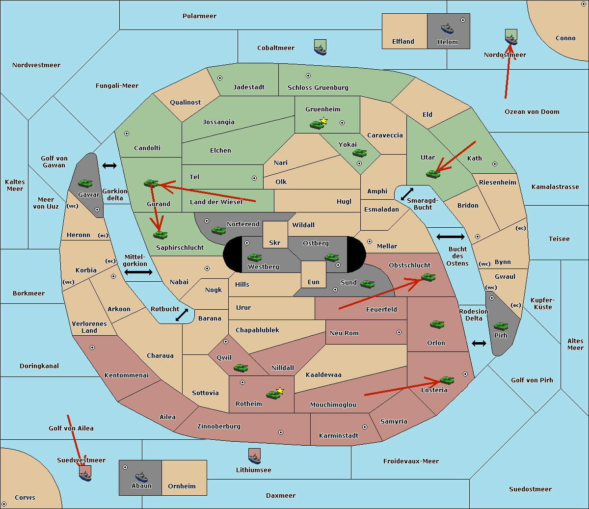 The fleet at Schloss Gruenburg move to Ozean von Doom.