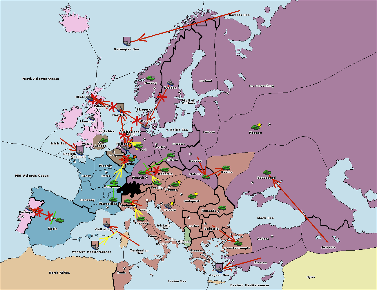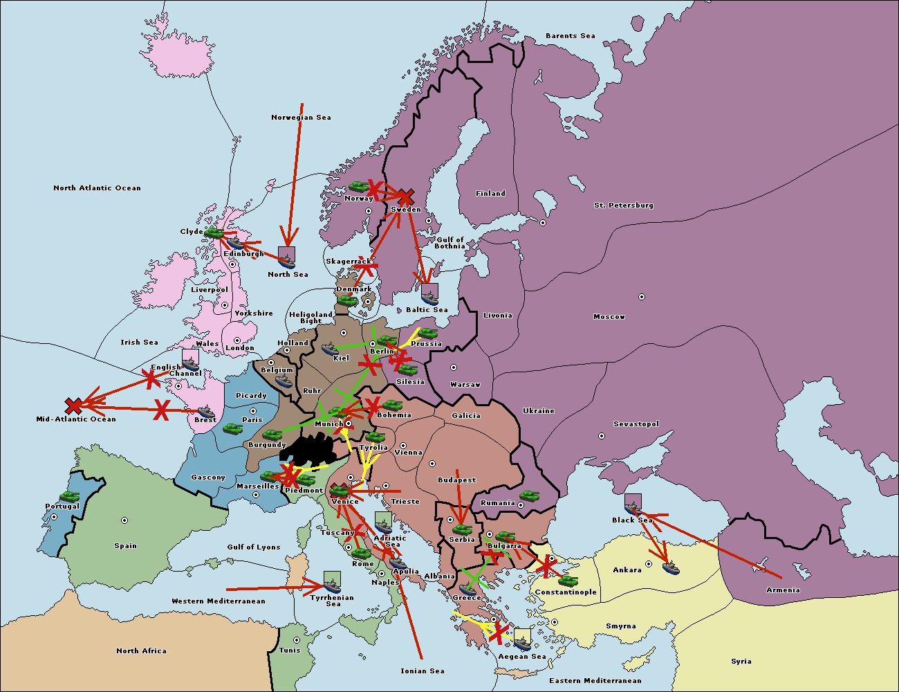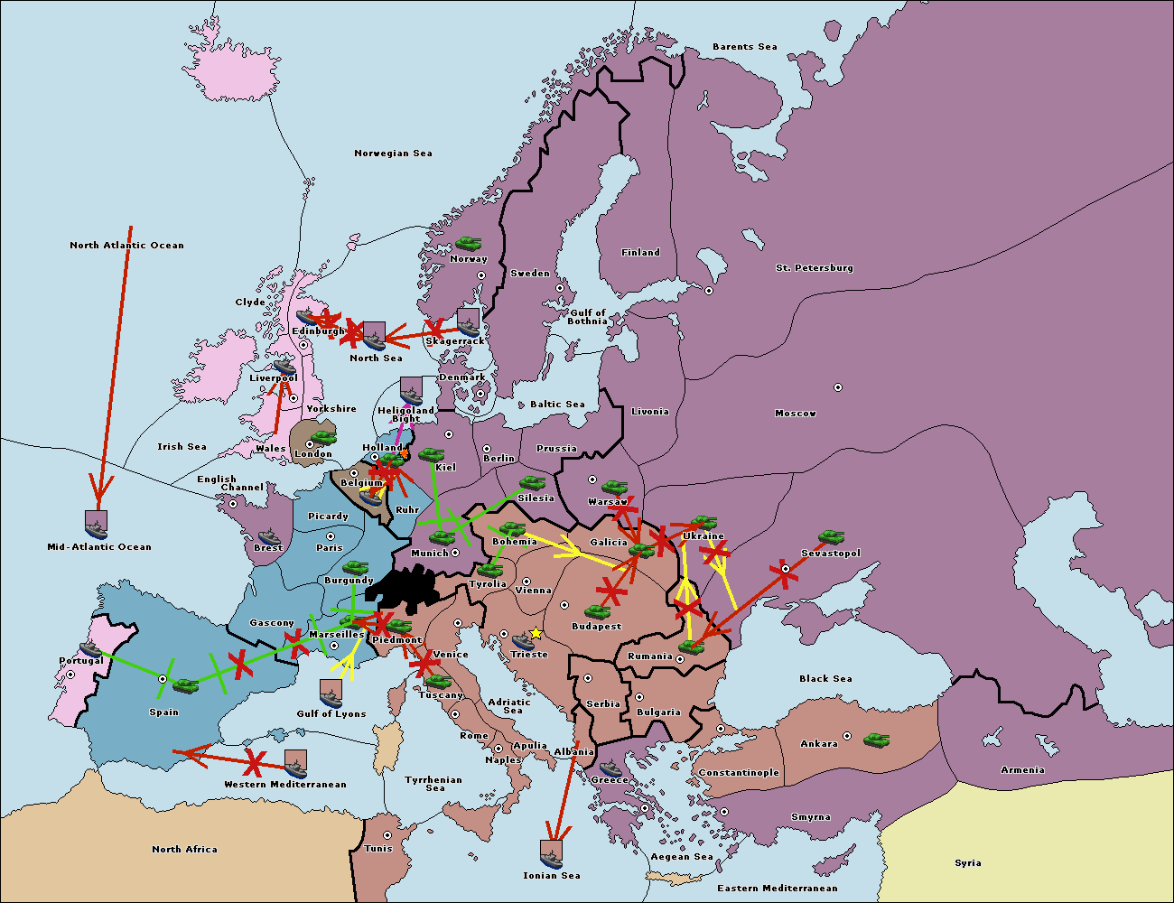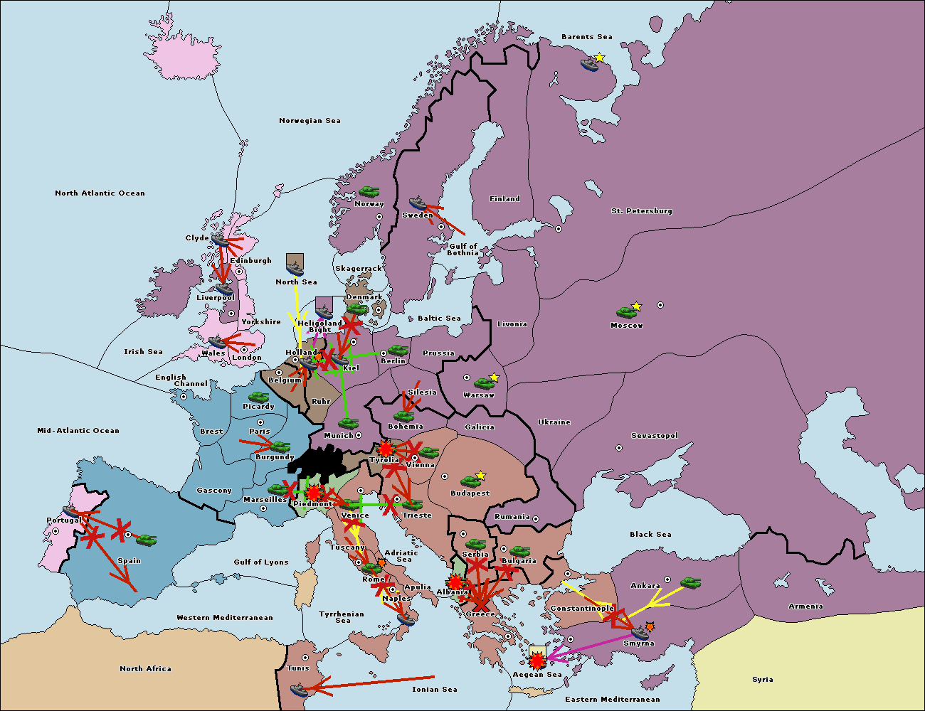 The fleet at Western Mediterranean move to Tyrrhenian Sea.