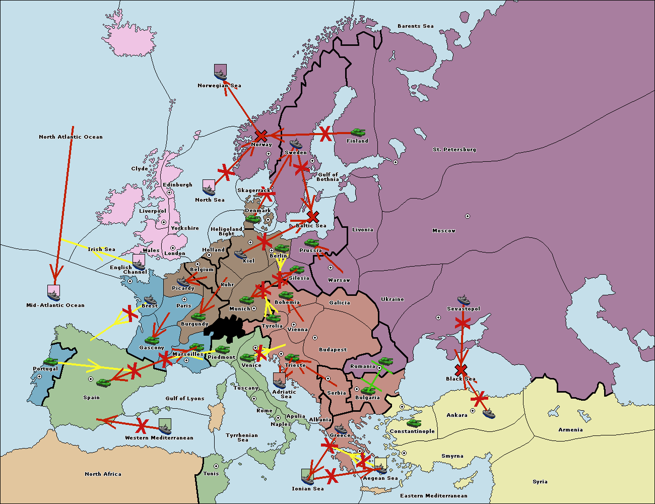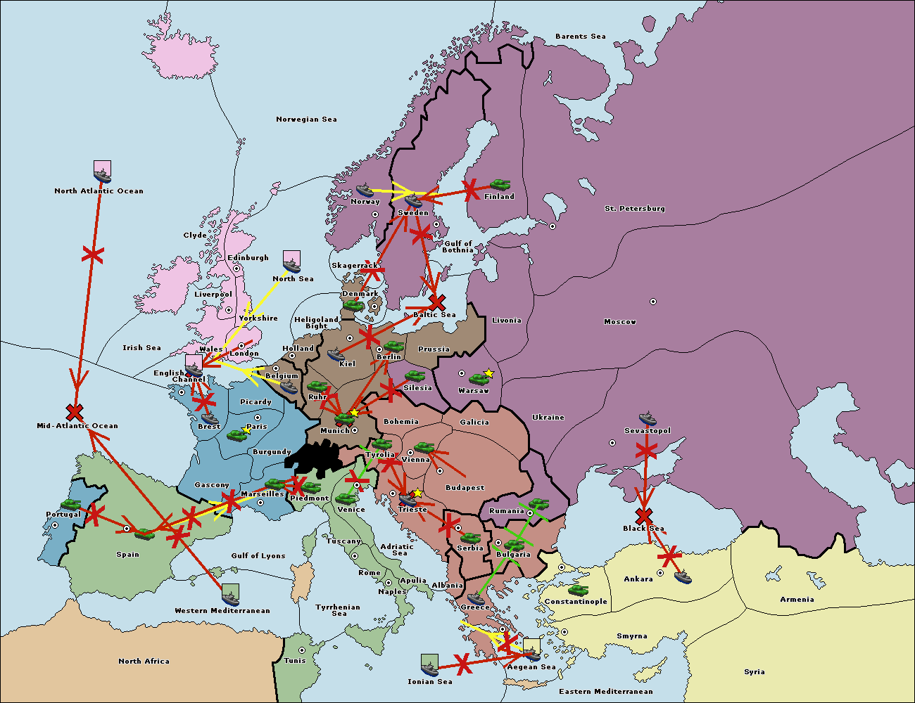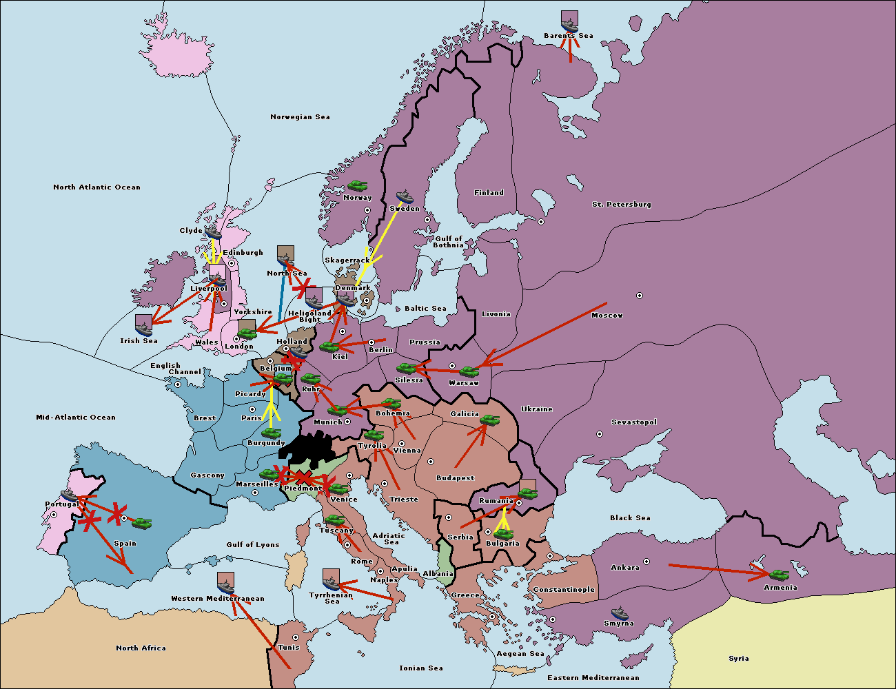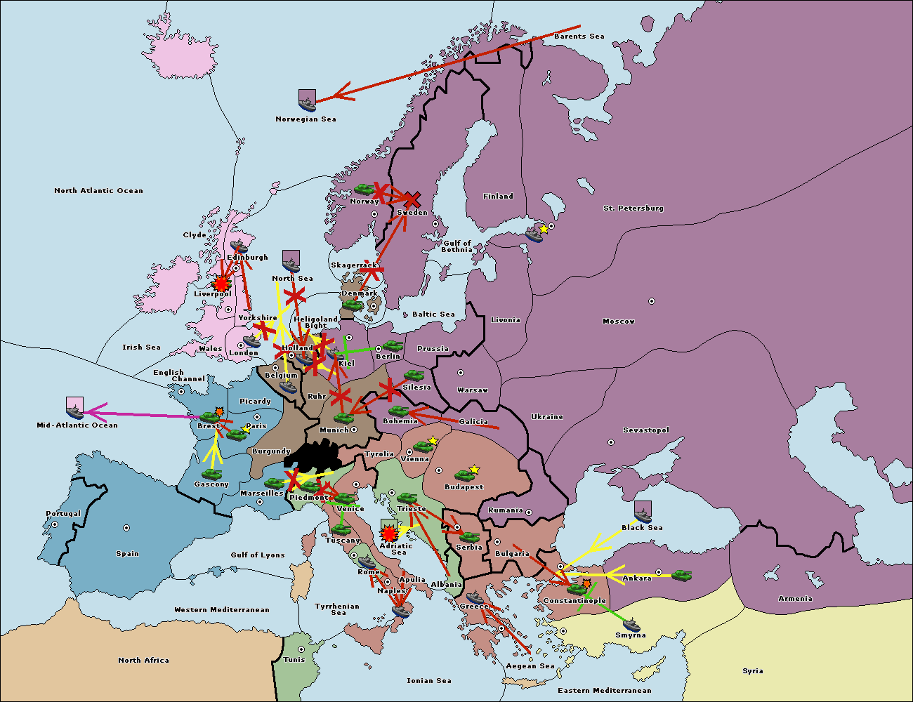 The fleet at Western Mediterranean move to Tyrrhenian Sea.