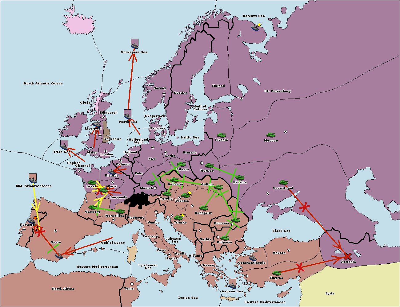 The fleet at Gulf of Lyons move to Spain (South Coast).