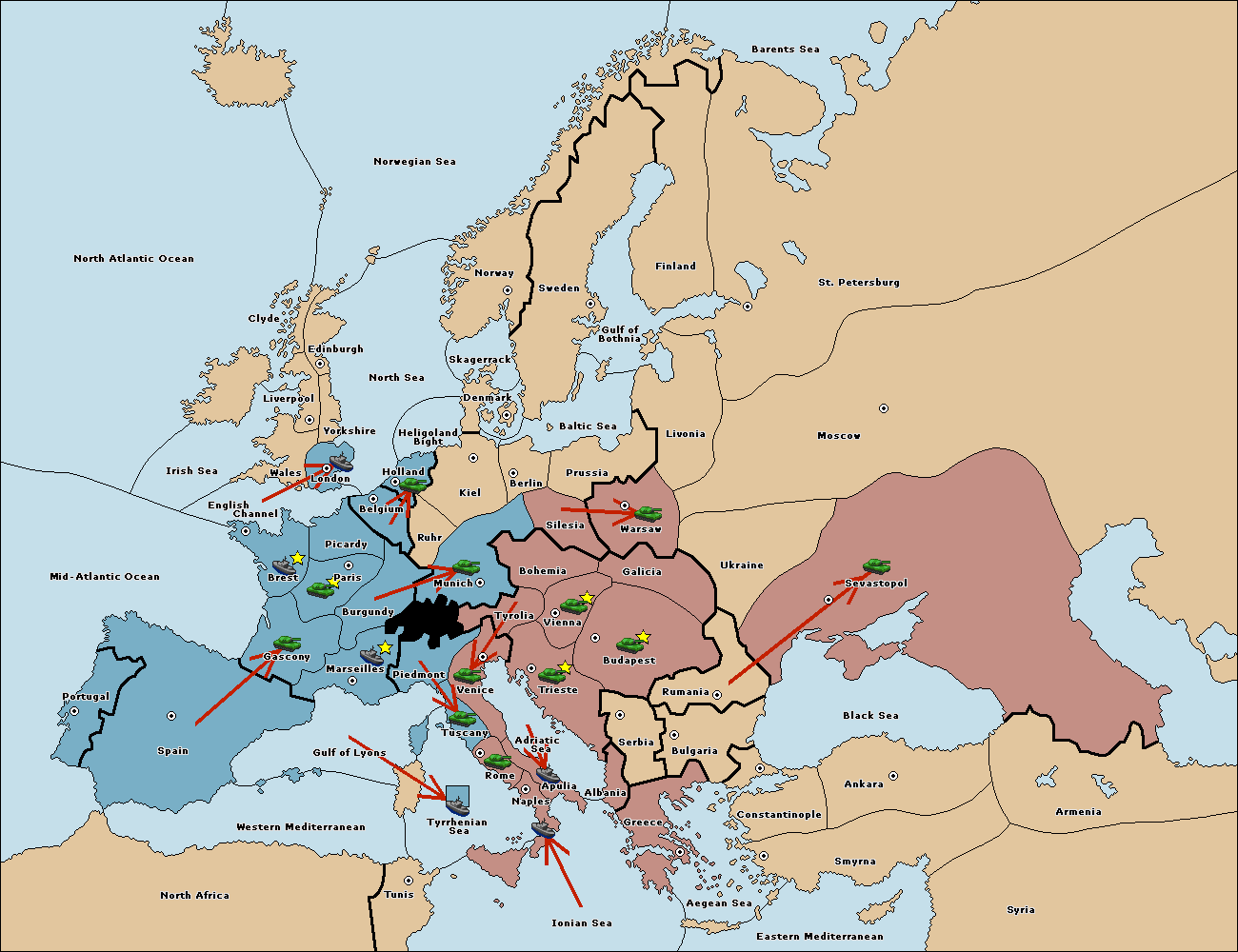 The fleet at Gulf of Lyons move to Tyrrhenian Sea.