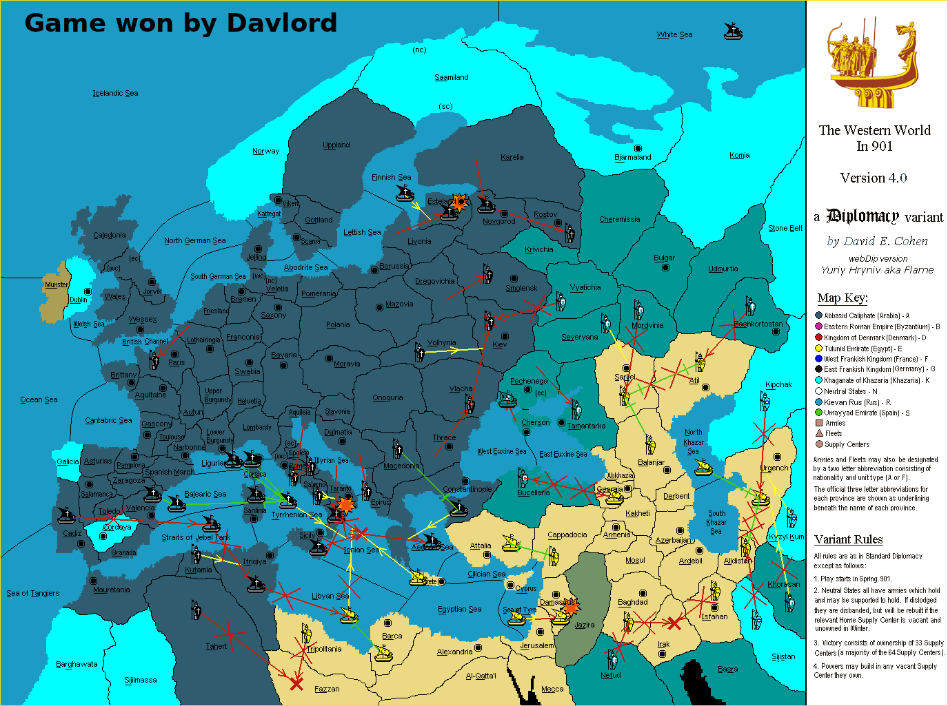На сервере установлен новый вариант 1900. Вариация классического варианта с исторически более достоверной картой, интересными спецправилами и еще большим взаимодействием между всеми семью державами. Приятной игры! - Flame. |