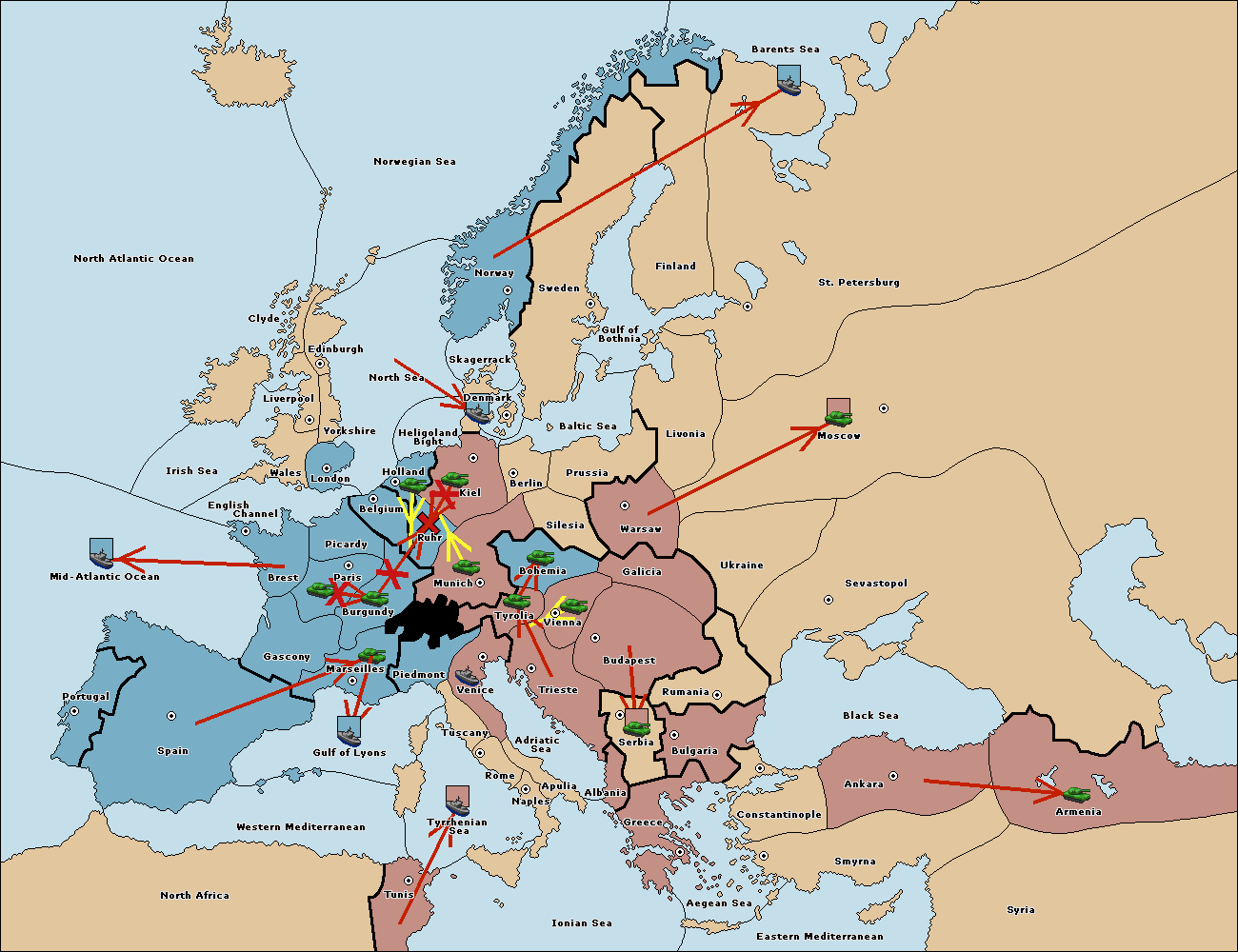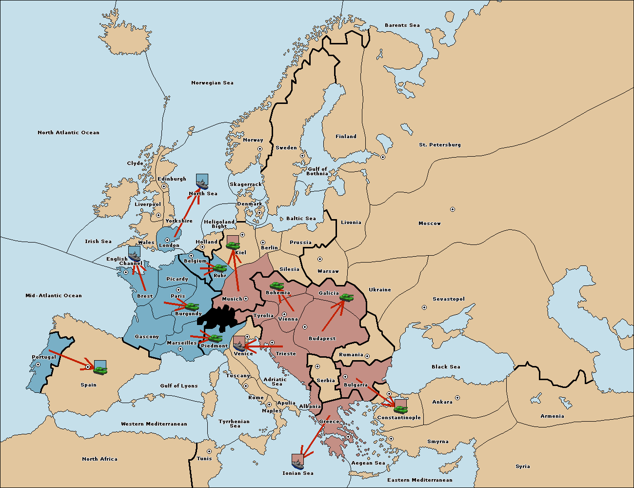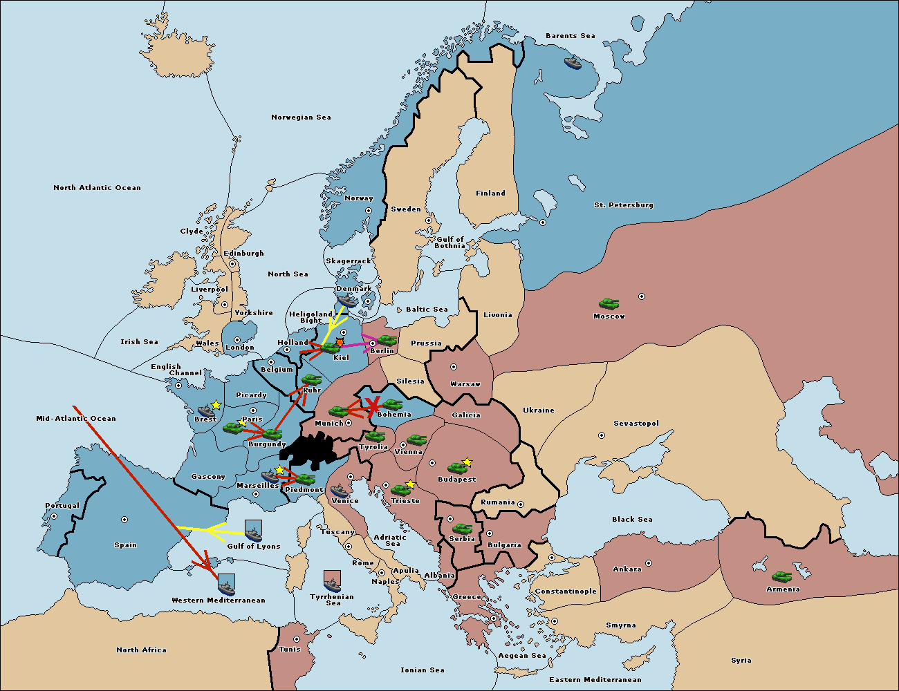 The fleet at Mid-Atlantic Ocean move to Western Mediterranean.