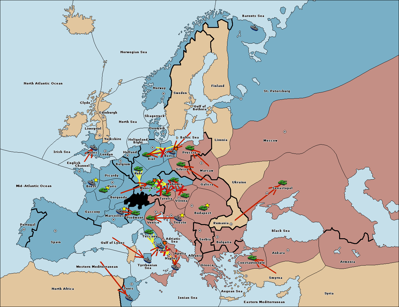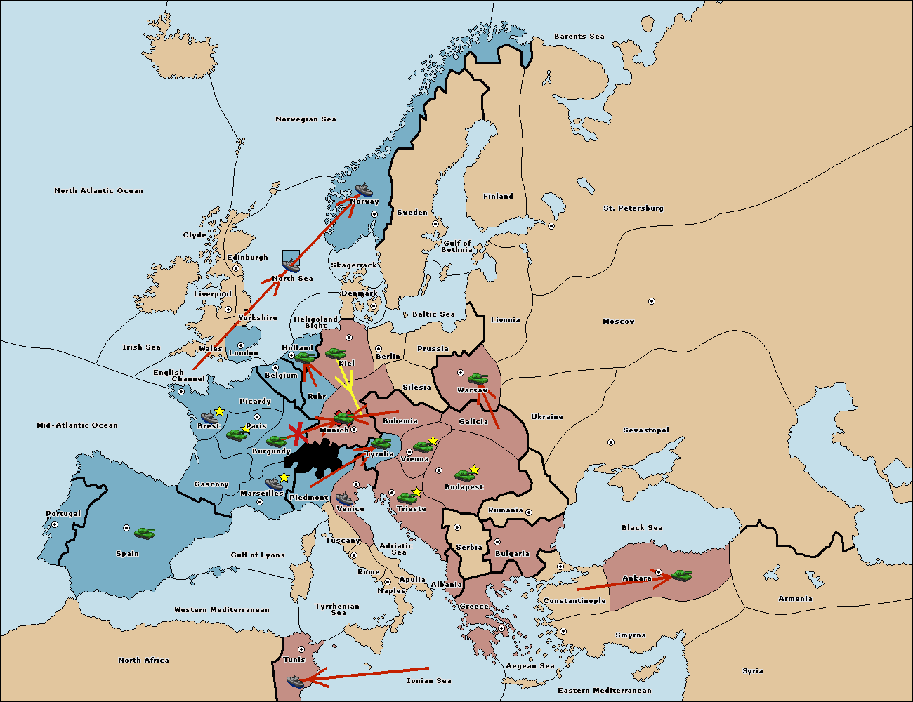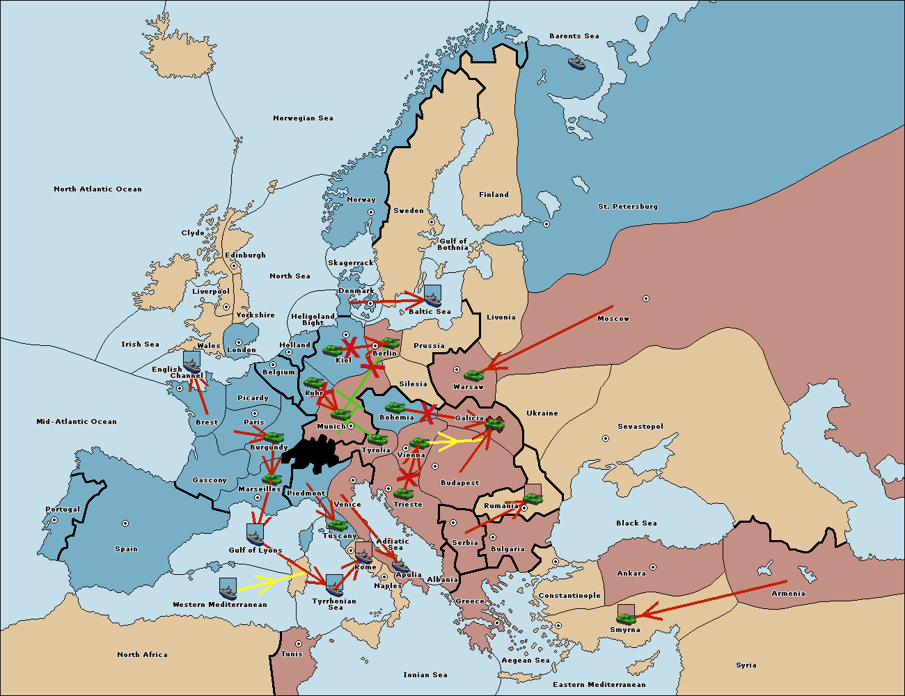 The fleet at Mid-Atlantic Ocean move to Western Mediterranean.