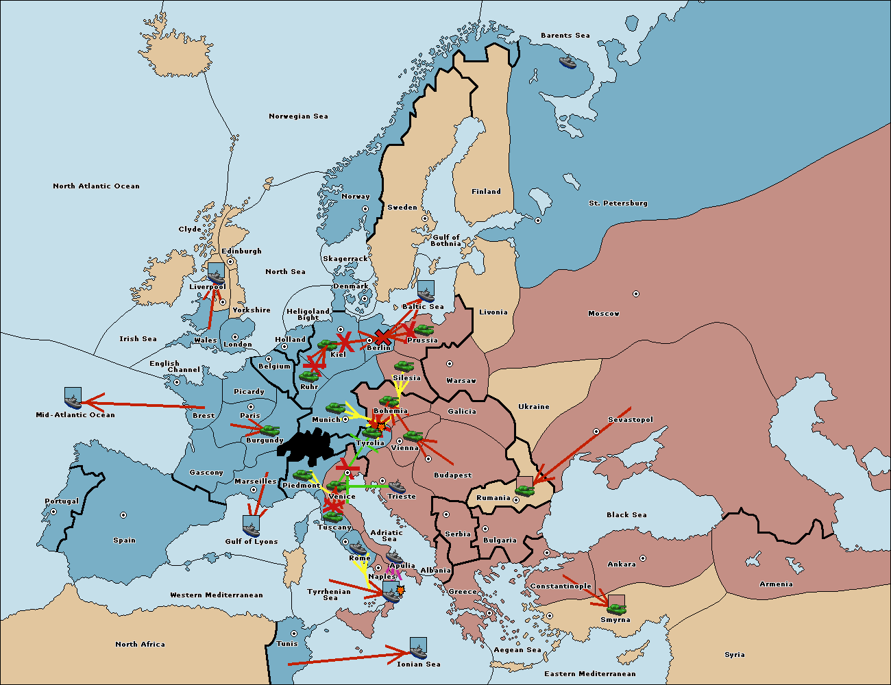 The fleet at Rome support move to Tyrrhenian Sea from Gulf of Lyons.