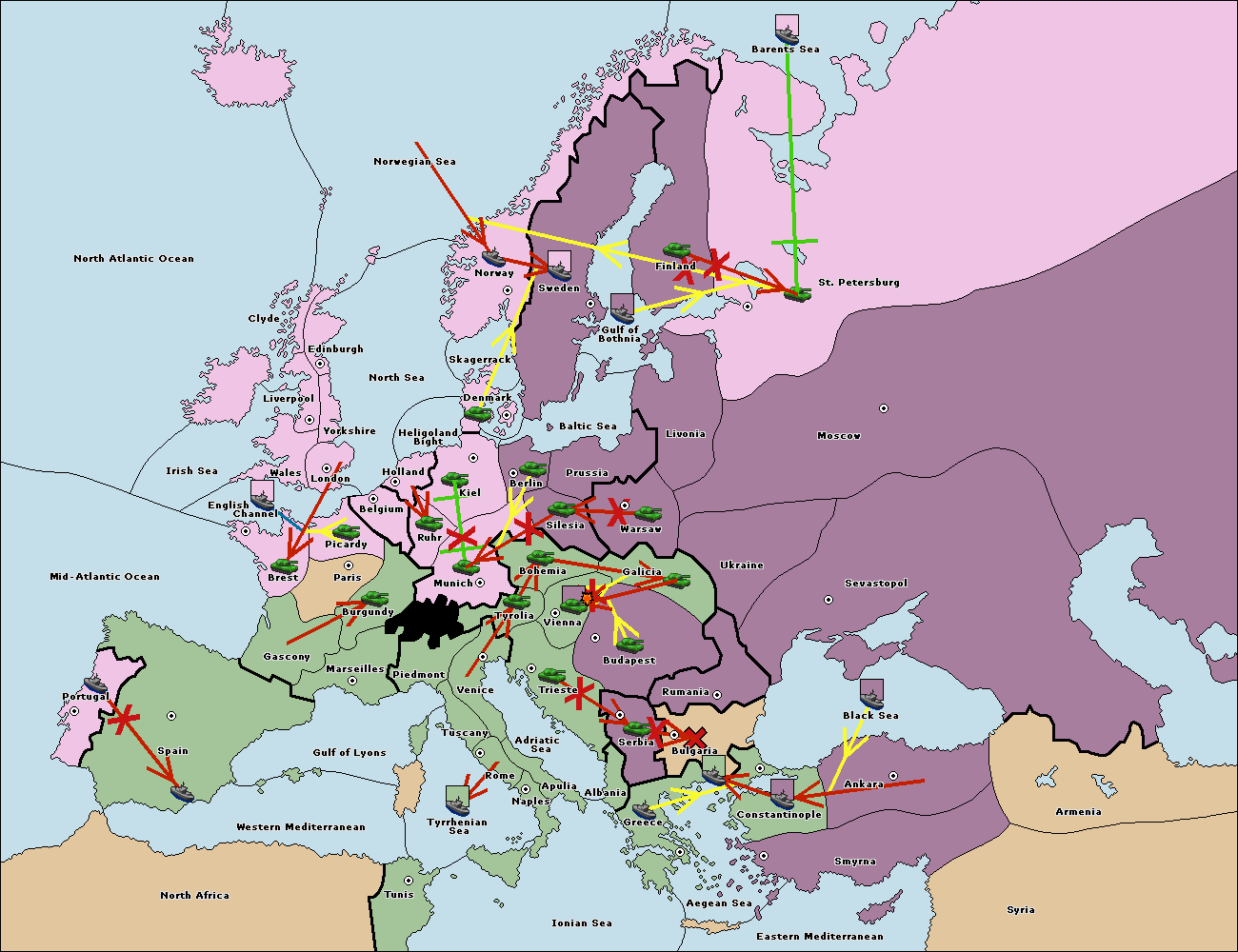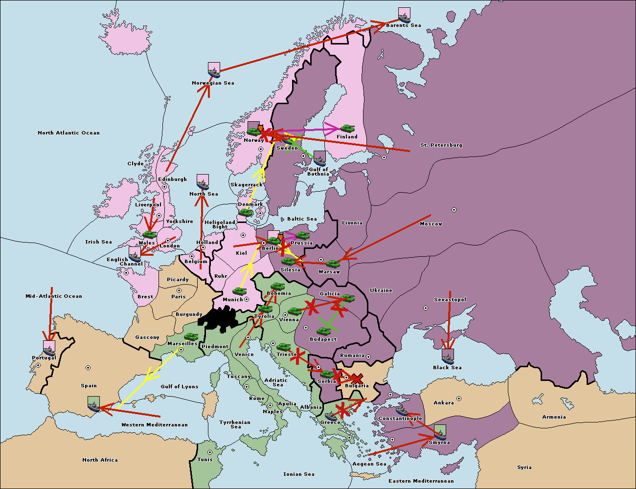 The fleet at Bulgaria (South Coast) retreat to Aegean Sea.