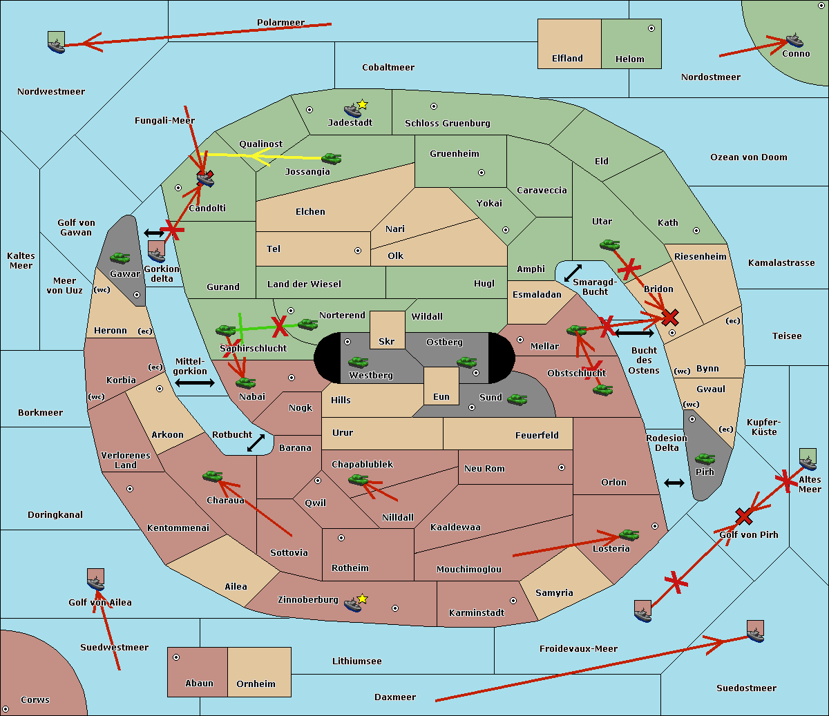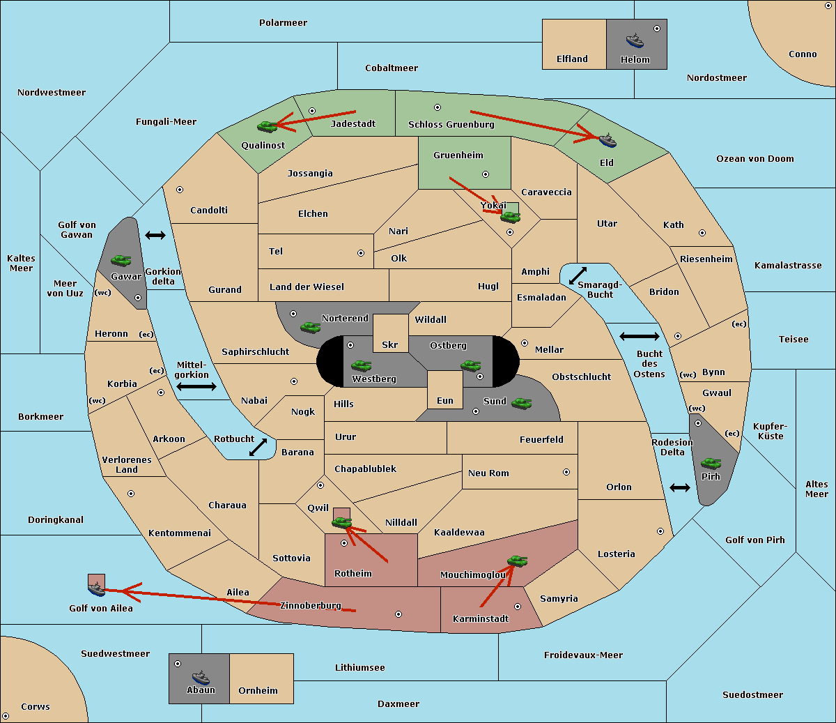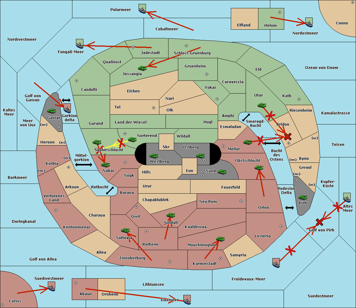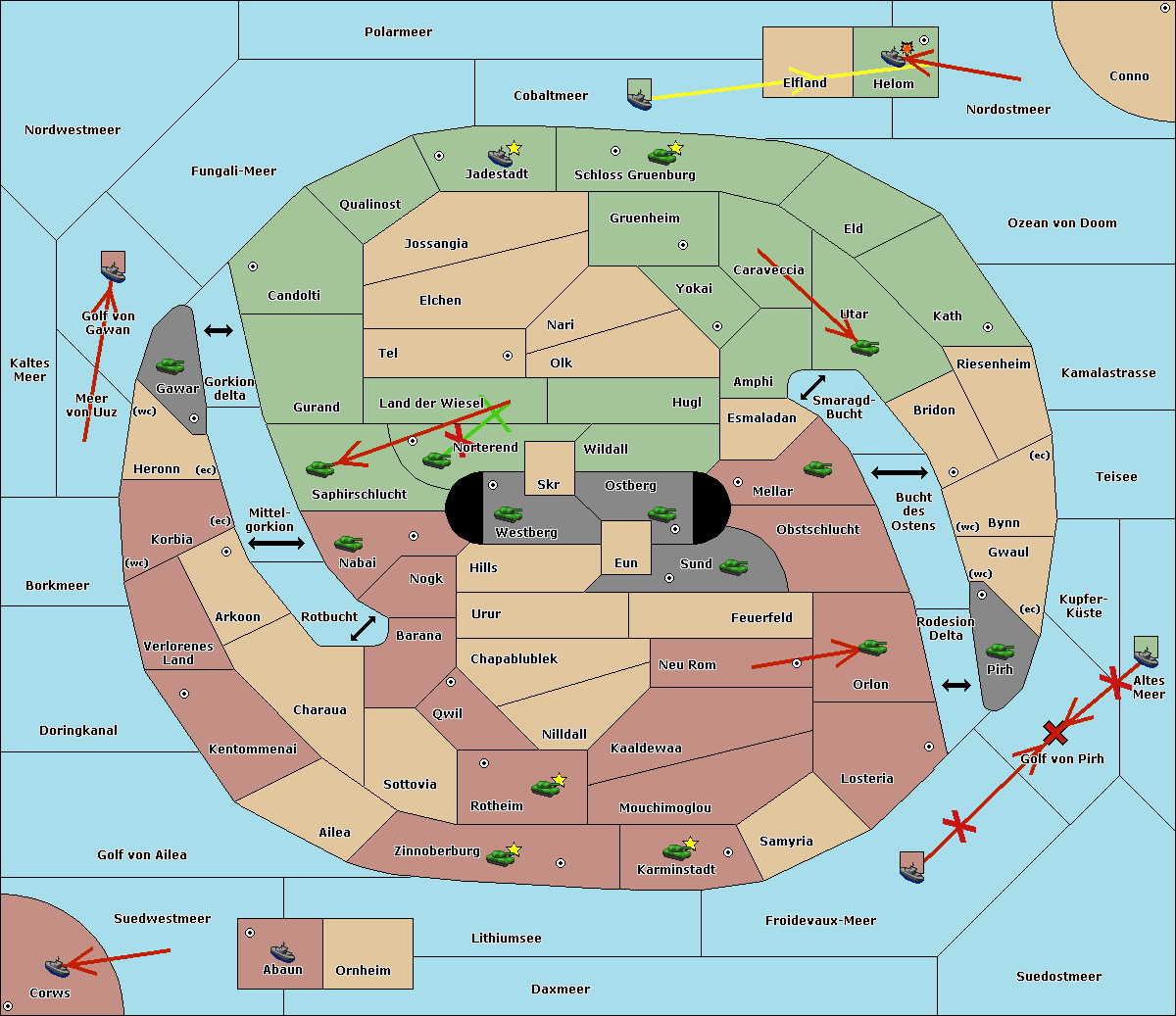 The fleet at Kaltes Meer move to Golf von Gawan.