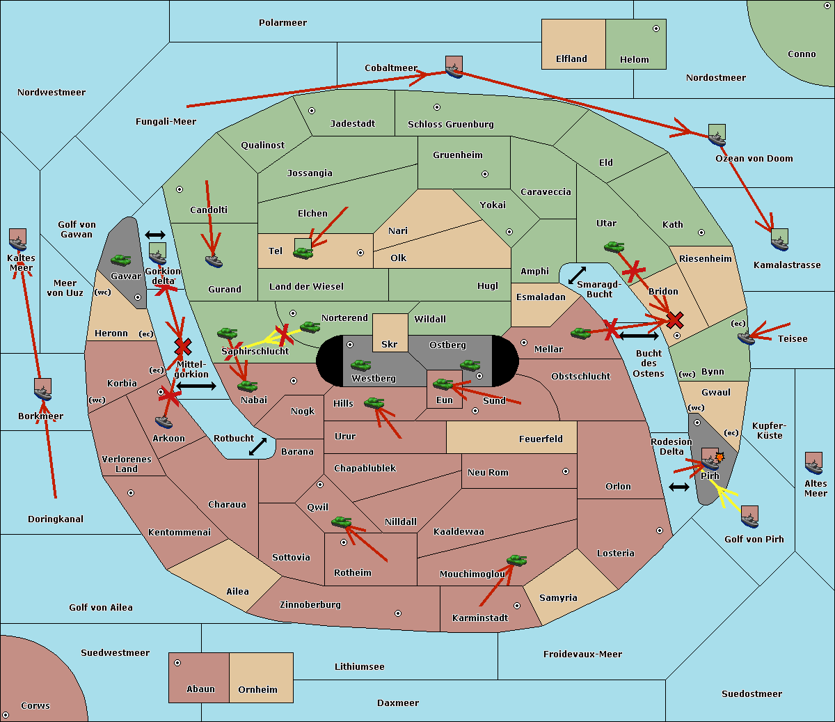 The fleet at Suedostmeer support move to Golf von Pirh from Froidevaux-Meer.
