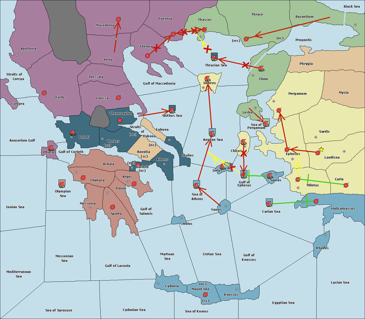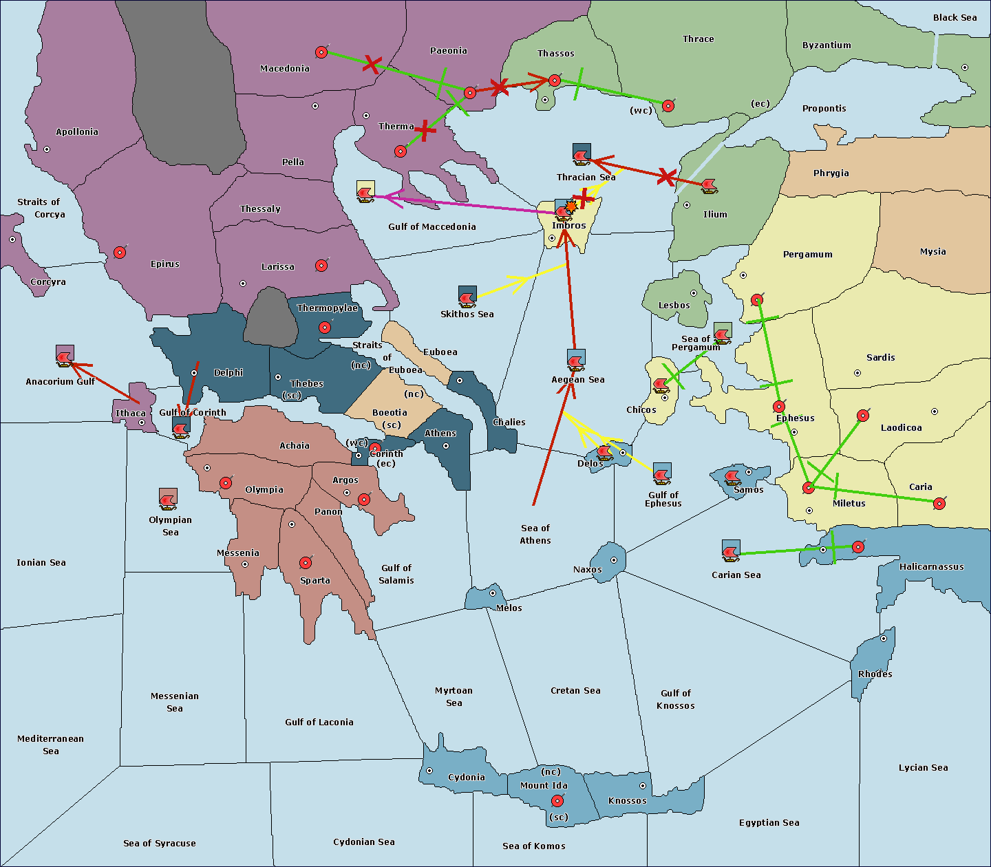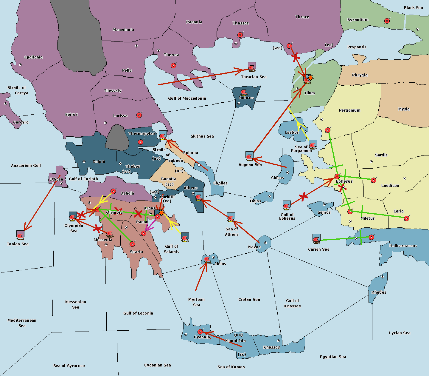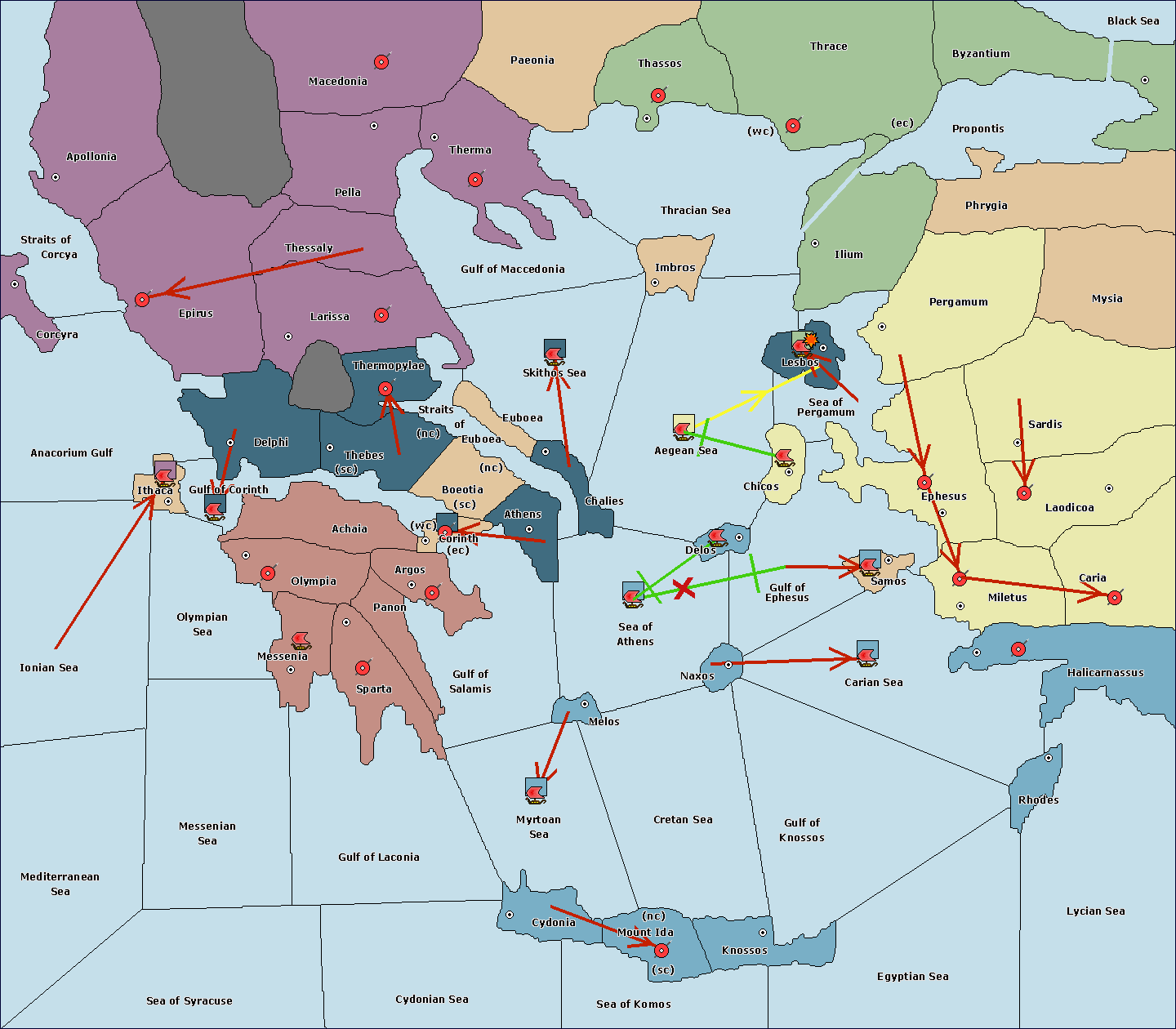The fleet at Sea of Athens support hold to Gulf of Ephesus.