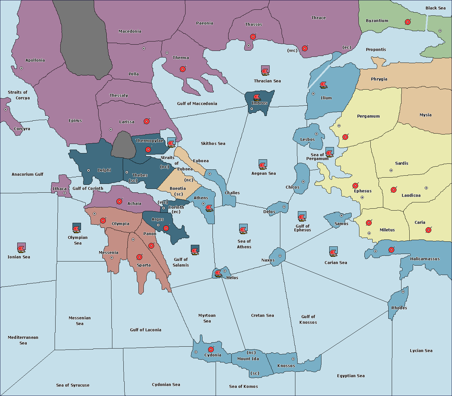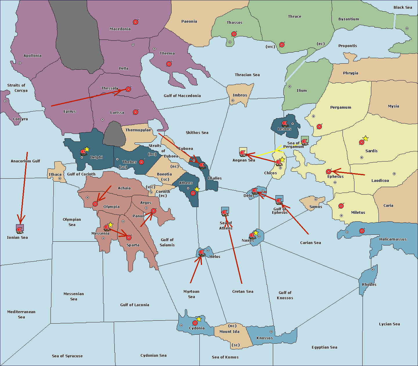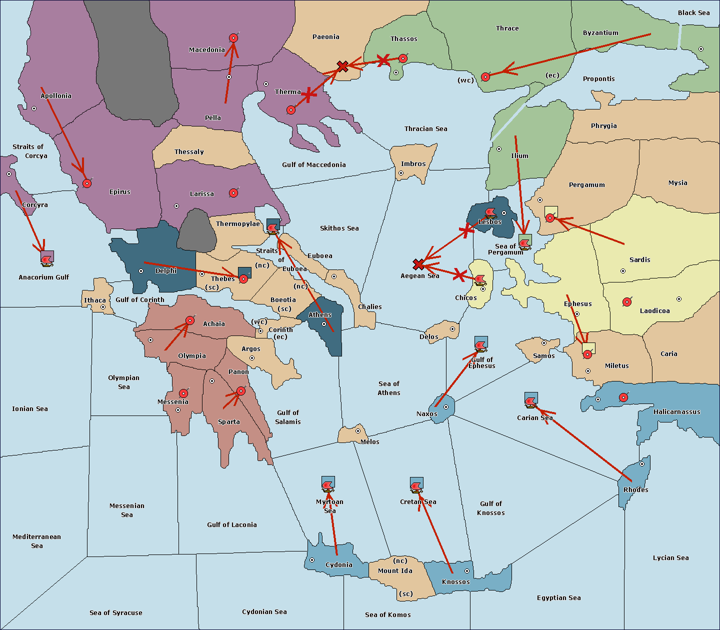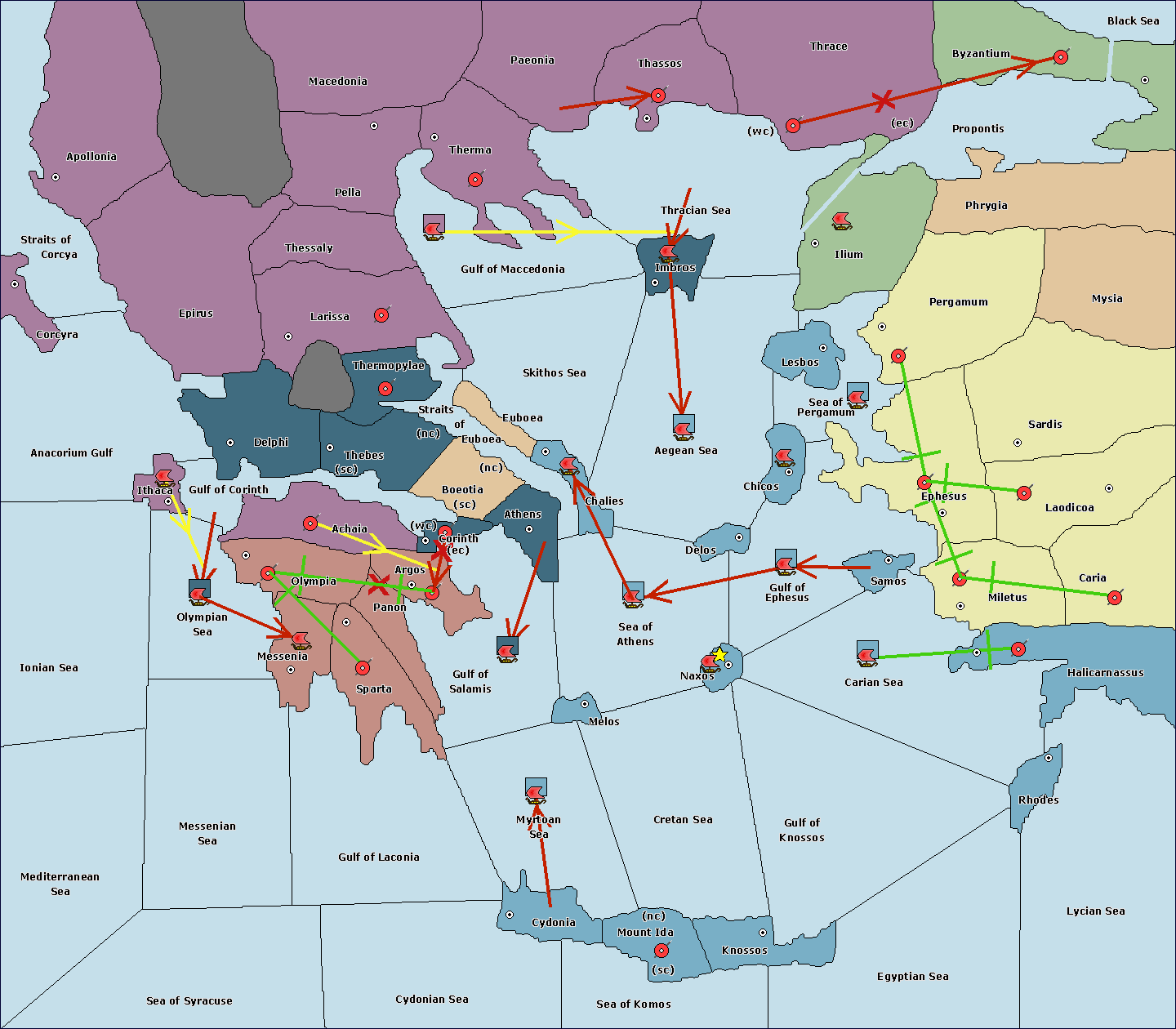 The fleet at Sea of Athens support hold to Gulf of Ephesus.