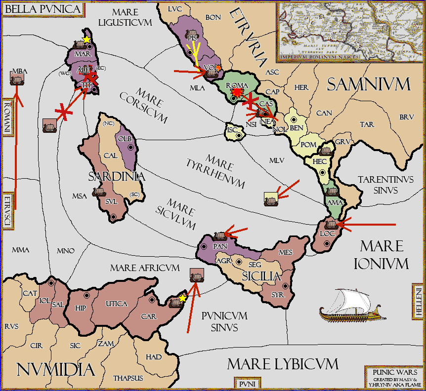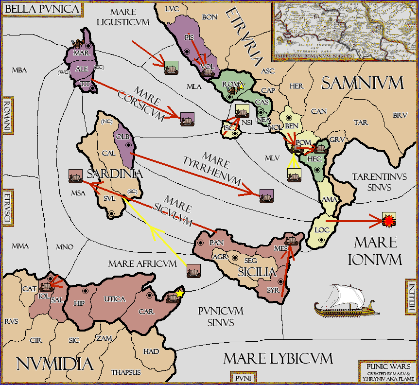 The fleet at Mare Tyrrhenum move to Mare Siculum.