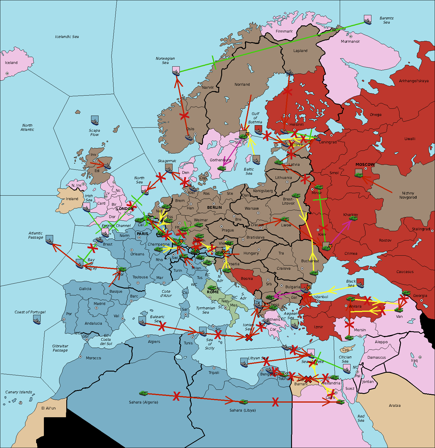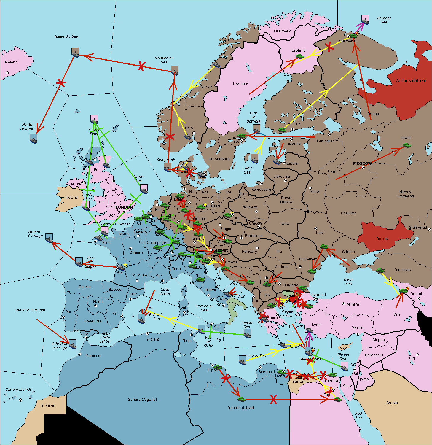The fleet at Tripoli support move to Sea of Sicily from Balearic Sea.