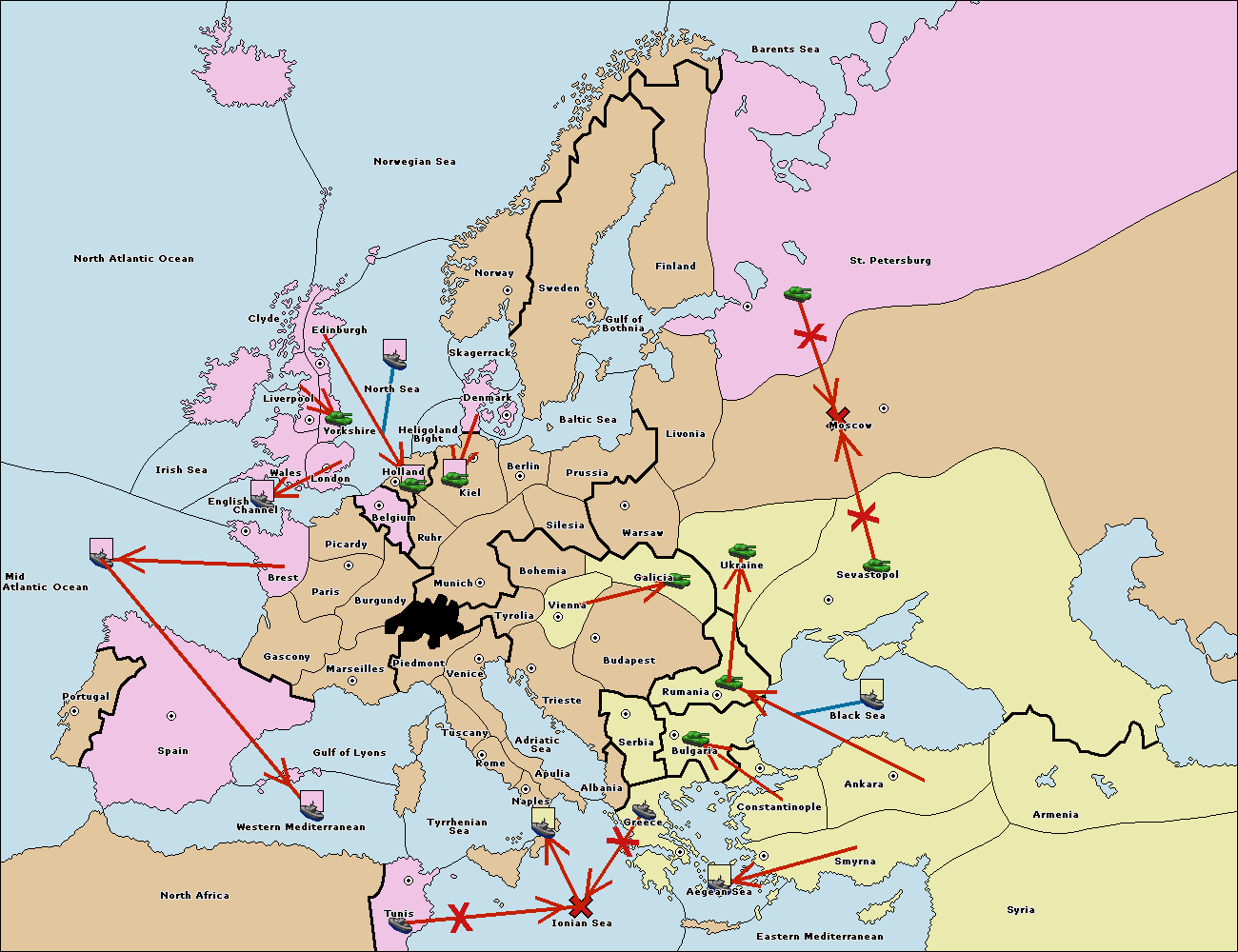 The fleet at Mid-Atlantic Ocean move to Western Mediterranean.