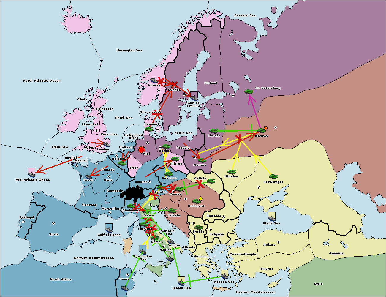 The fleet at St. Petersburg (South Coast) move to Livonia.