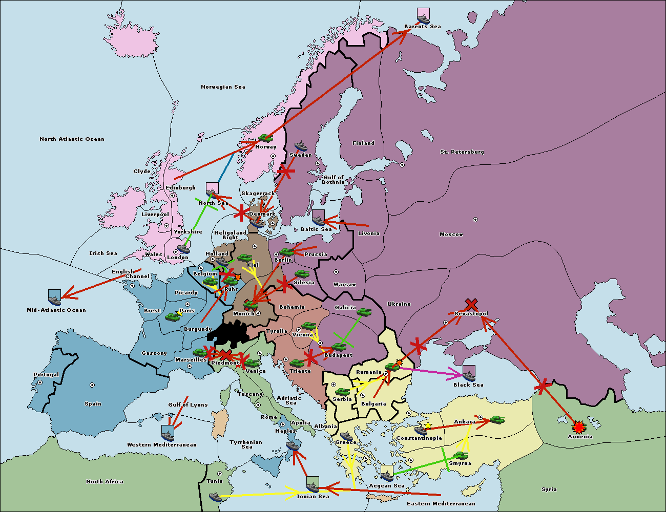 The fleet at Black Sea support move to Bulgaria from Constantinople.