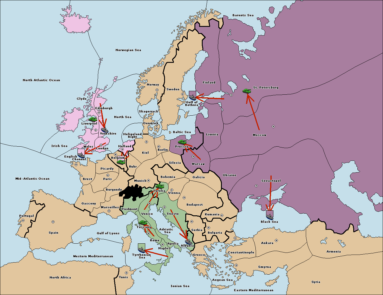 The fleet at Sevastopol move to Black Sea.