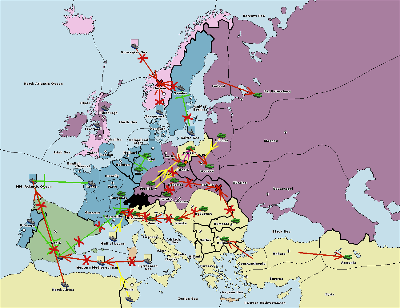 The fleet at Apulia support move to Ionian Sea from Tunis.