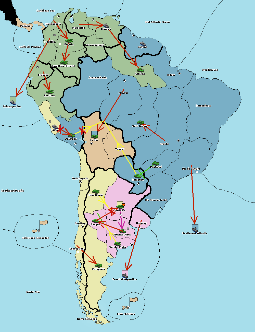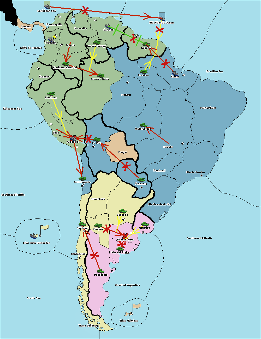 The fleet at Mid Atlantic Ocean retreat to Brazilian Sea.