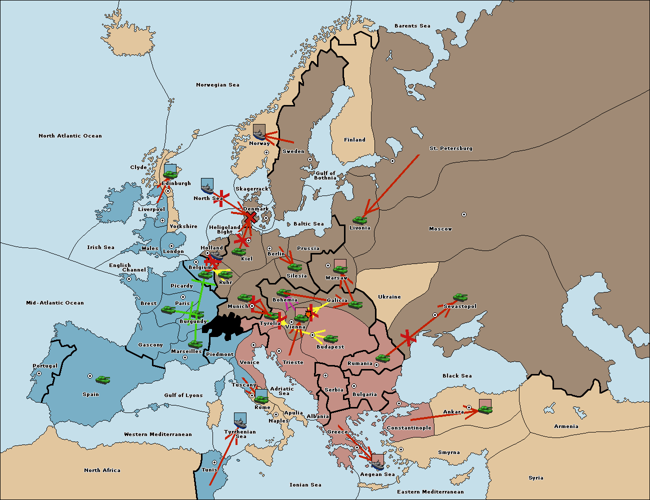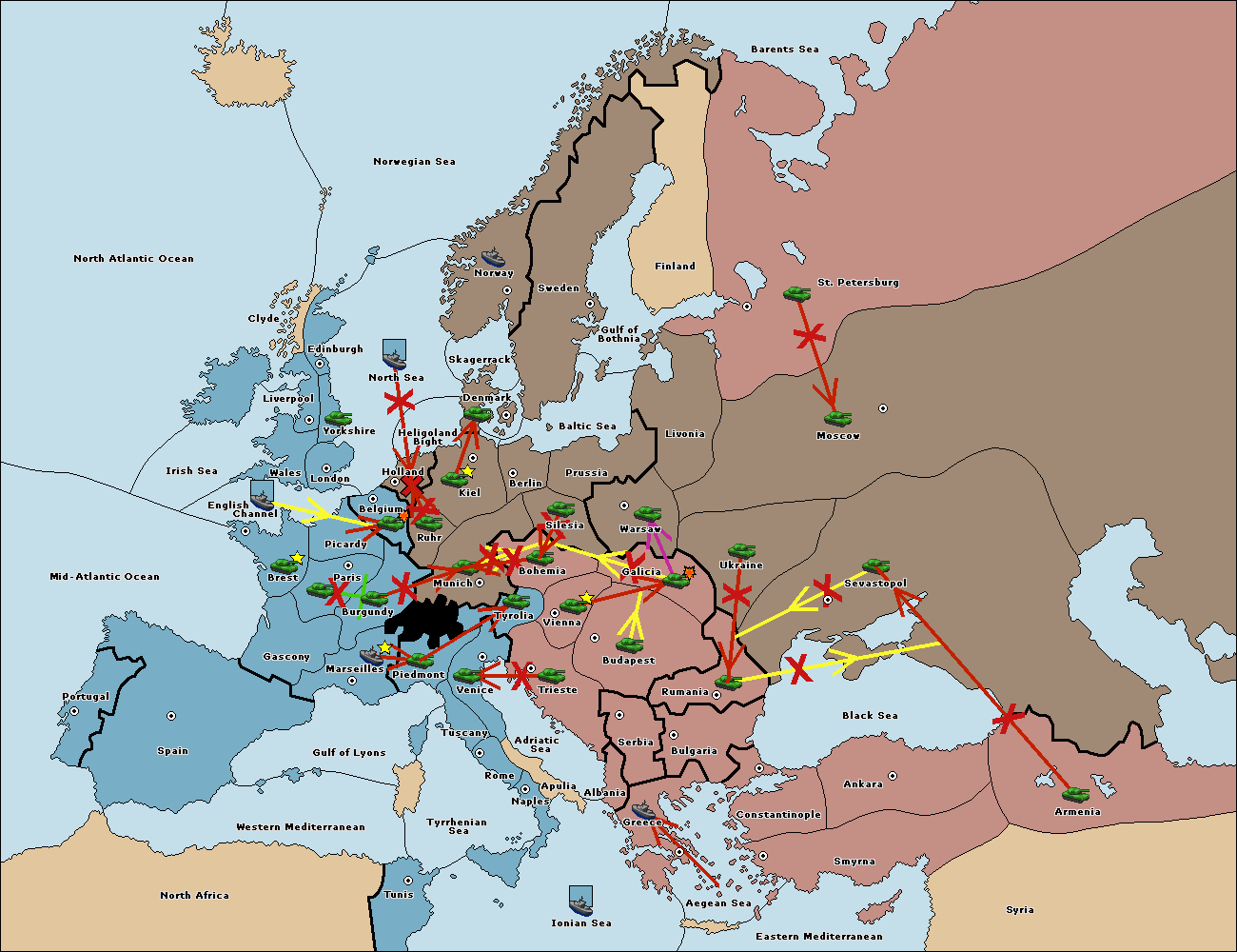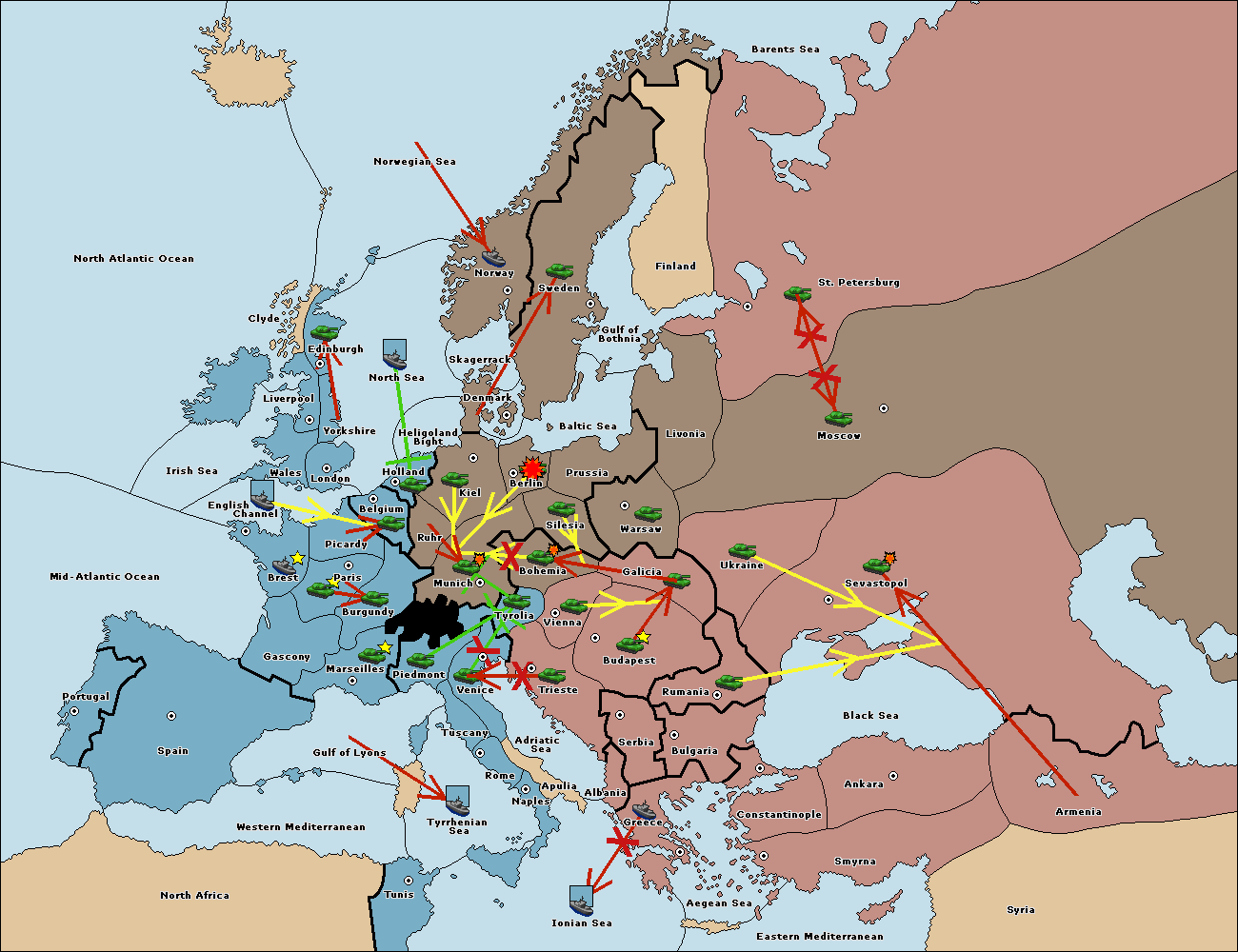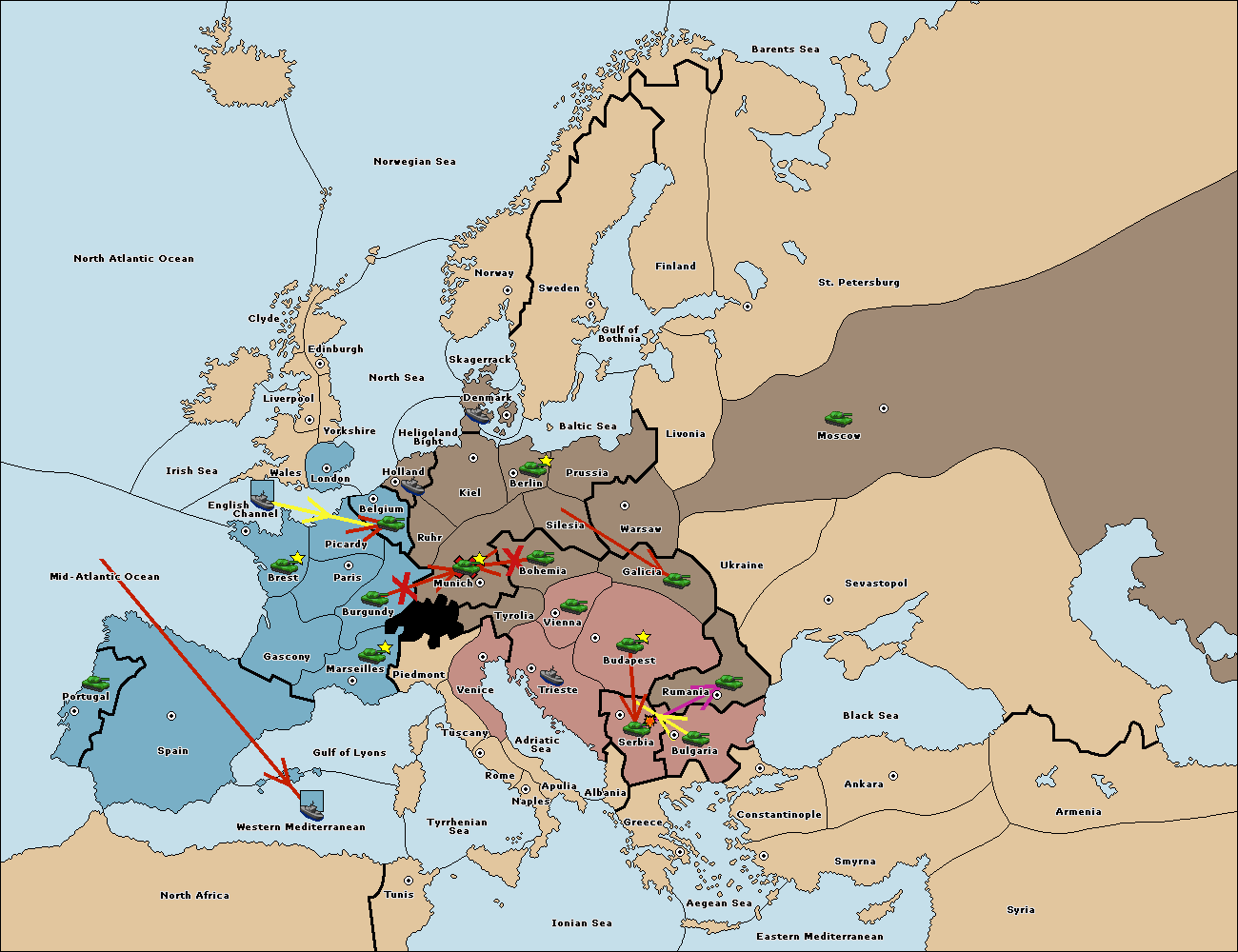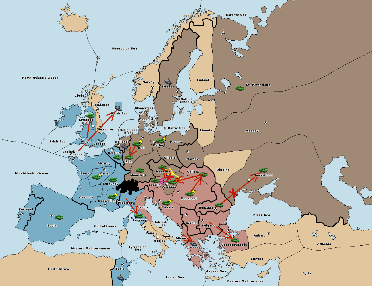 The fleet at Mid-Atlantic Ocean move to Western Mediterranean.