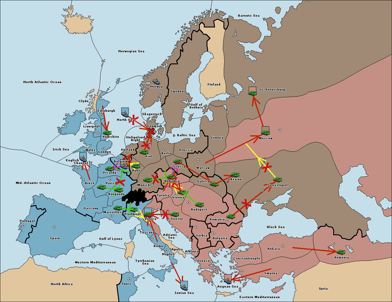 The army at Tyrolia move to Trieste.