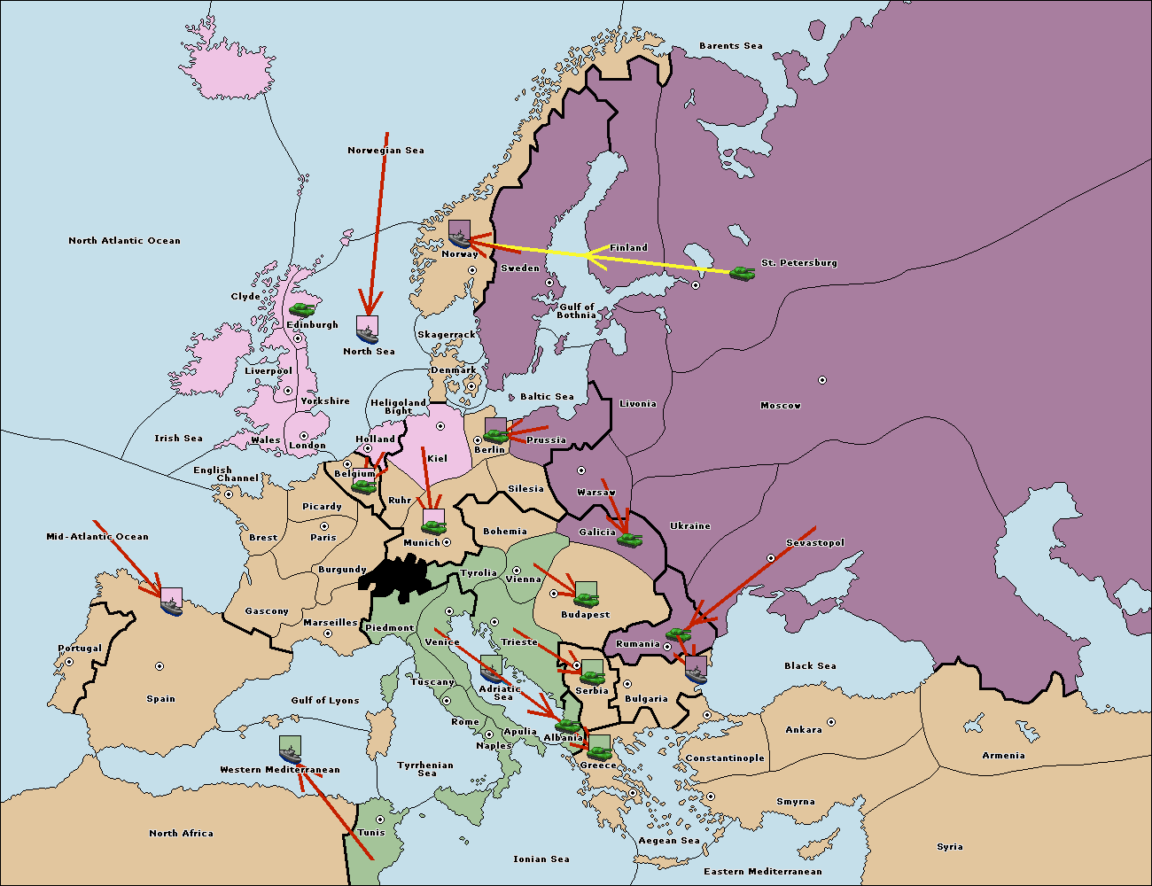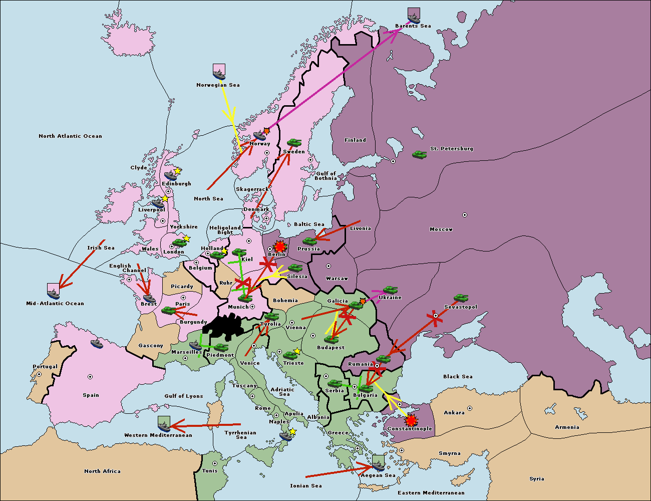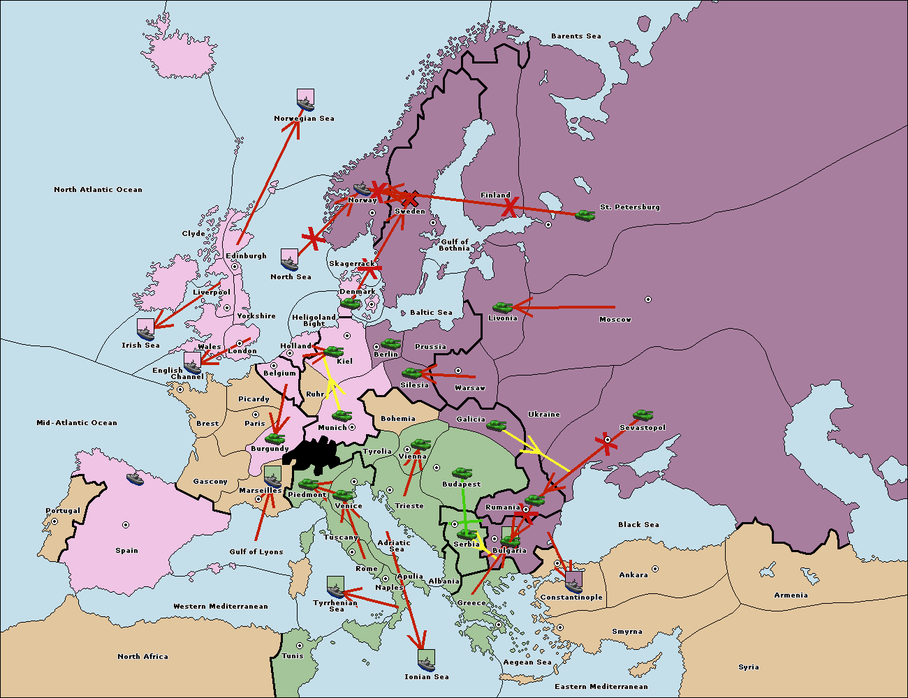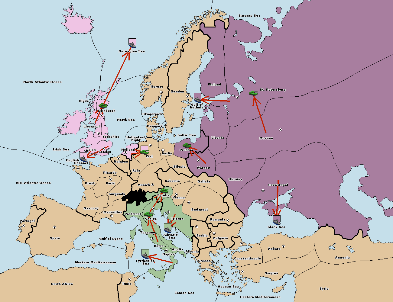 The fleet at Bulgaria (North Coast) move to Constantinople.