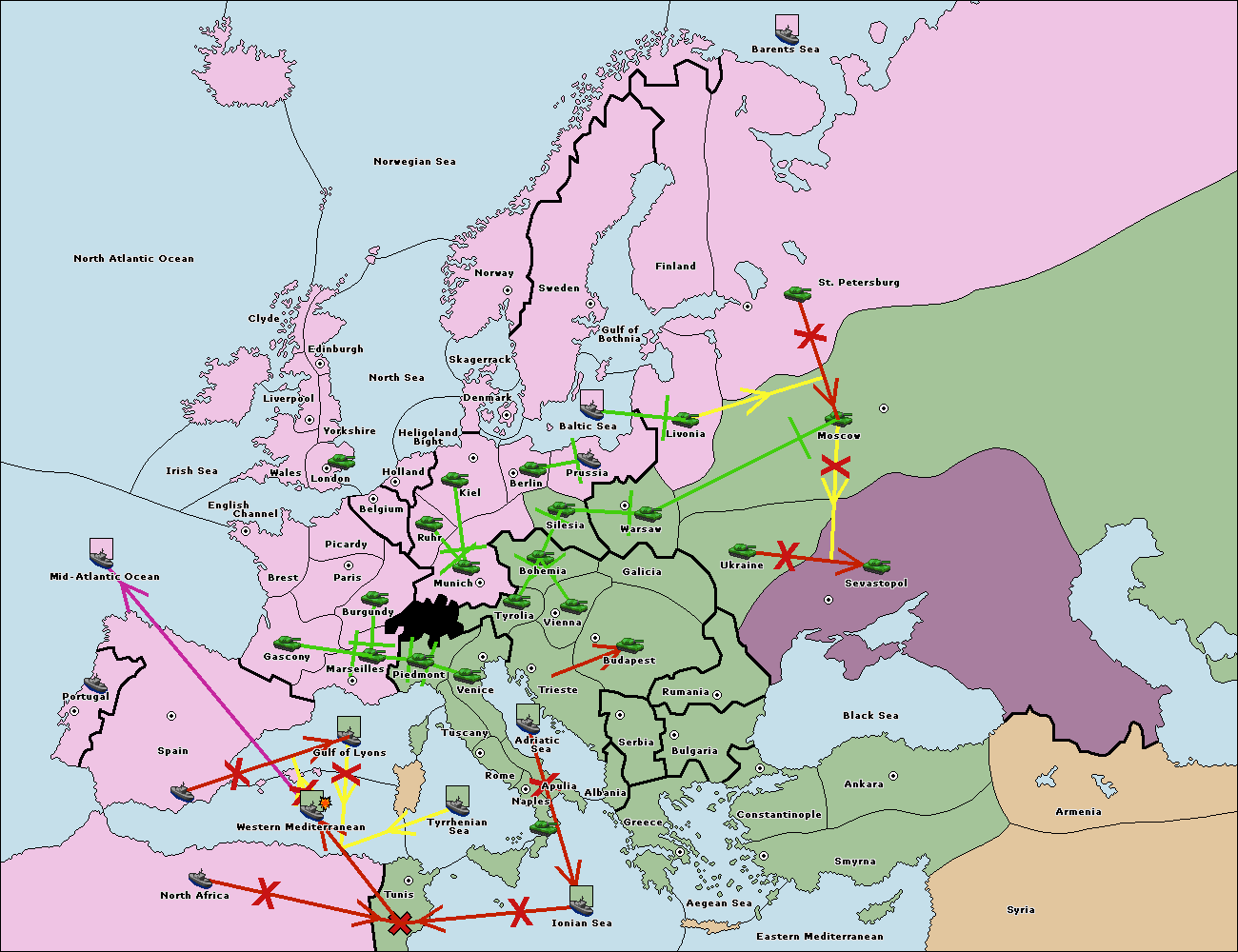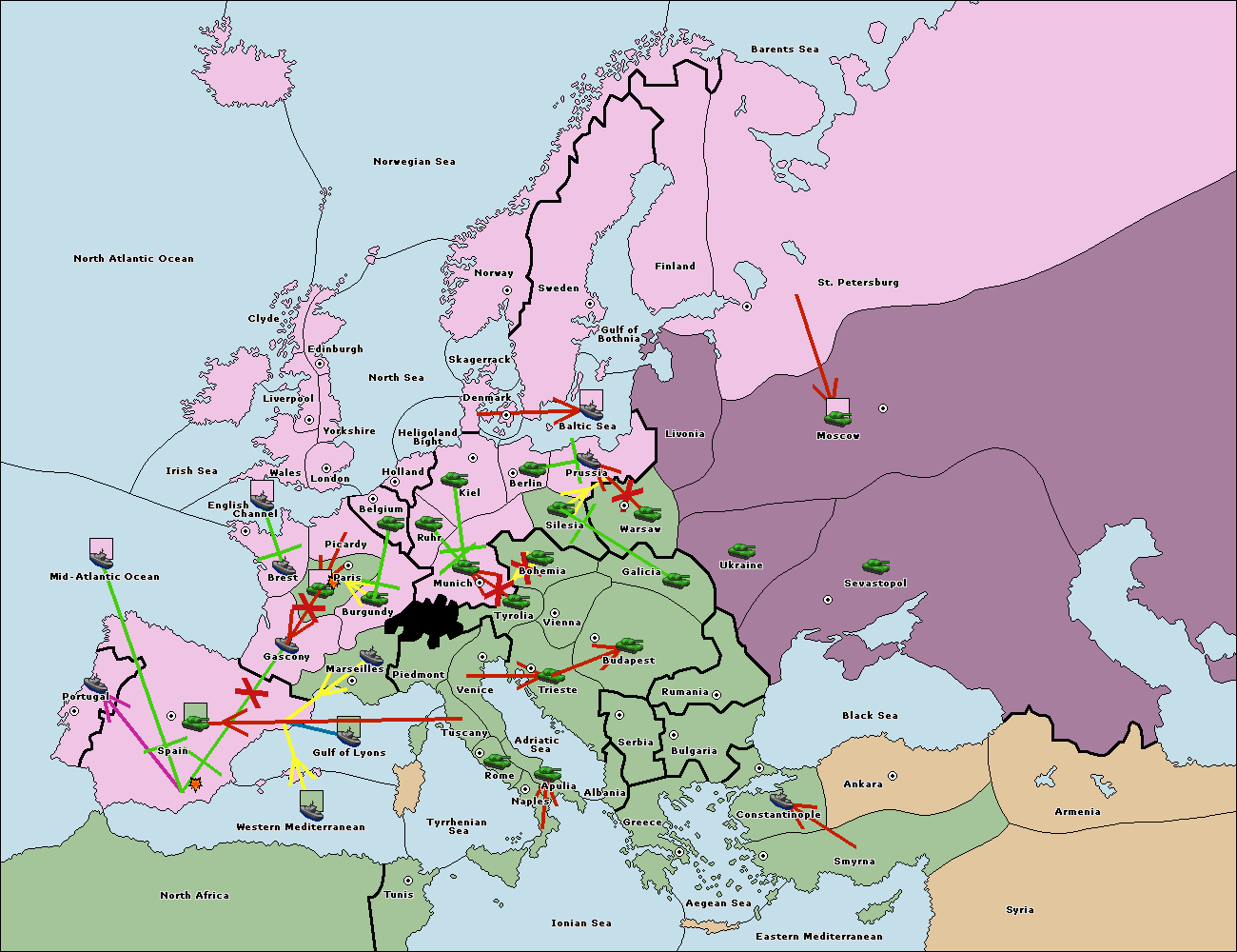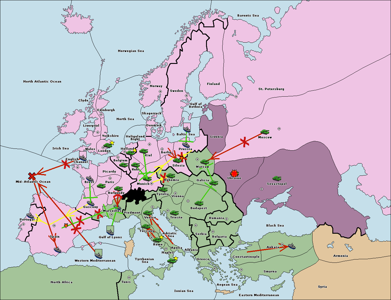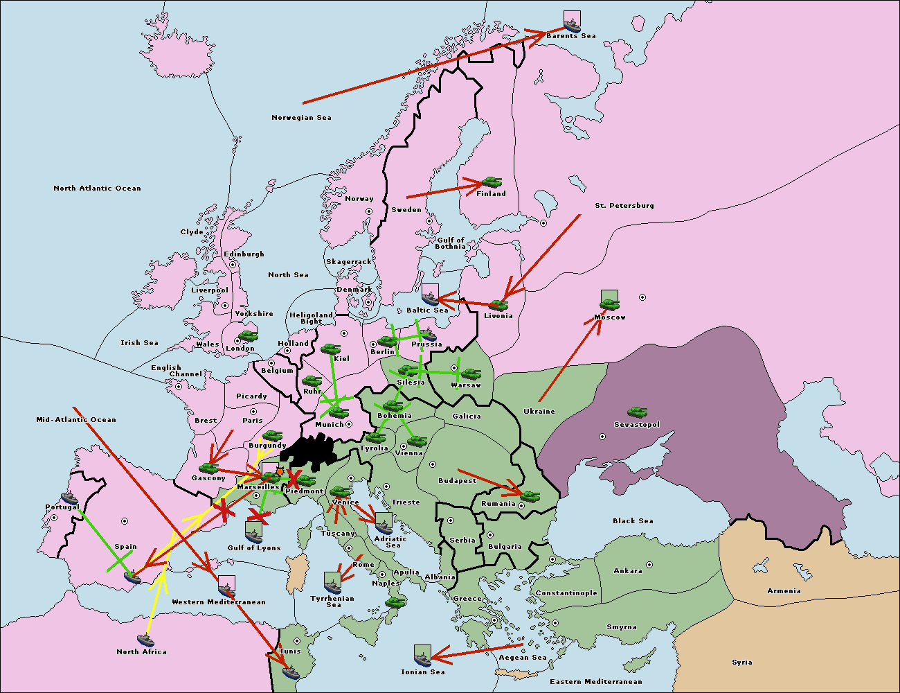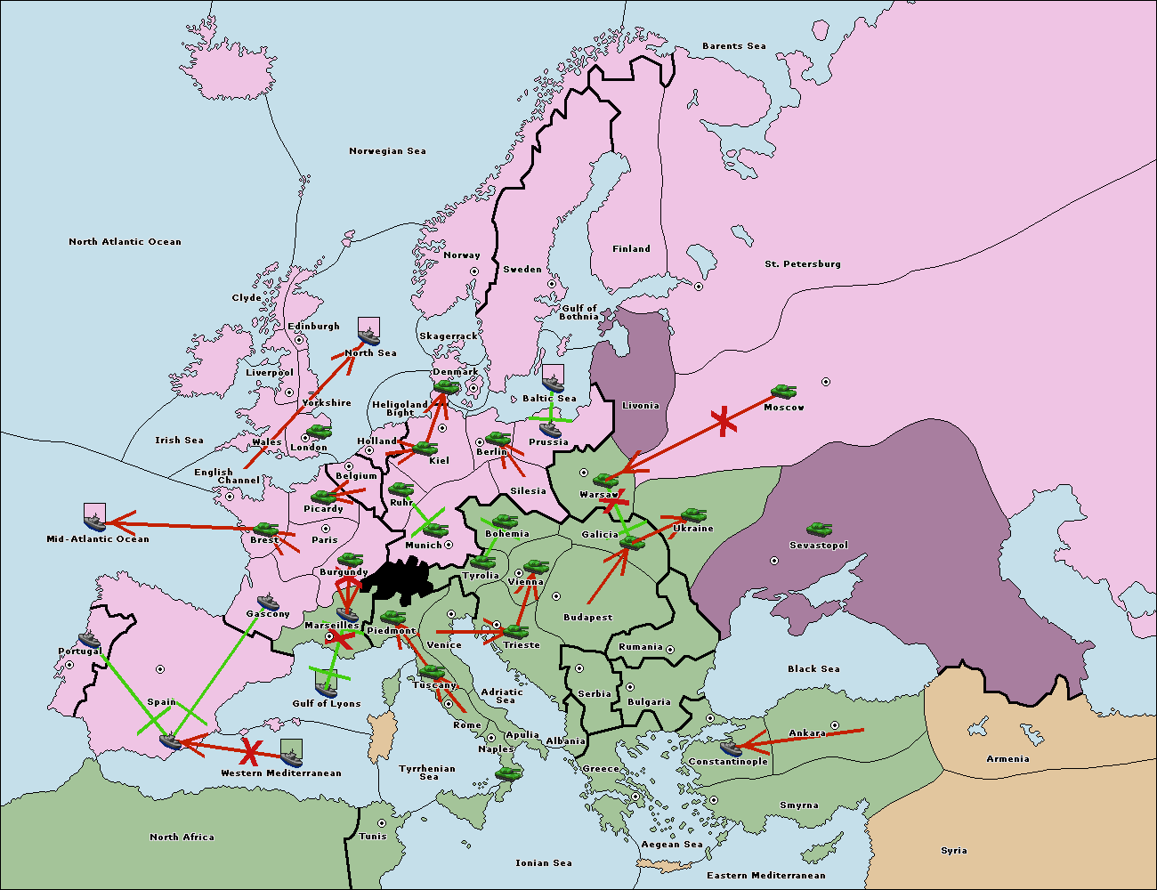 The fleet at Bulgaria (North Coast) move to Constantinople.