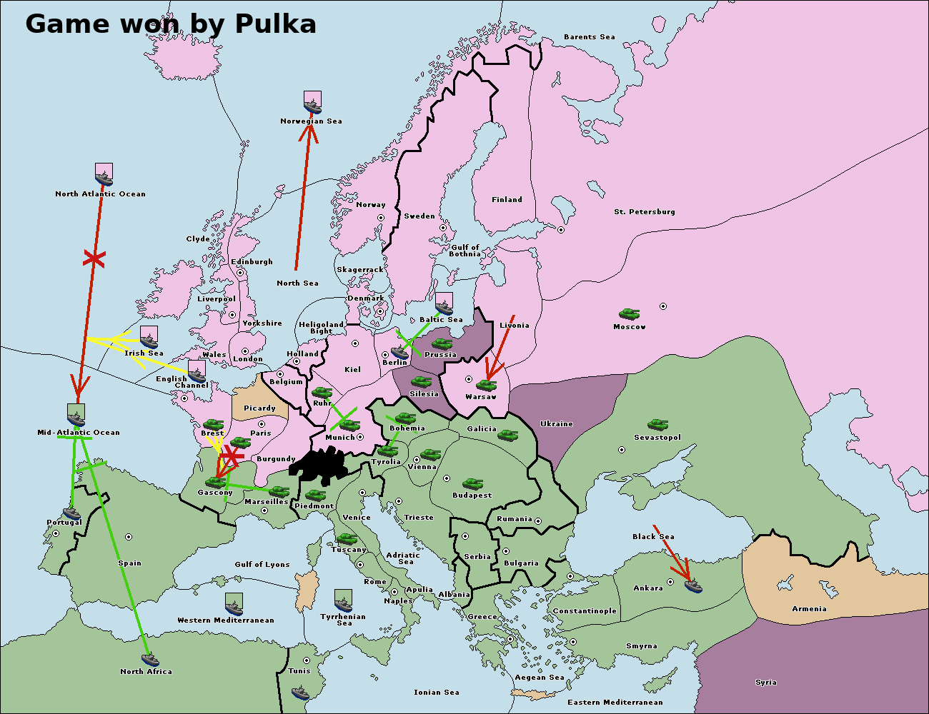 Неудачные приказы обычно отображаются только на большой карте ().