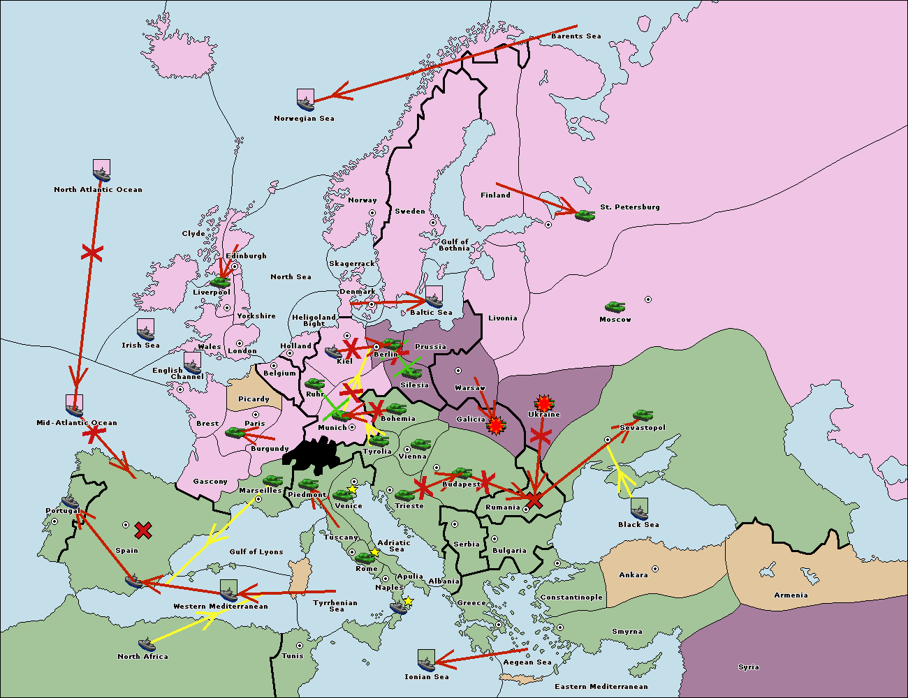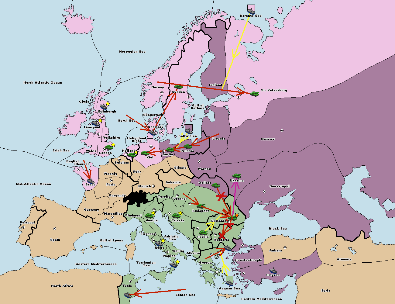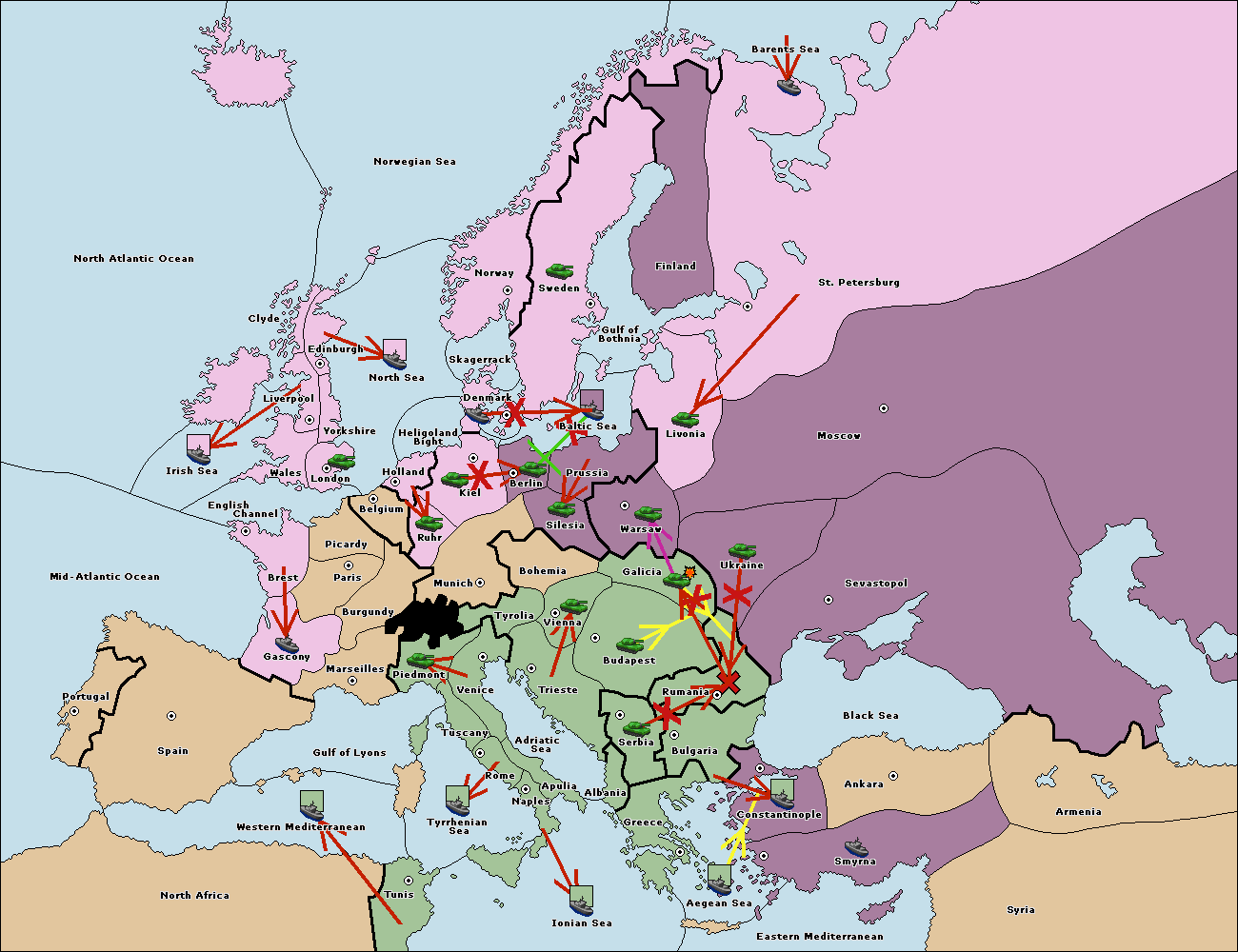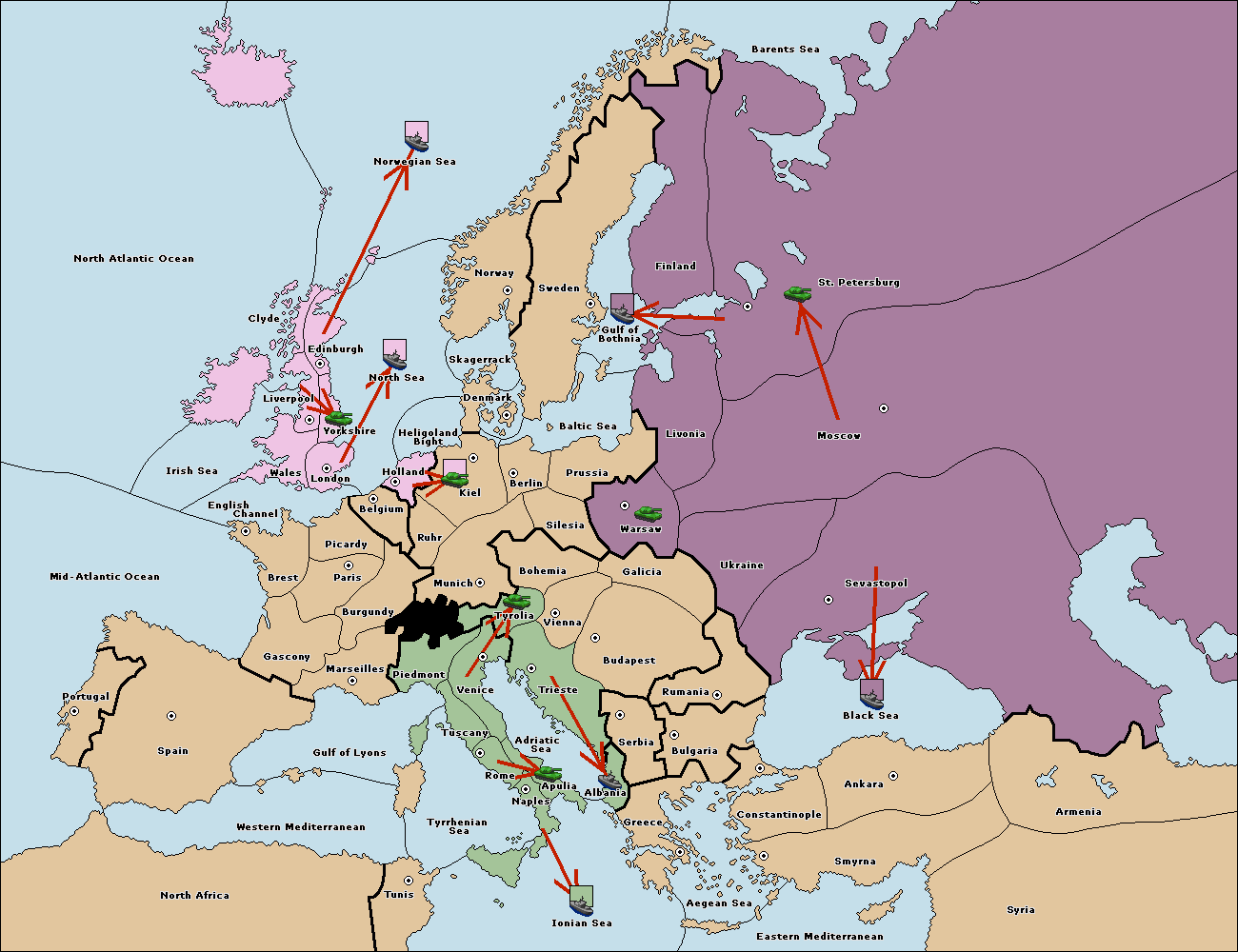 The fleet at Bulgaria (South Coast) move to Constantinople.