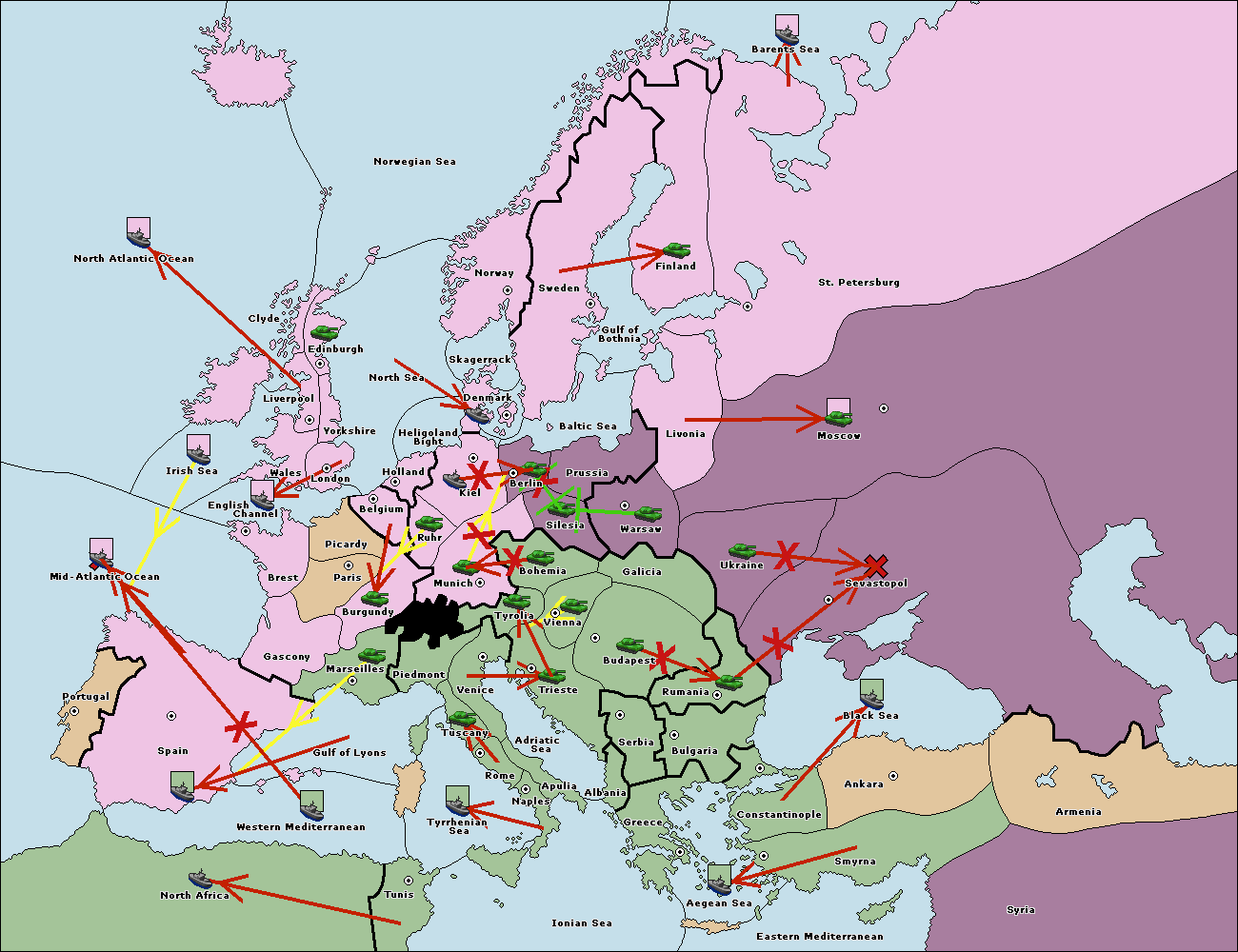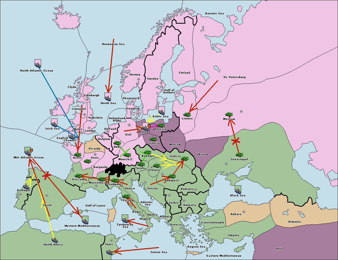 The fleet at Mid-Atlantic Ocean move to Western Mediterranean.