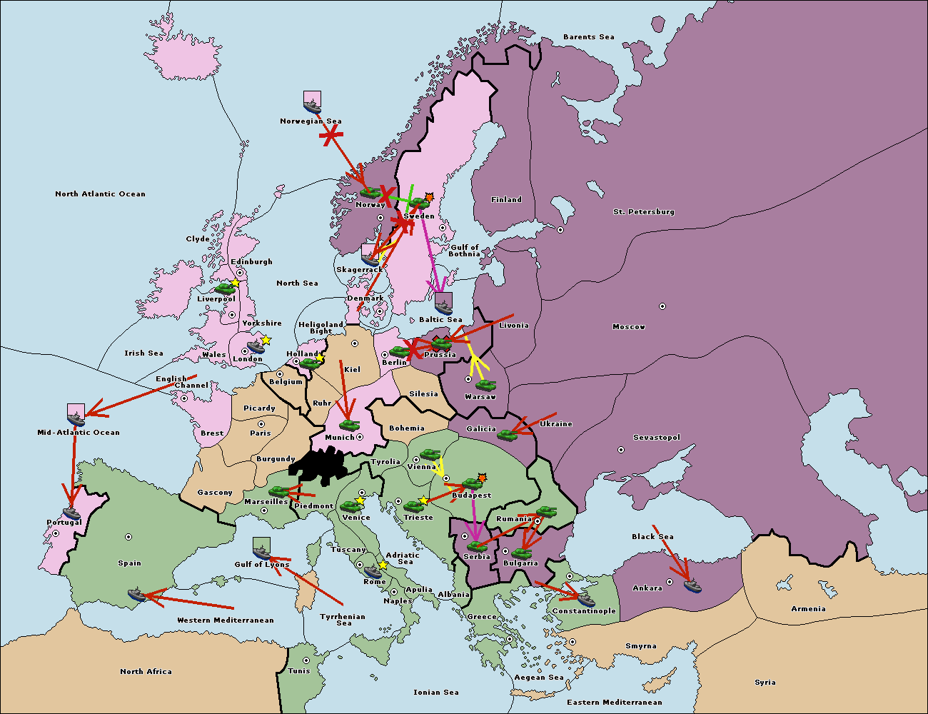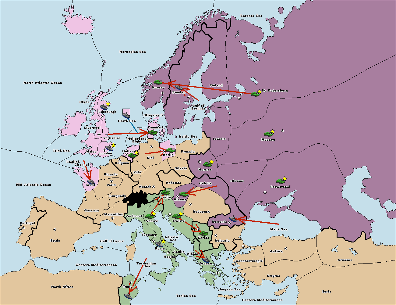 The fleet at Bulgaria (South Coast) move to Constantinople.