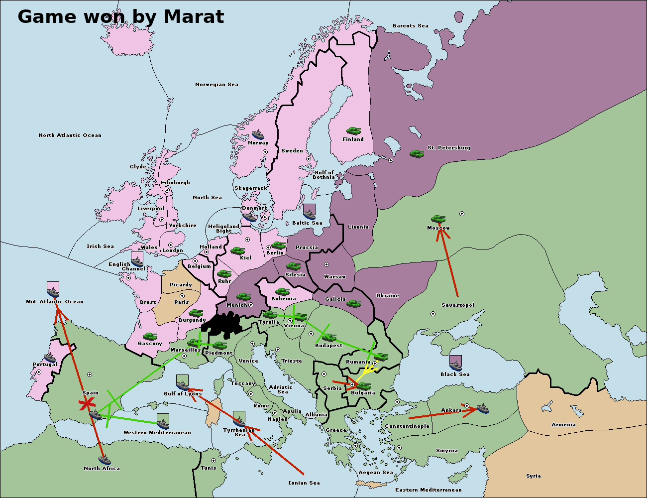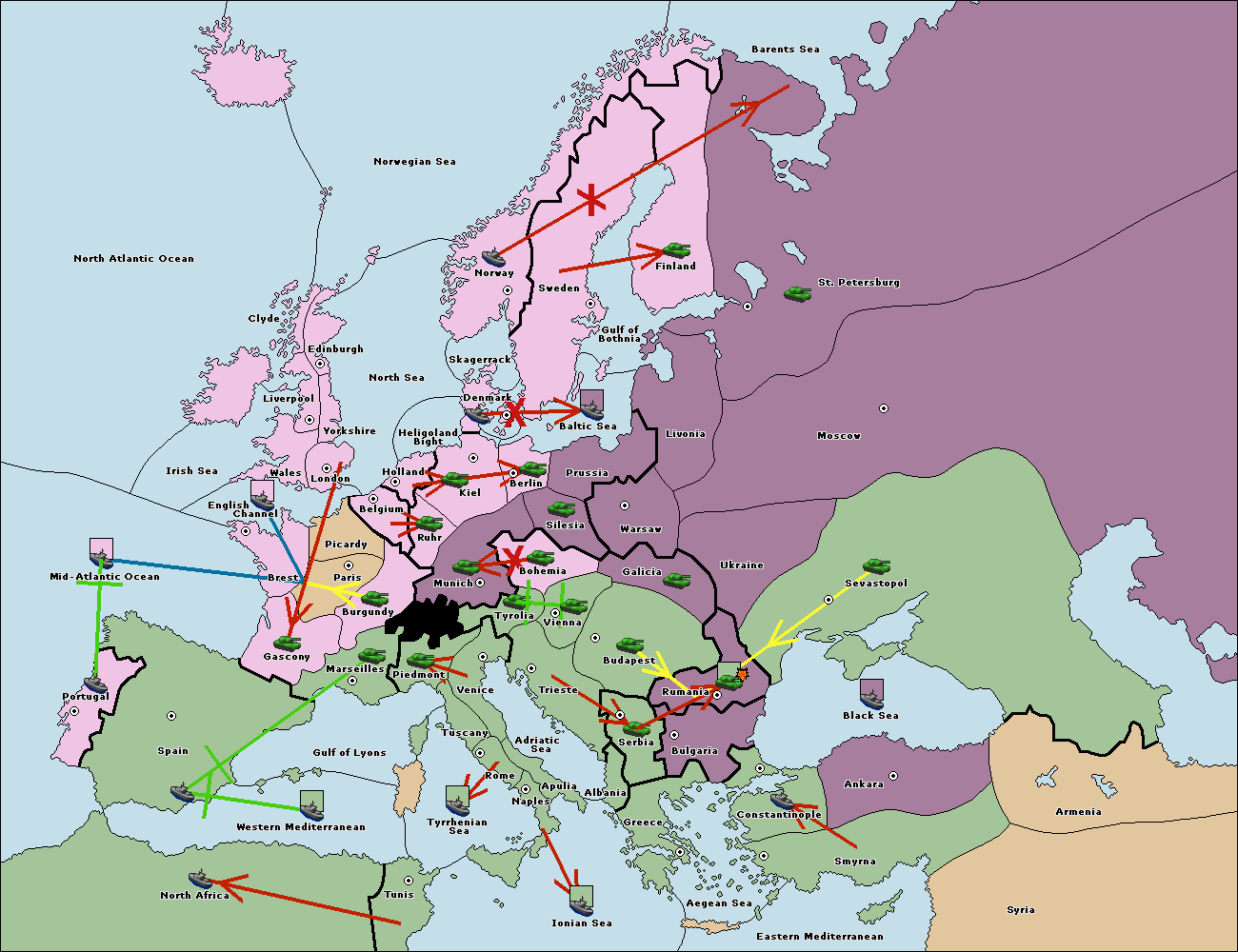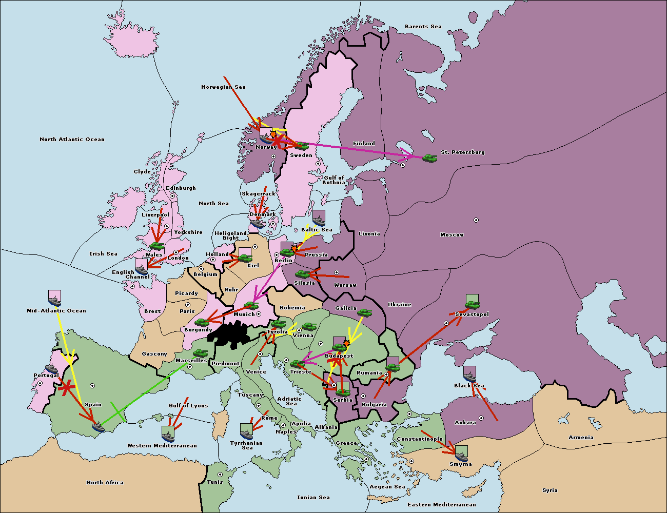 The fleet at North Africa move to Mid-Atlantic Ocean.