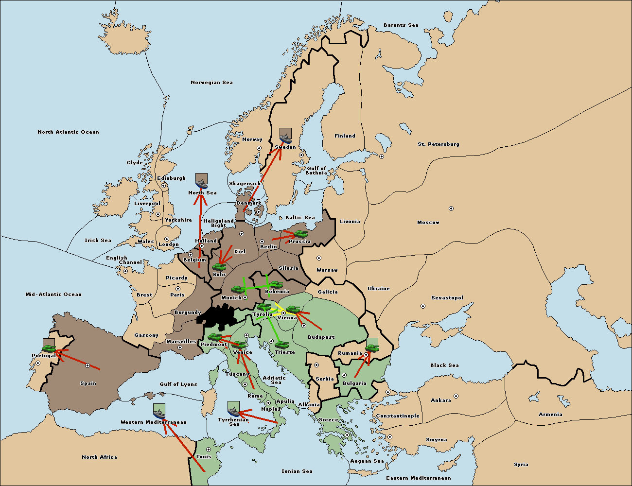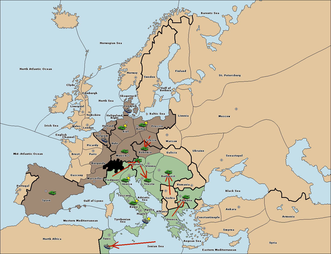 The fleet at Tyrrhenian Sea move to Gulf of Lyons.