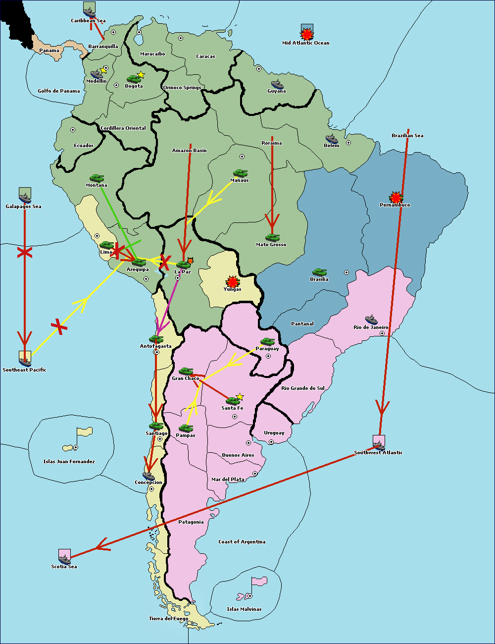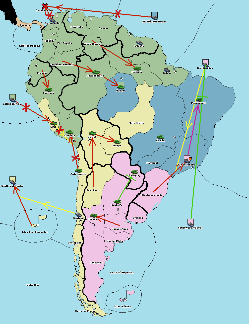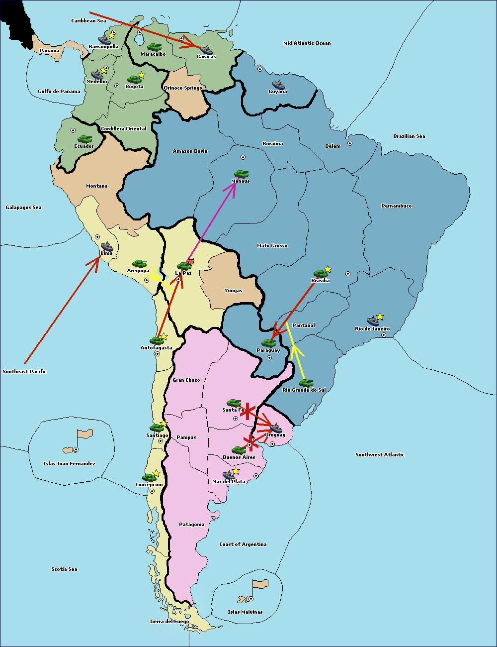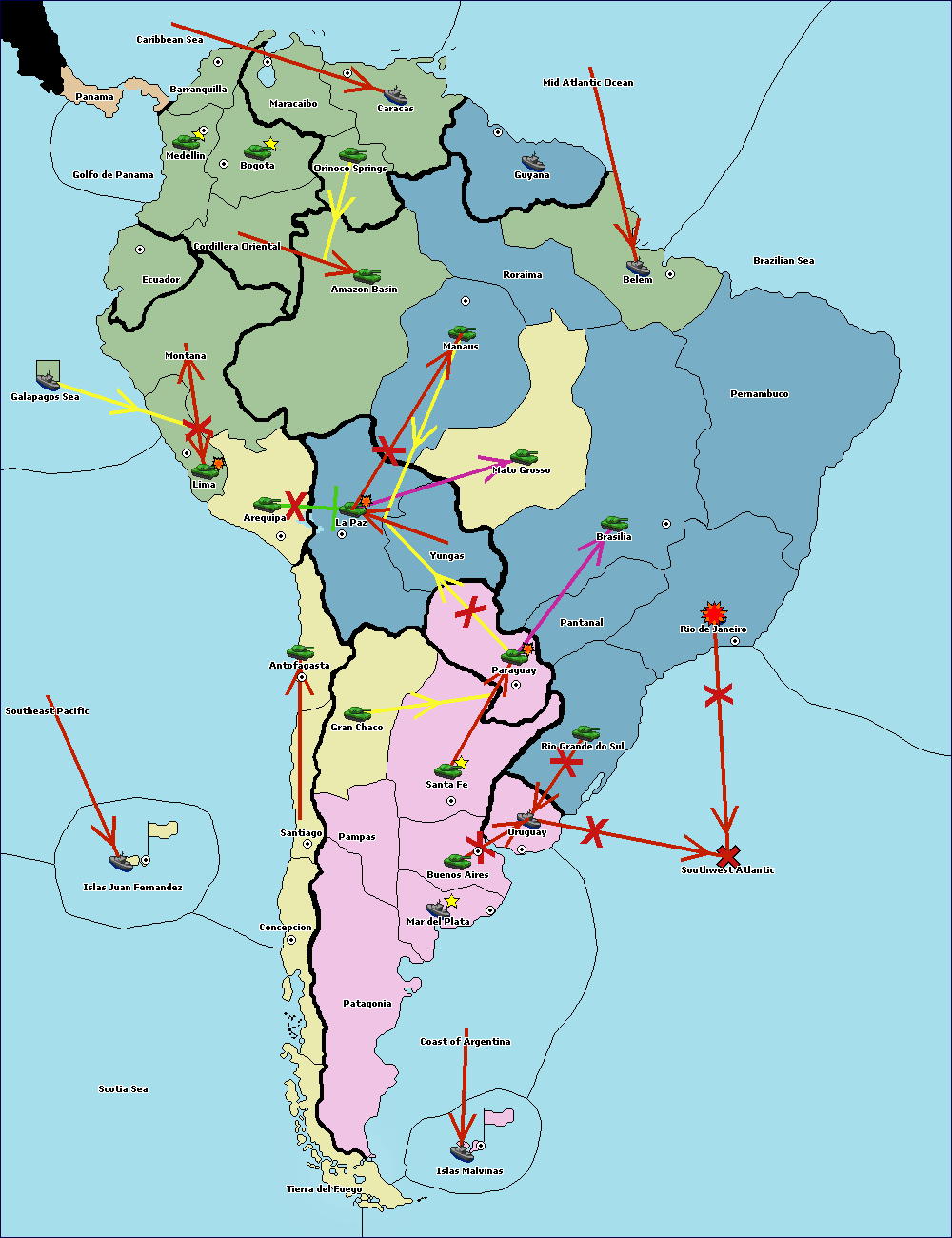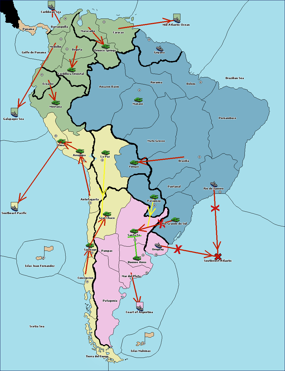 The army at Orinoco Springs support hold to Amazon Basin.