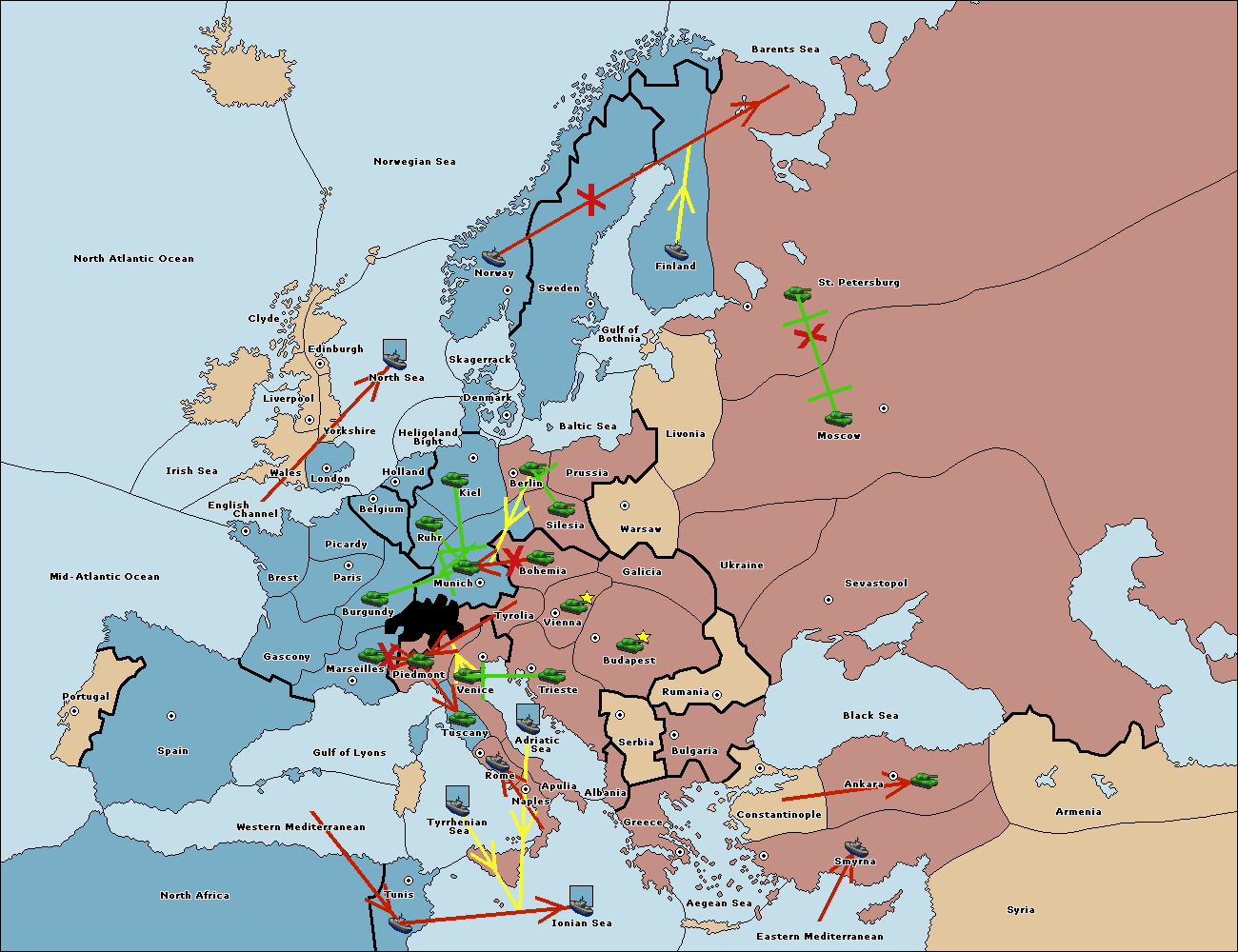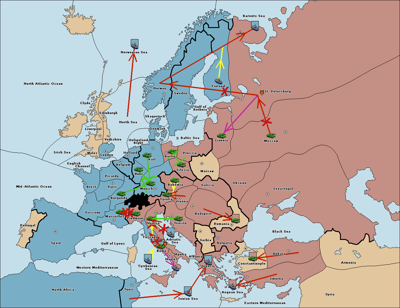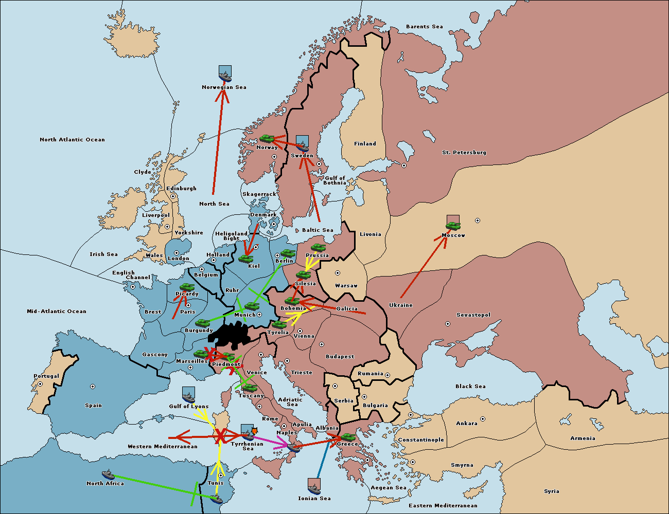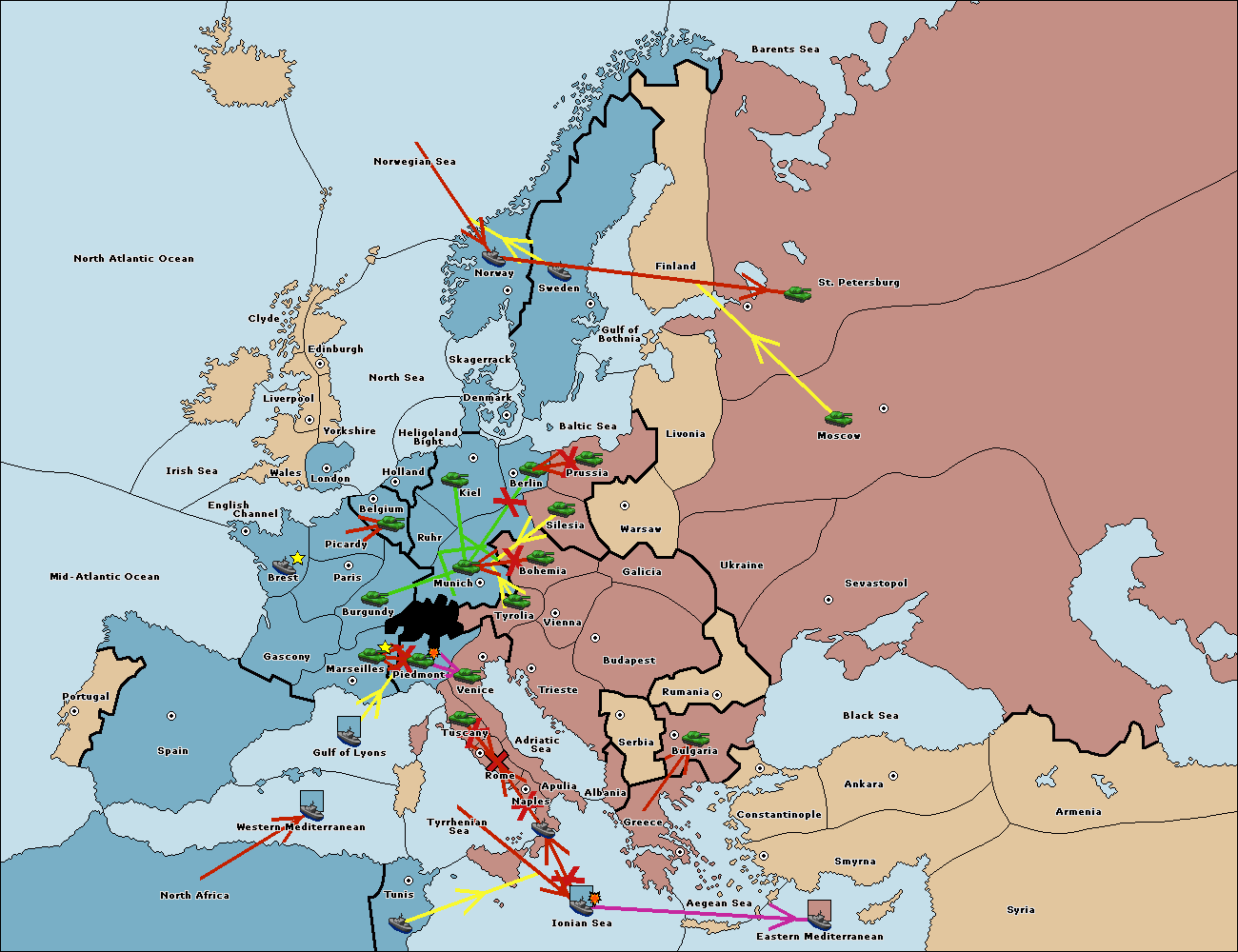 The fleet at Tyrrhenian Sea support move to Naples from Ionian Sea.