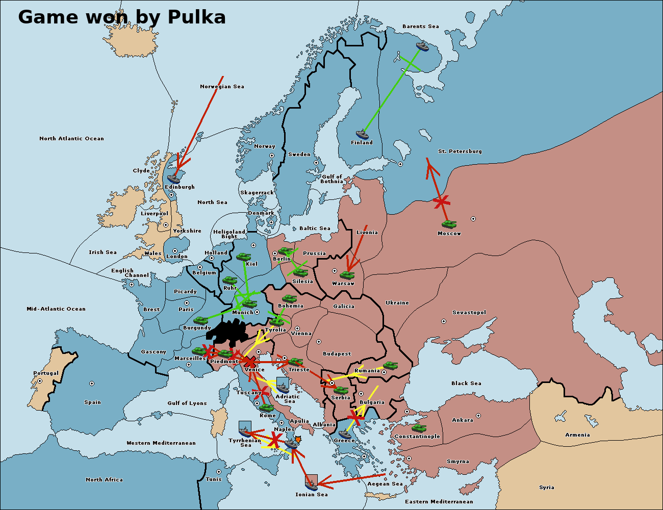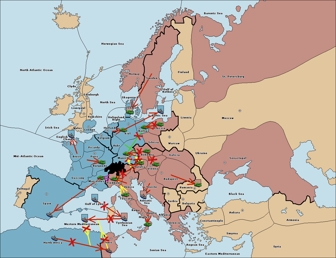 The fleet at Tyrrhenian Sea support move to Tunis from Ionian Sea.