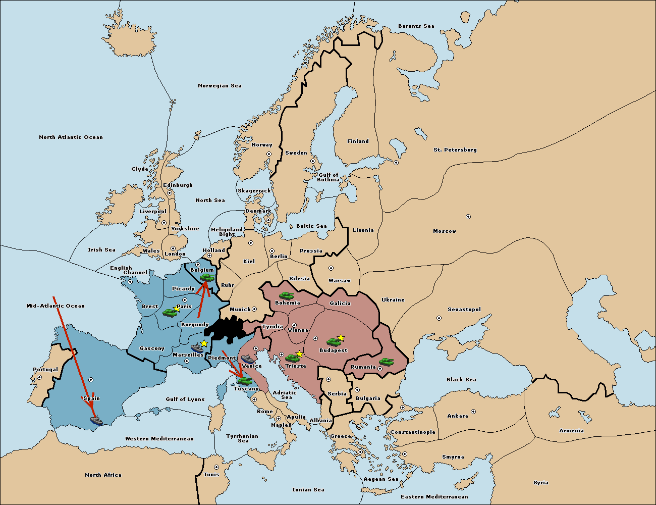 The fleet at Spain (South Coast) move to Western Mediterranean.