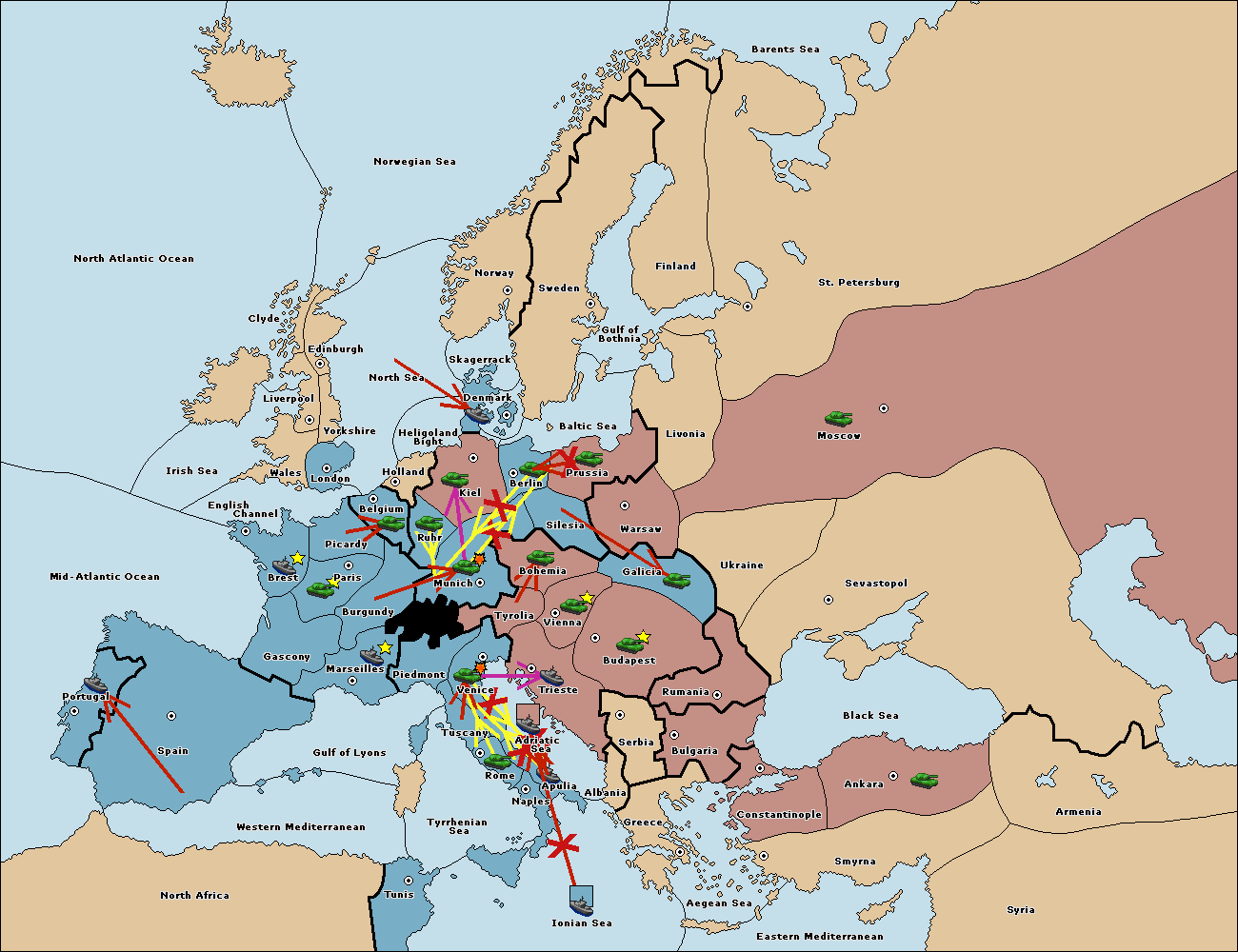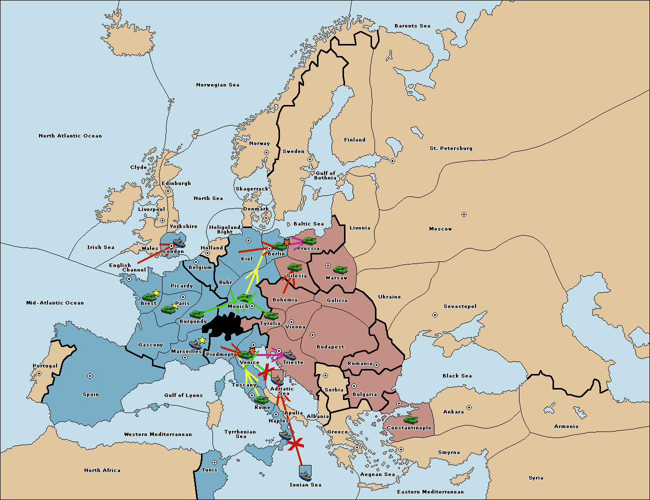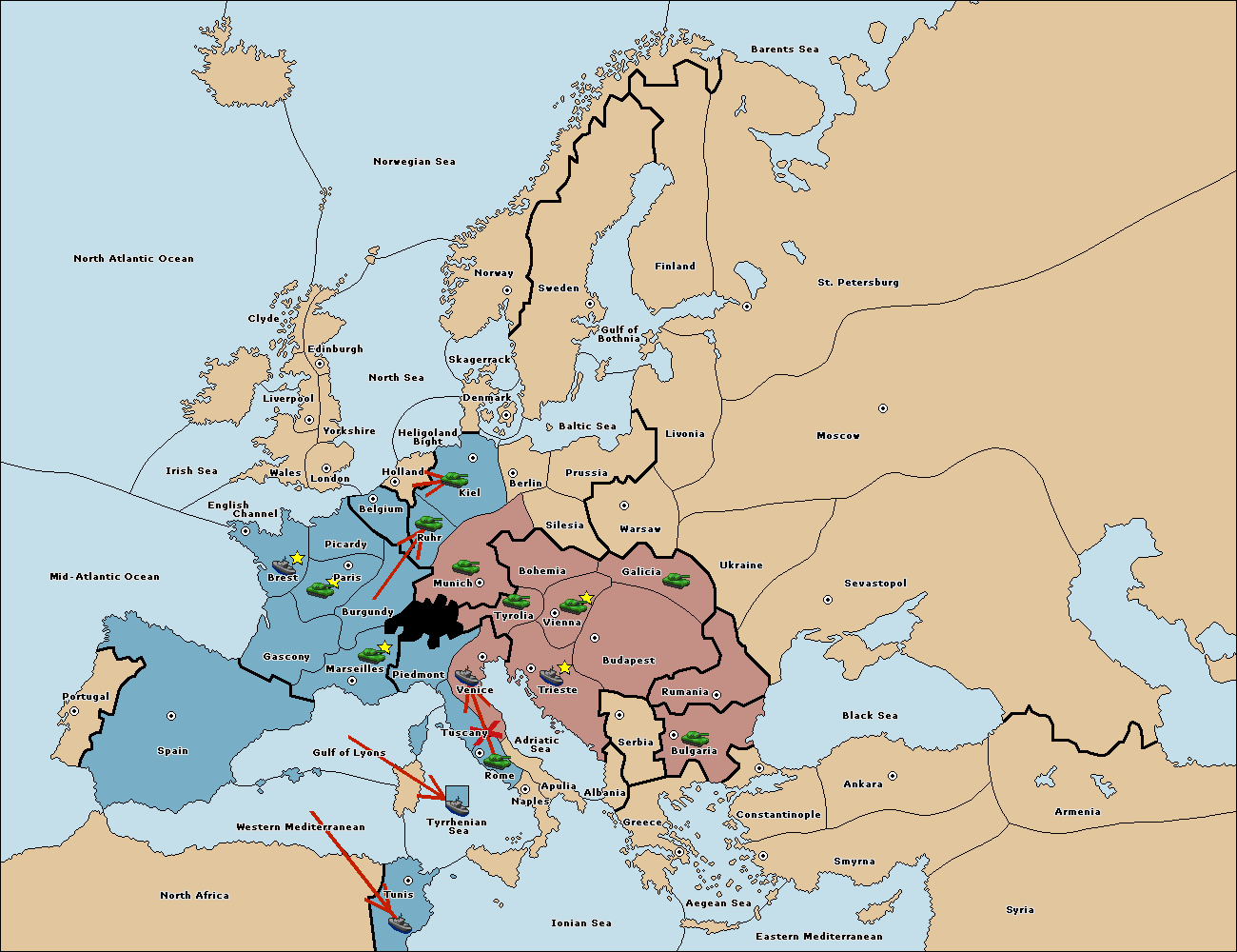 The fleet at Adriatic Sea support move to Trieste from Tyrolia.