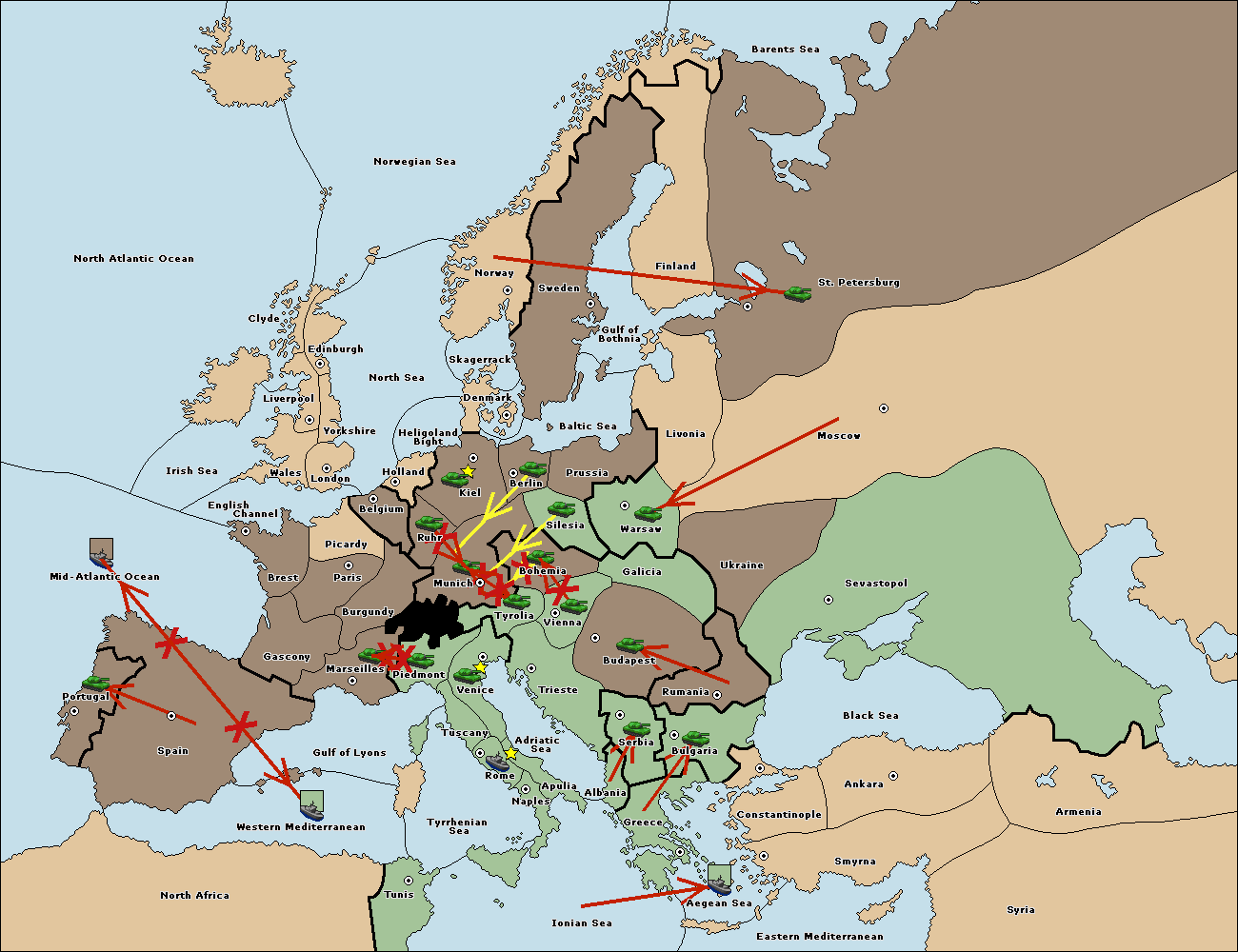 The fleet at Mid-Atlantic Ocean move to Western Mediterranean.