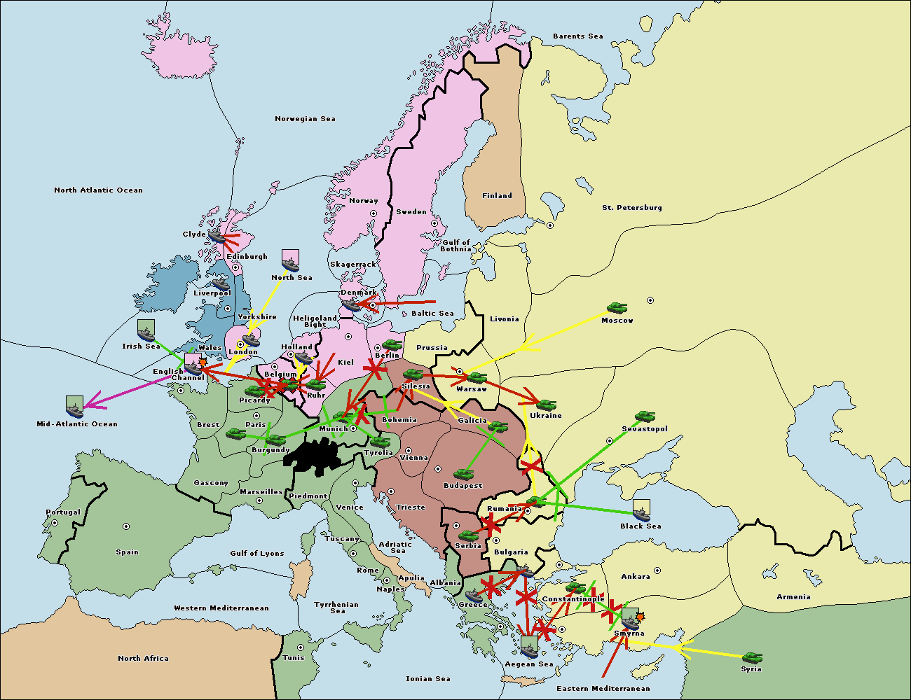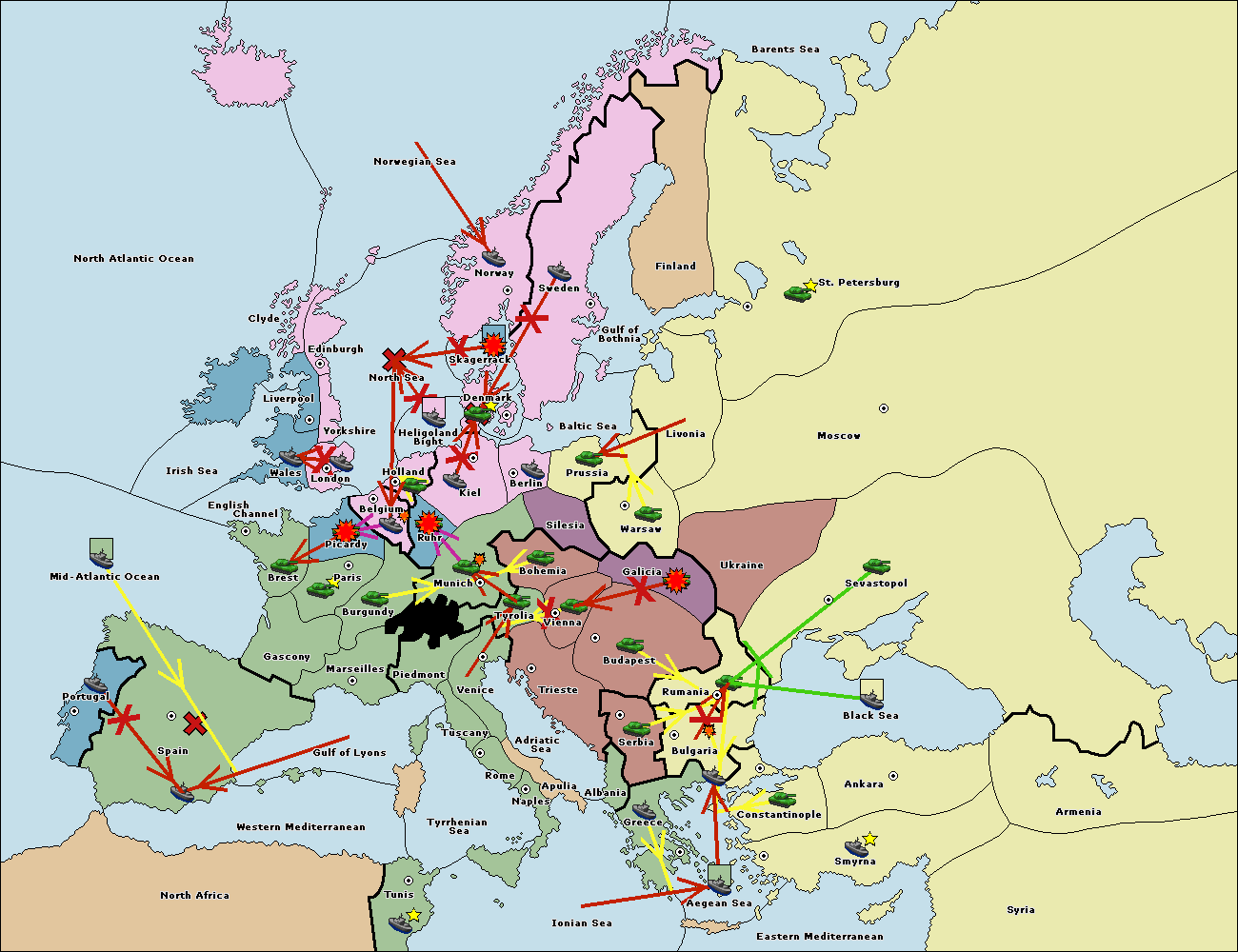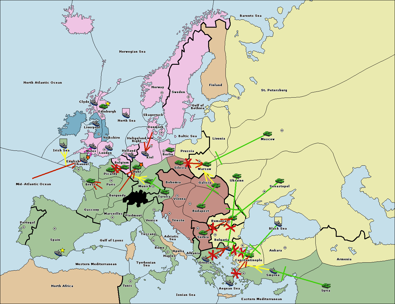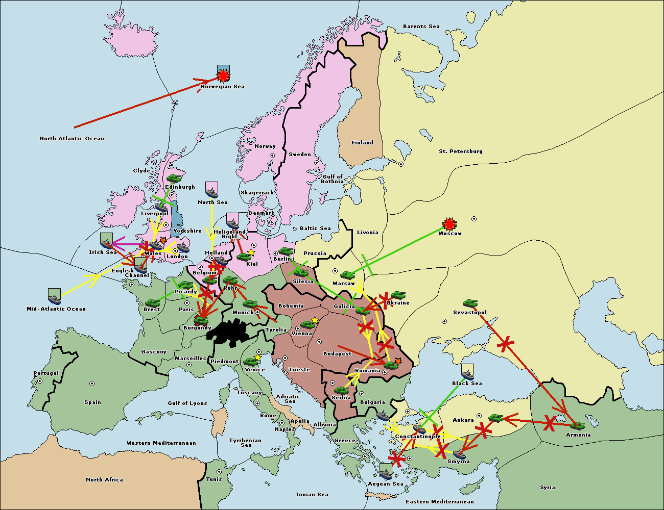 The fleet at Bulgaria (South Coast) support move to Aegean Sea from Smyrna.