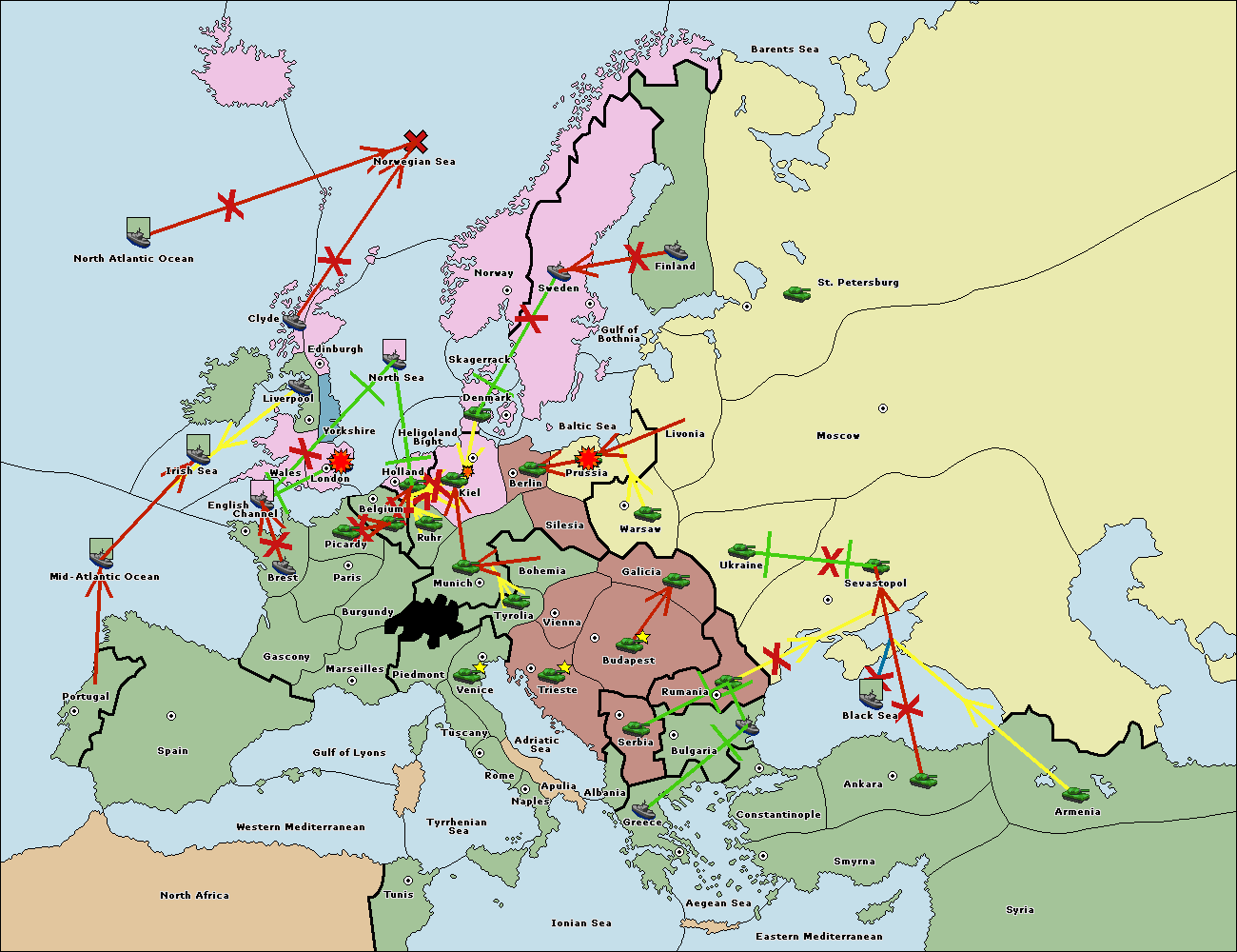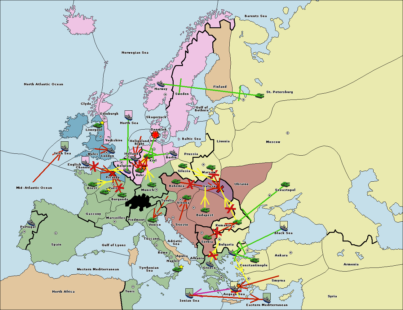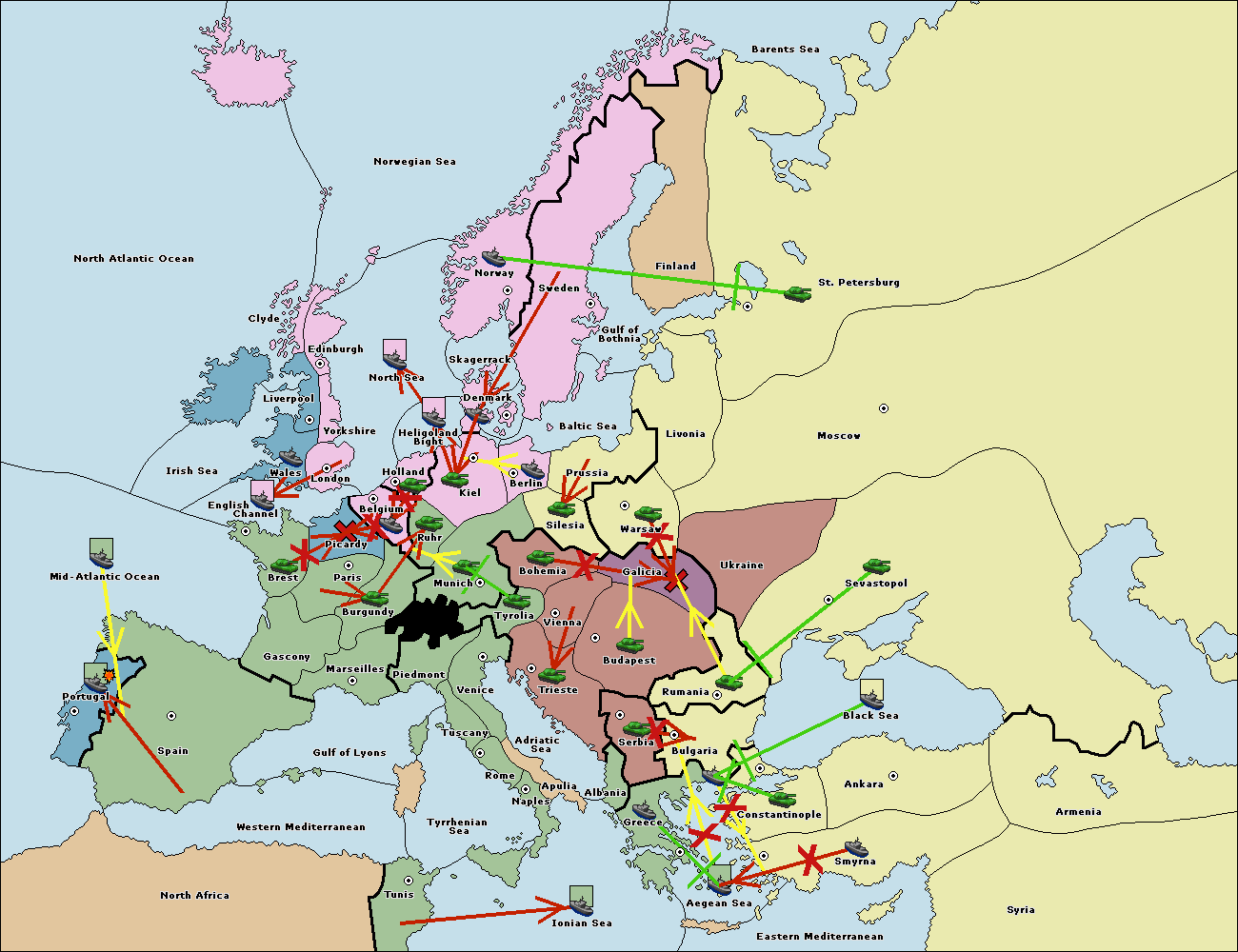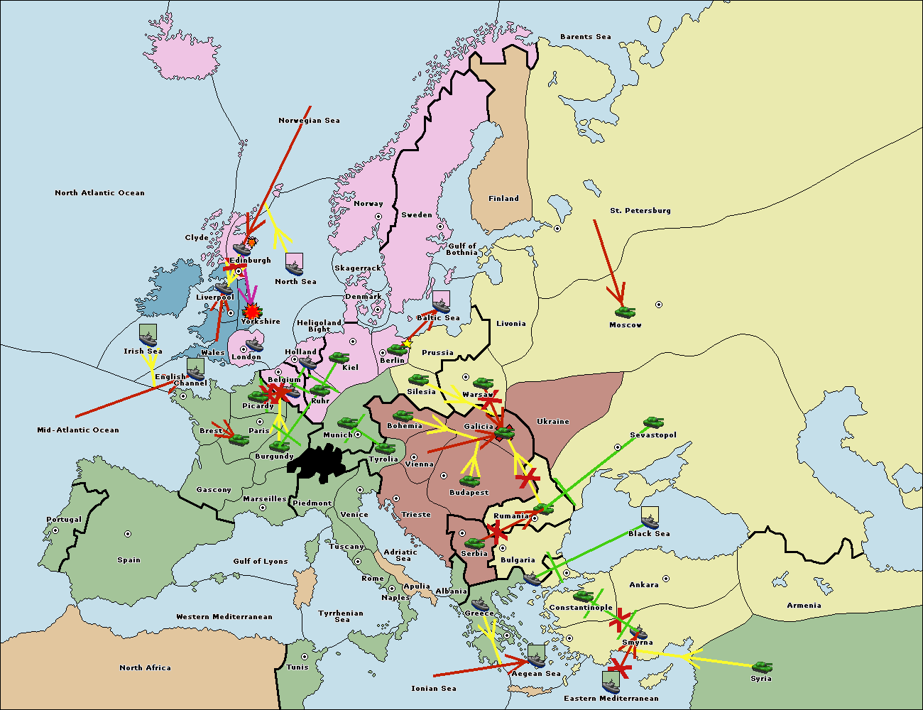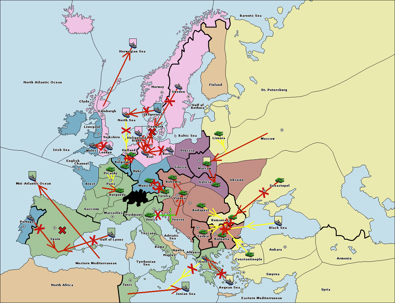 The fleet at Bulgaria (South Coast) support move to Aegean Sea from Smyrna.