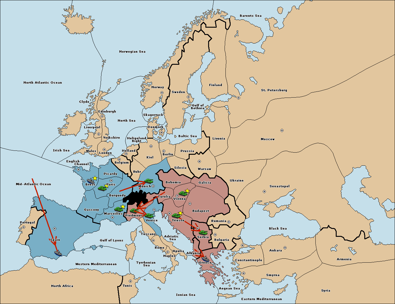 The fleet at Spain (South Coast) move to Western Mediterranean.