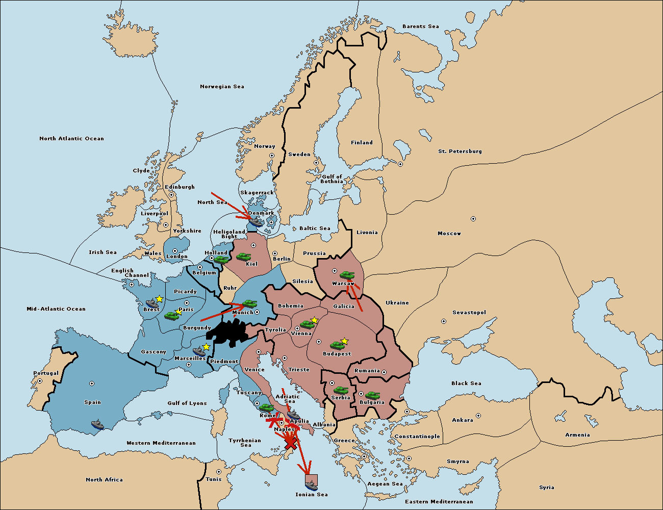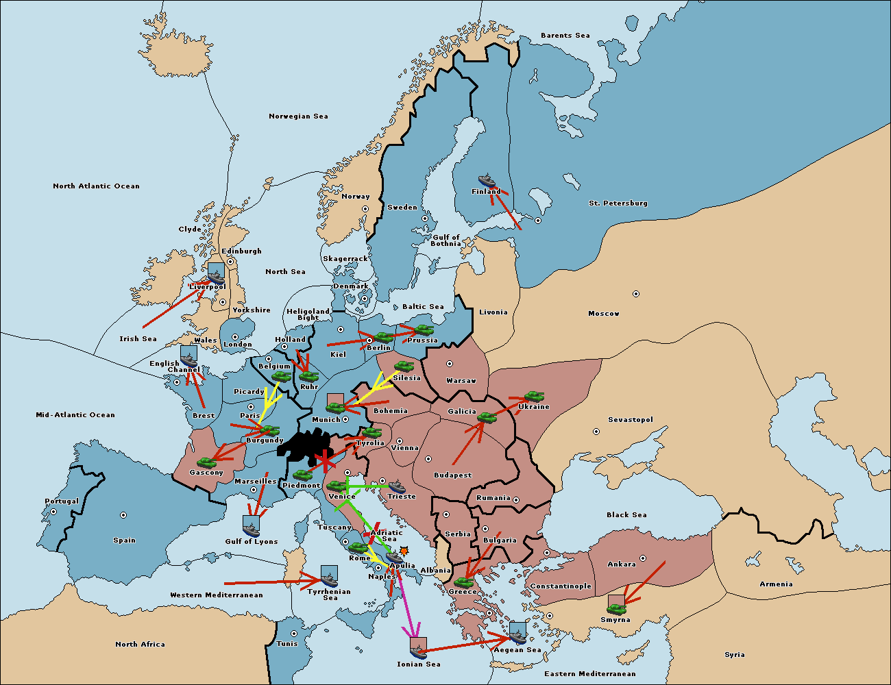 The fleet at Spain (South Coast) move to Western Mediterranean.