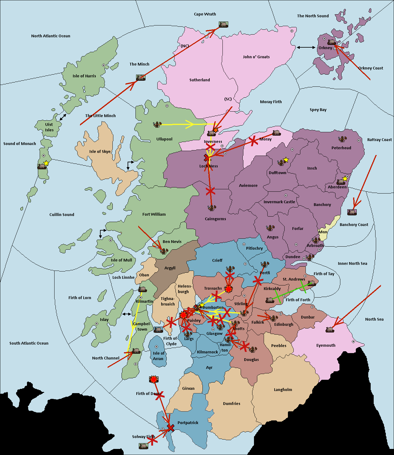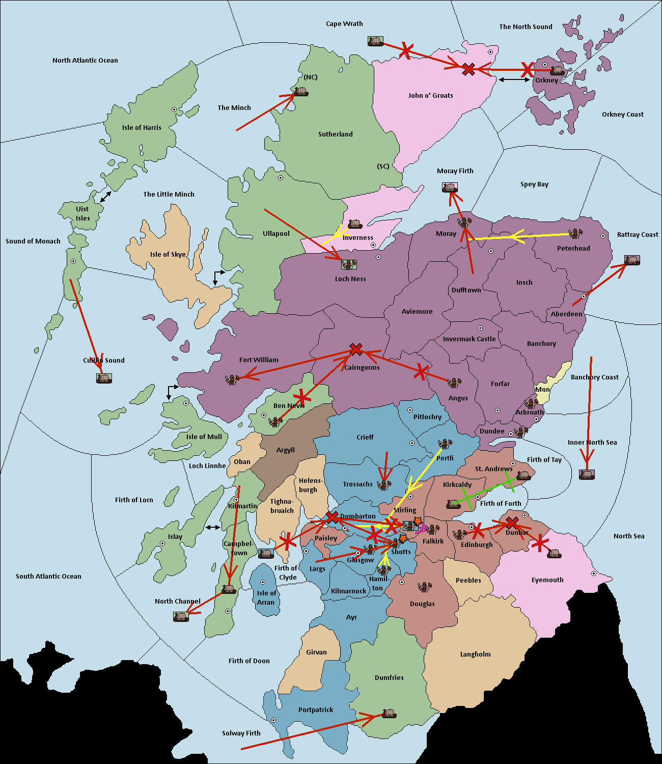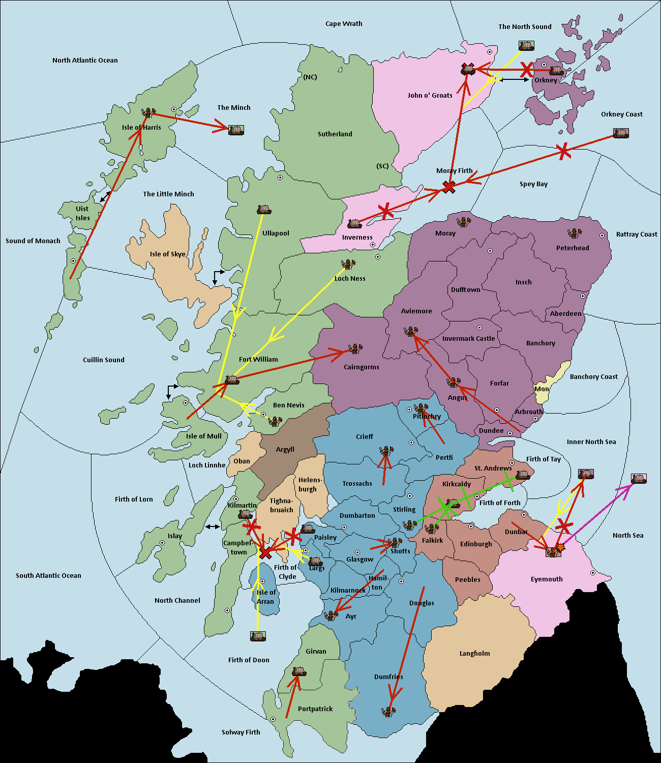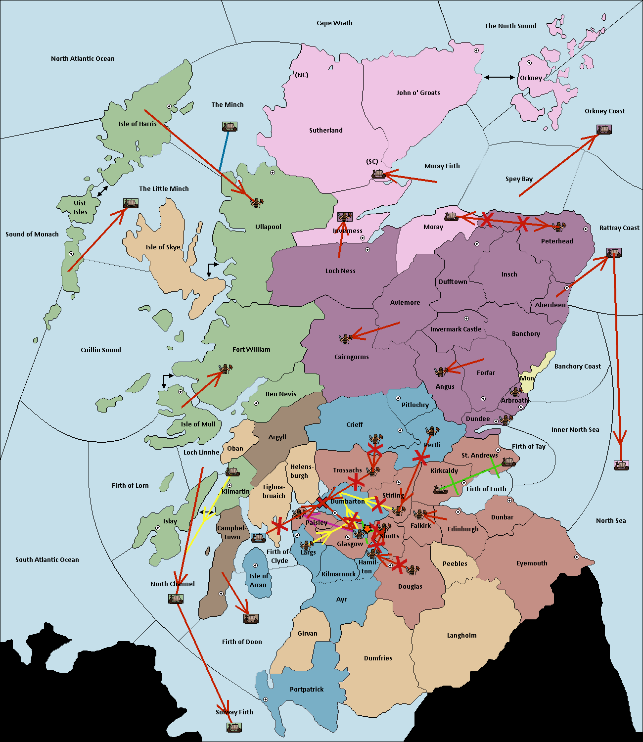 The fleet at Firth of Clyde move to Kilmartin (South Coast).