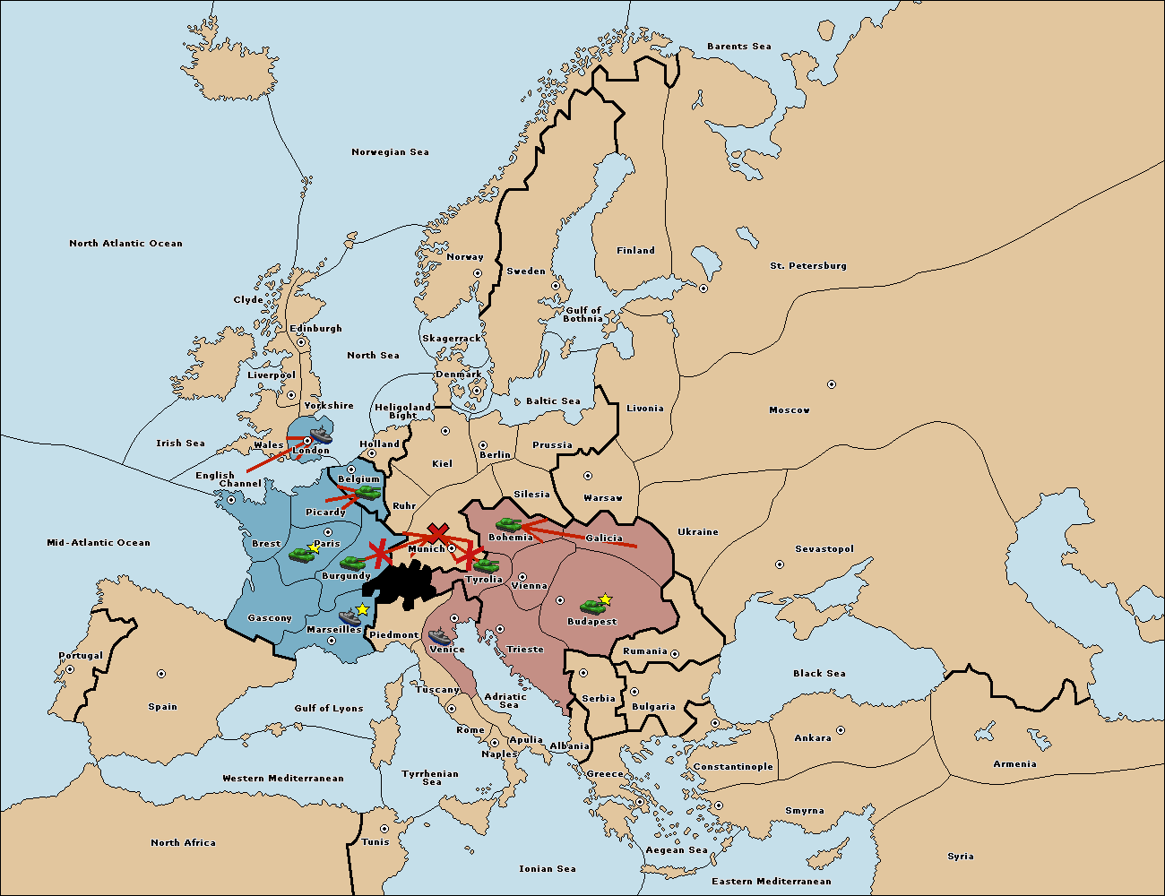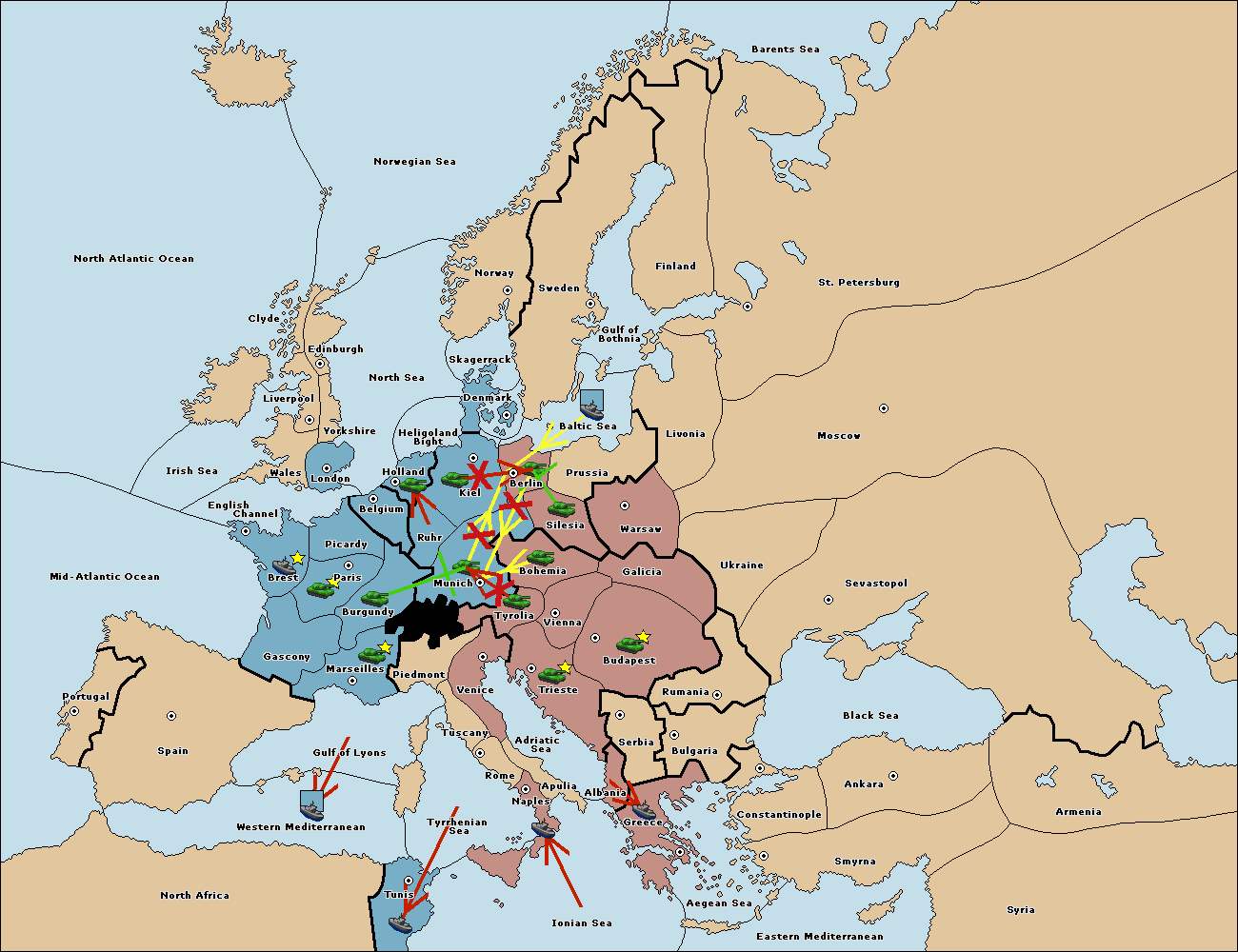 The fleet at Gulf of Lyons support hold to Tyrrhenian Sea.