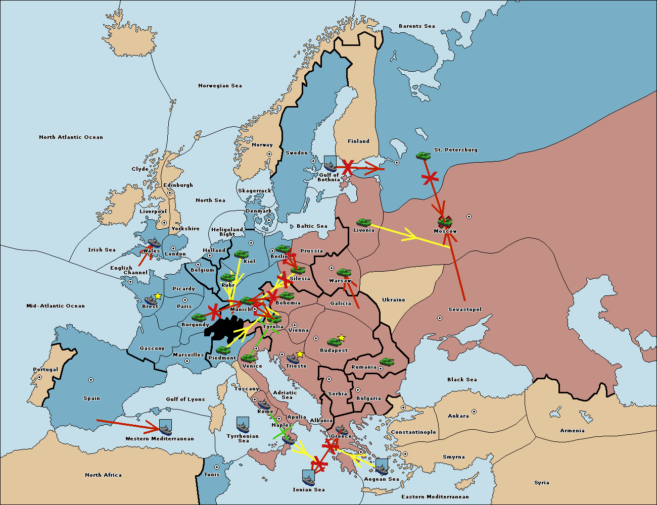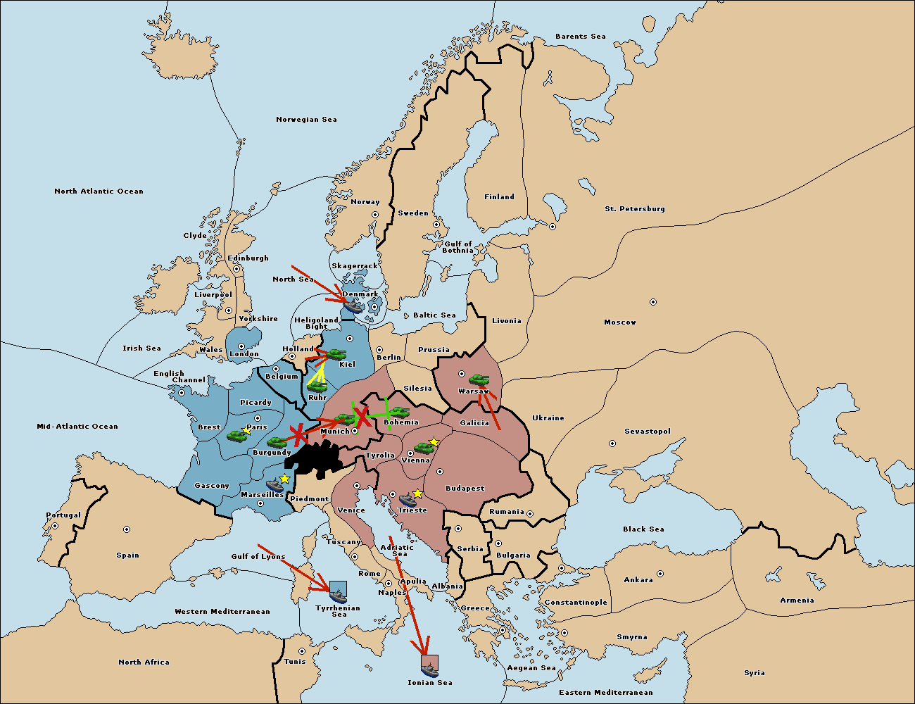 The fleet at Ionian Sea support move to Naples from Tyrrhenian Sea.